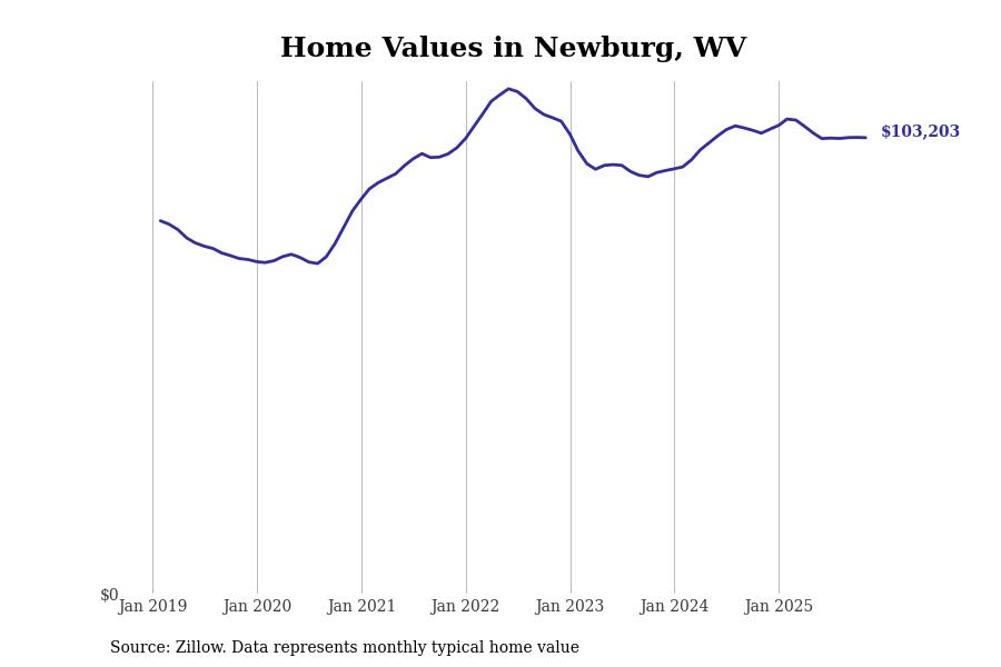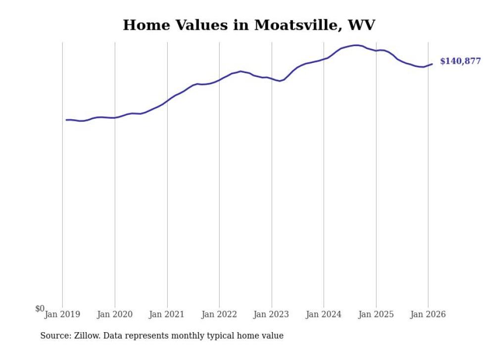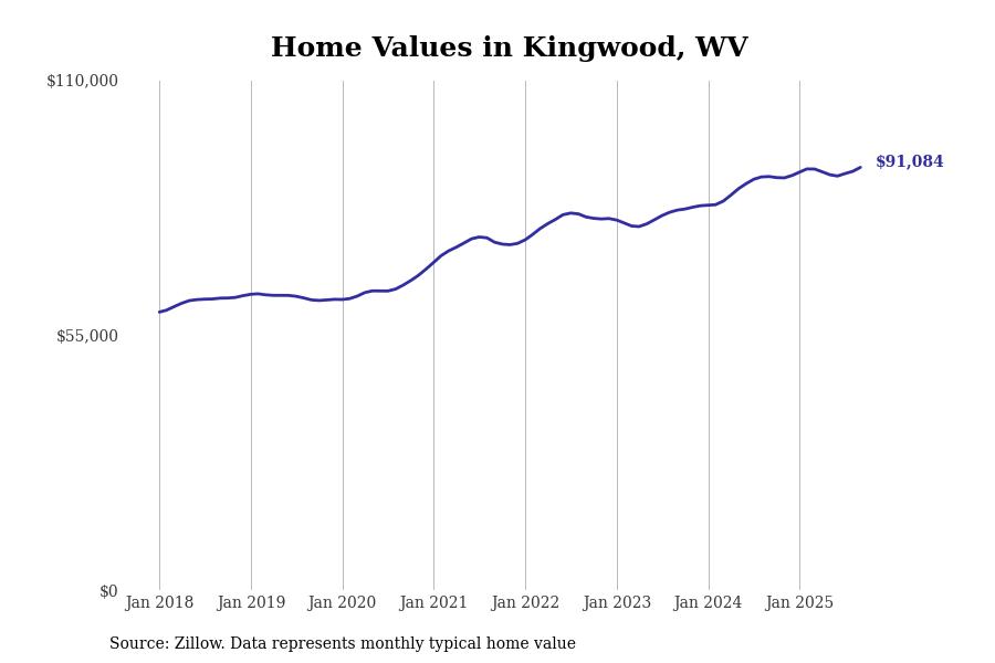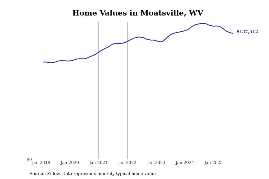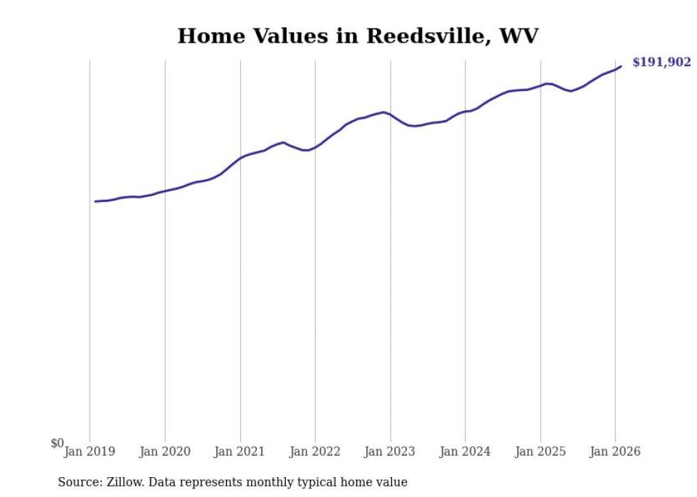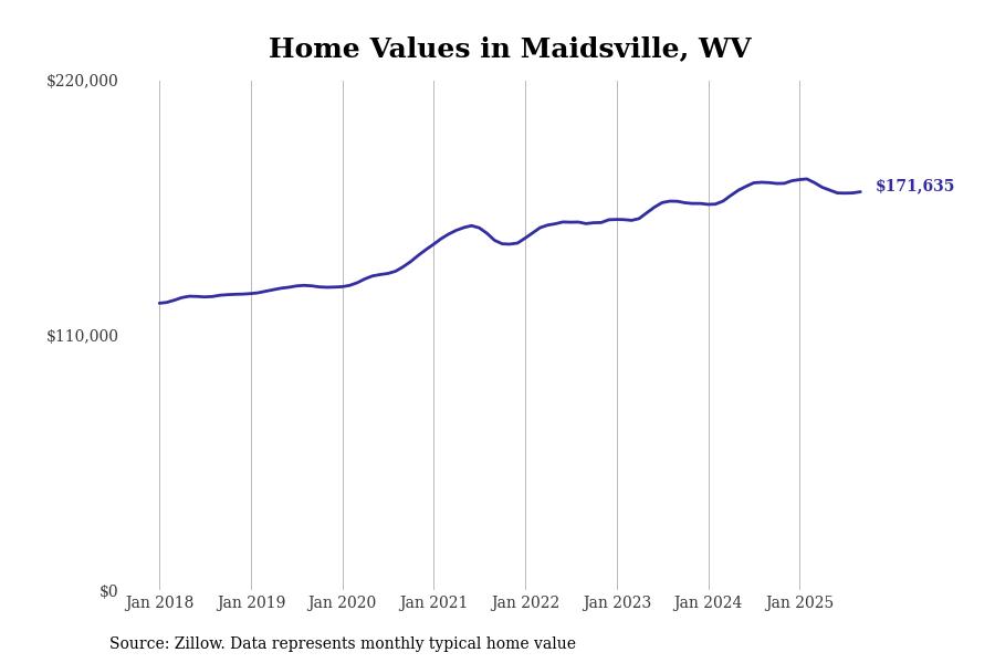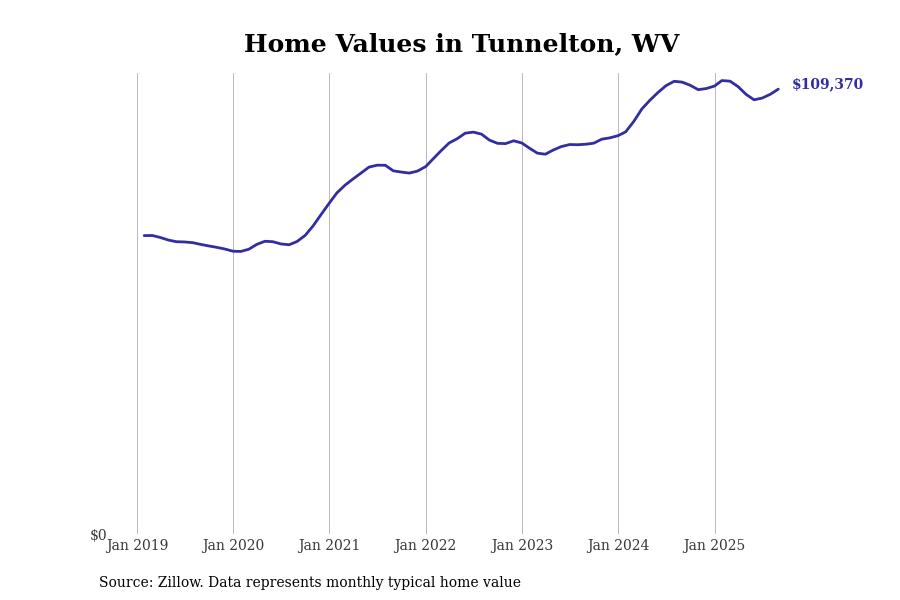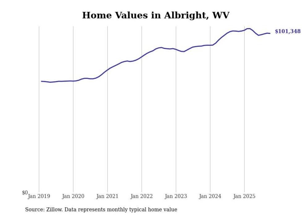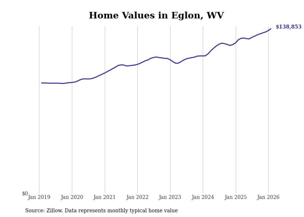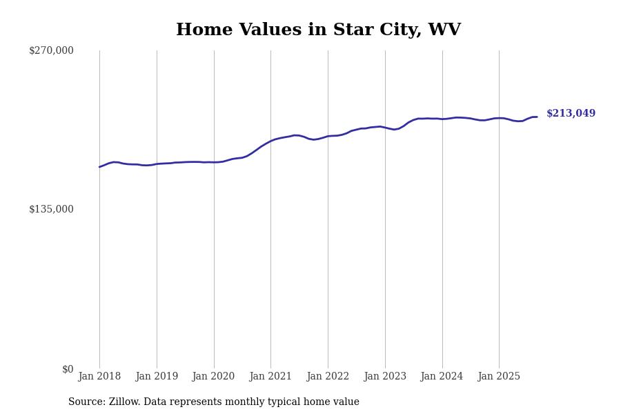 Stacker compiled a list of cities with the most expensive homes in the Morgantown metro area using data from Zillow. Charts show the monthly typical home value since January 2018. All 20 cities and towns with data available were included in the list.