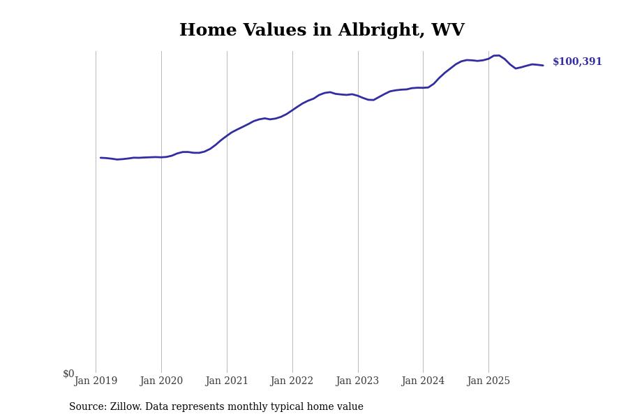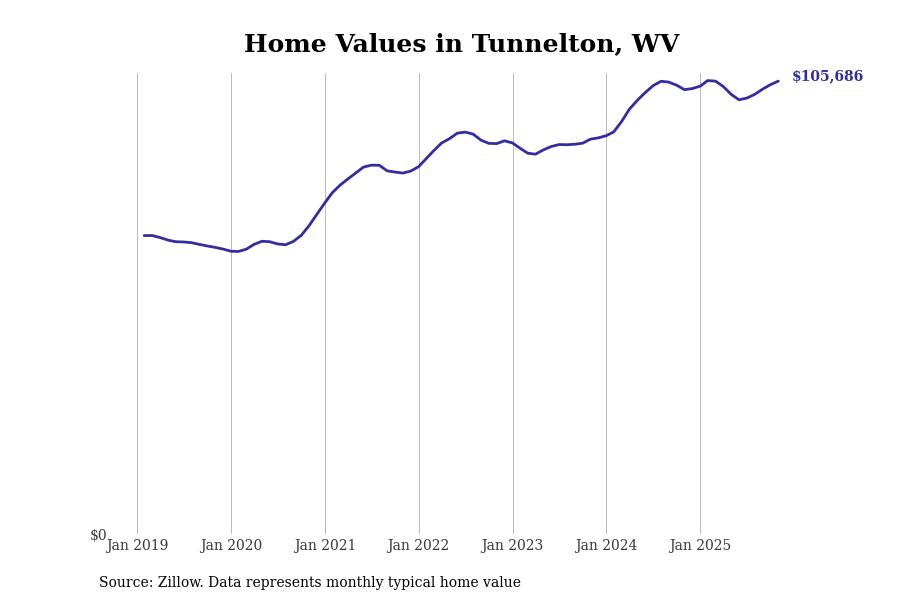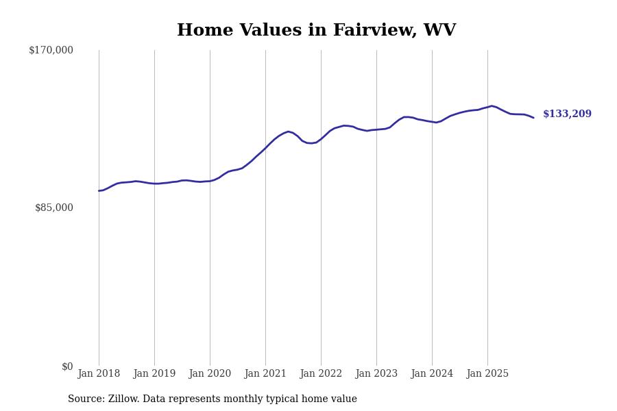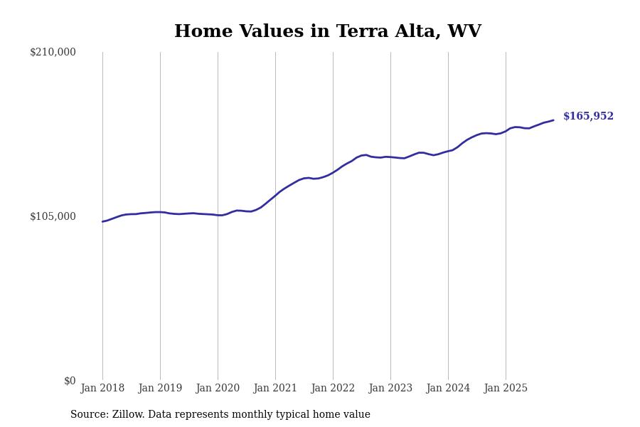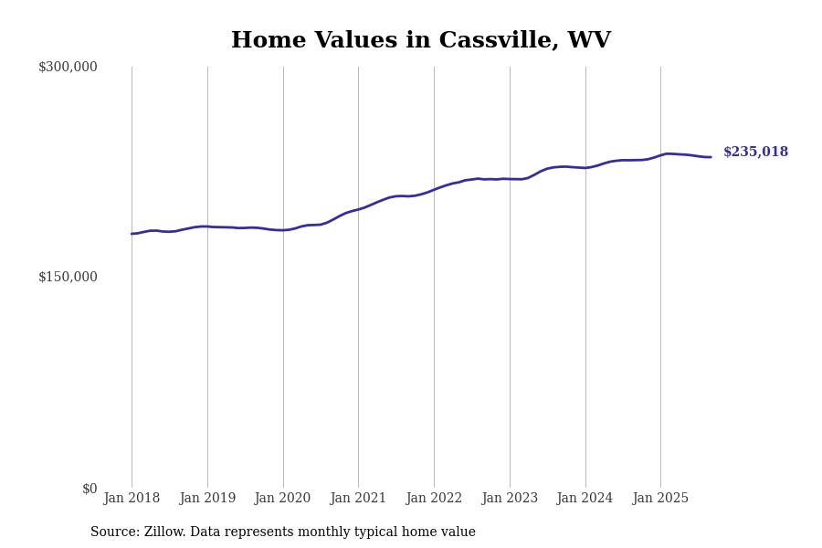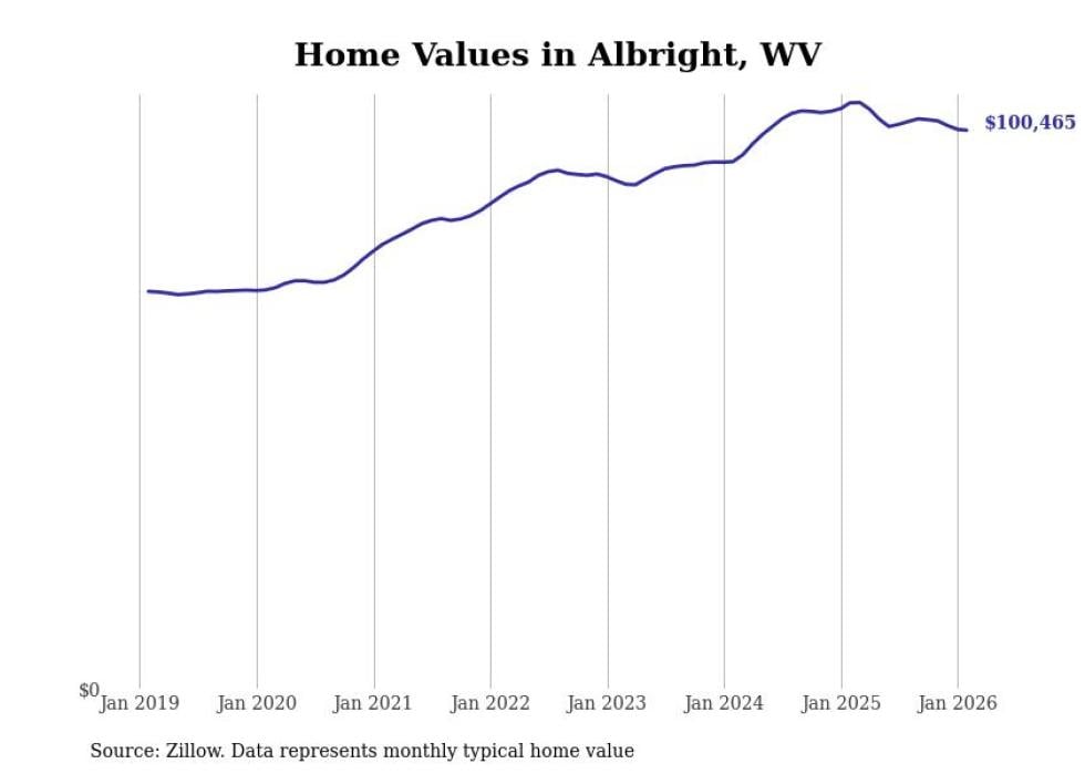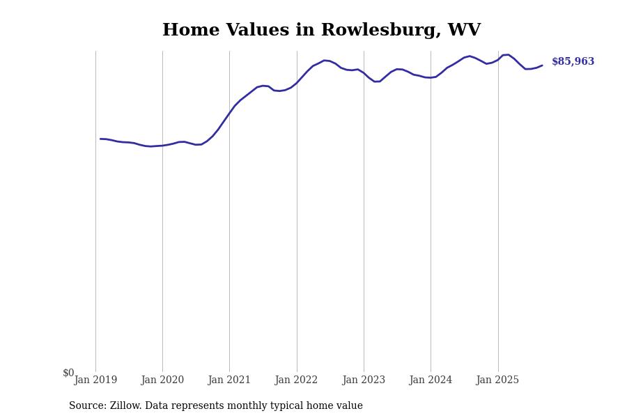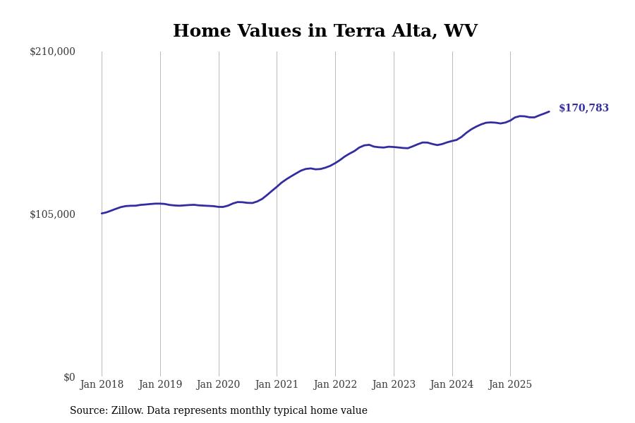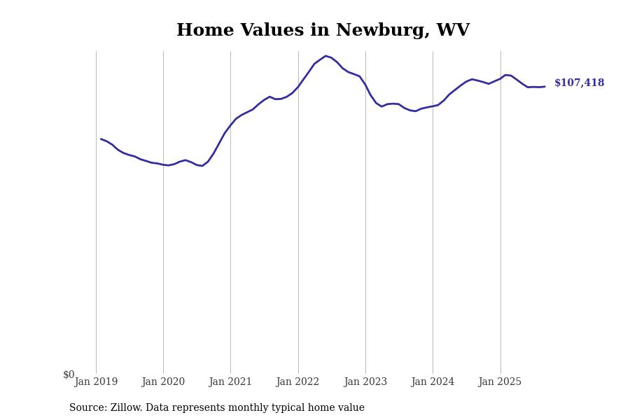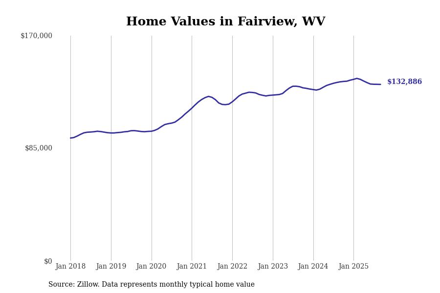 Stacker compiled a list of cities with the most expensive homes in the Morgantown metro area using data from Zillow. Charts show the monthly typical home value since January 2018. All 20 cities and towns with data available were included in the list.