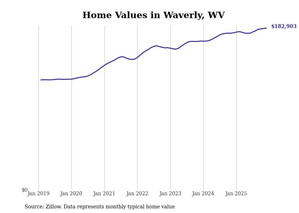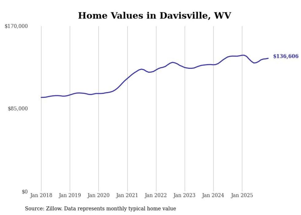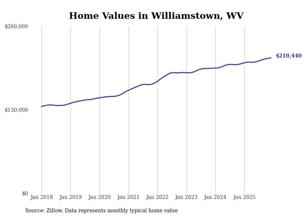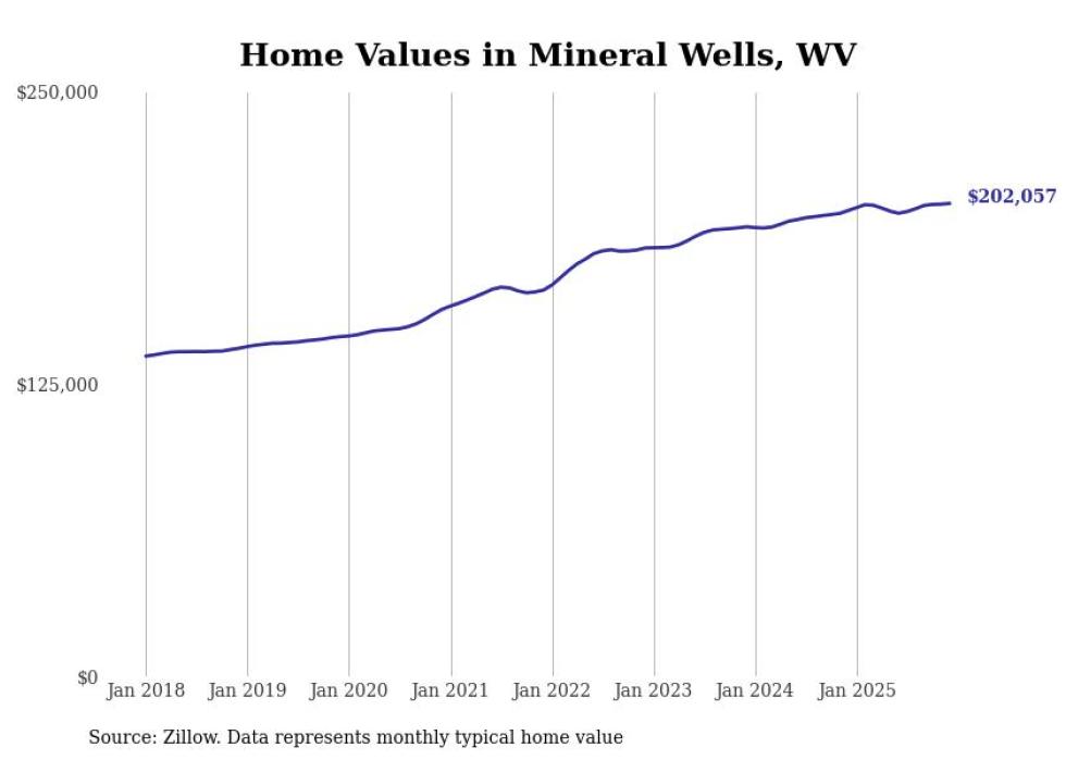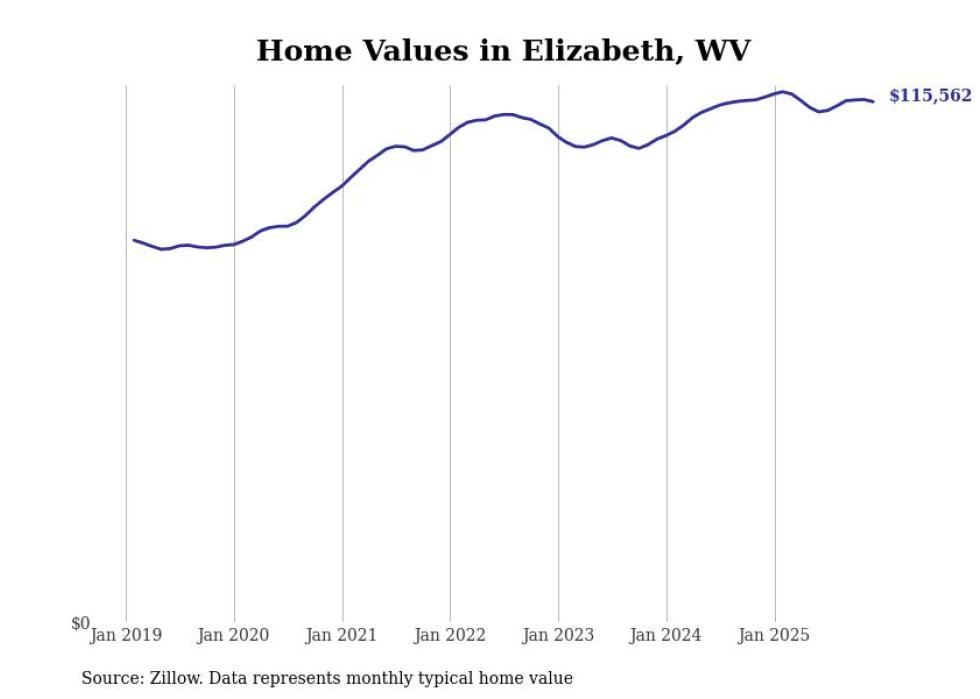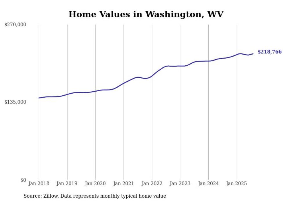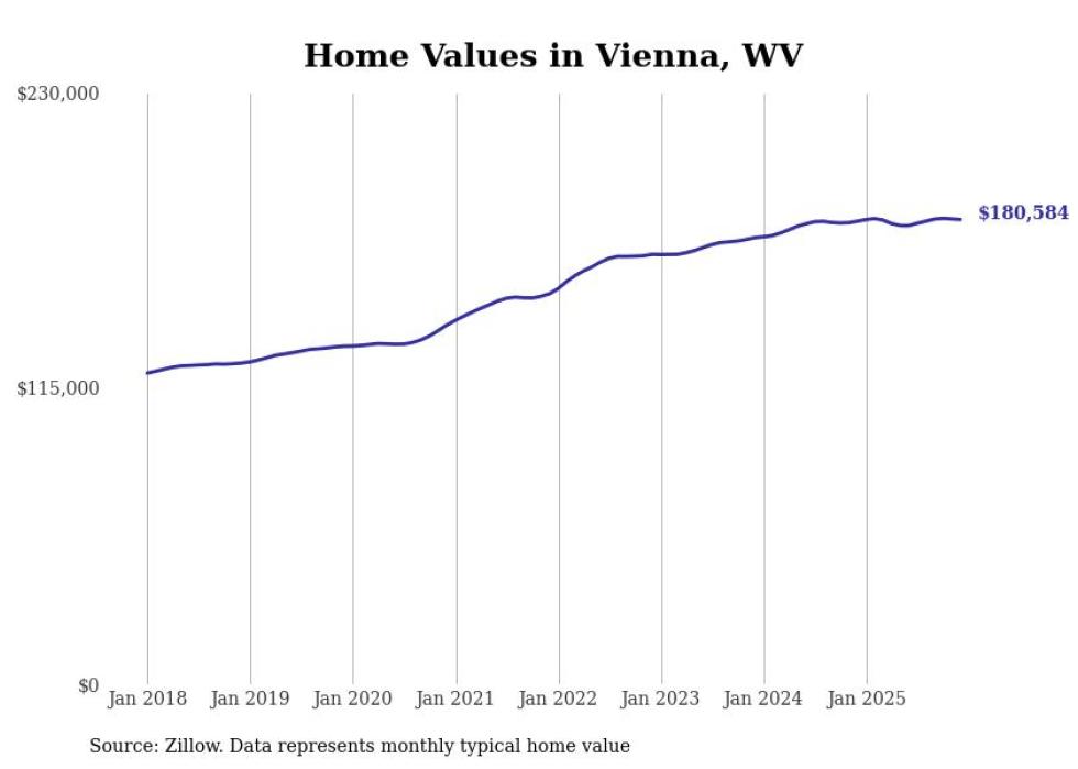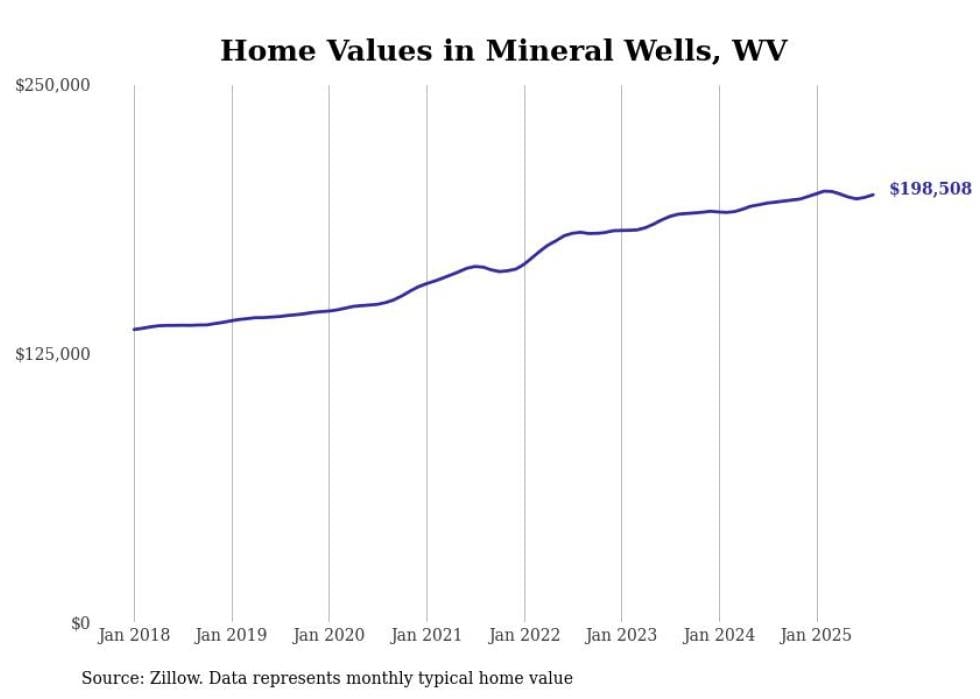 Stacker compiled a list of cities with the most expensive homes in the Parkersburg-Vienna, WV metro area using data from Zillow. Charts show the monthly typical home value since January 2018.