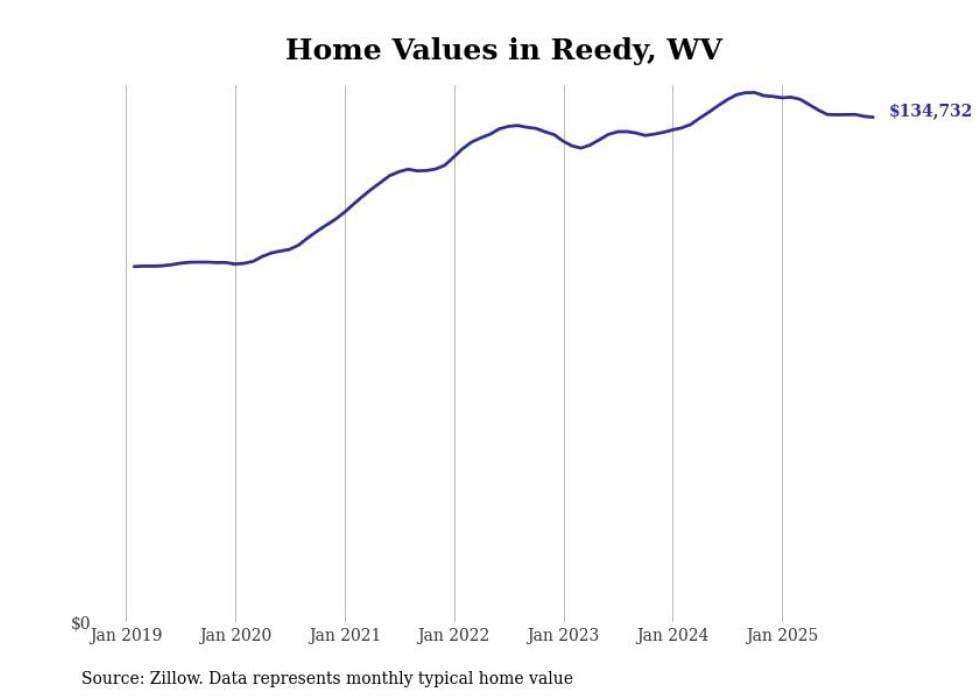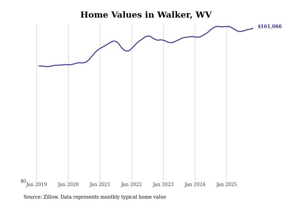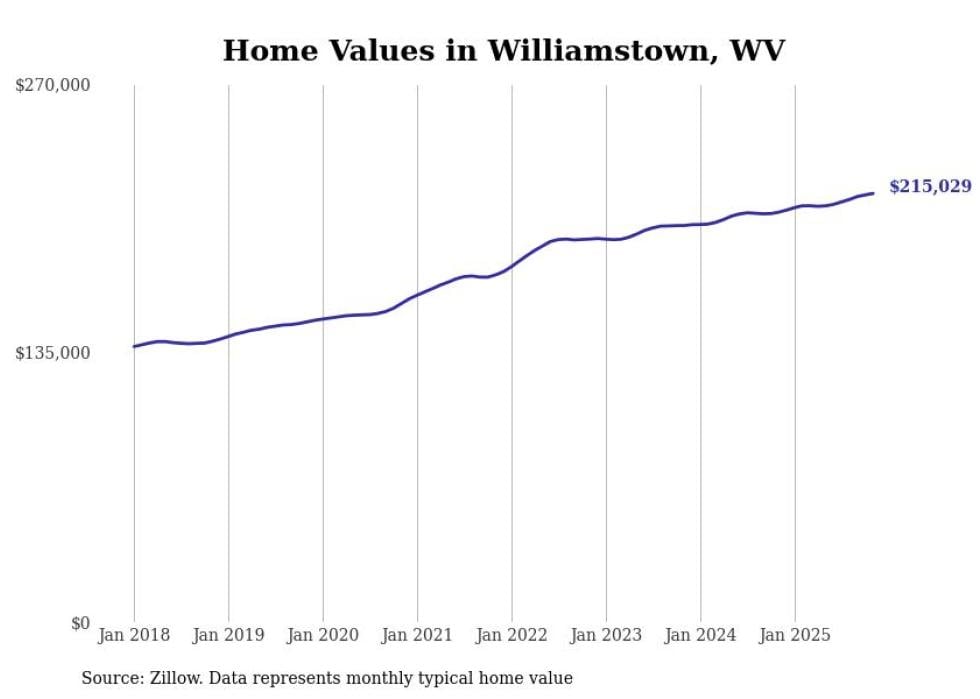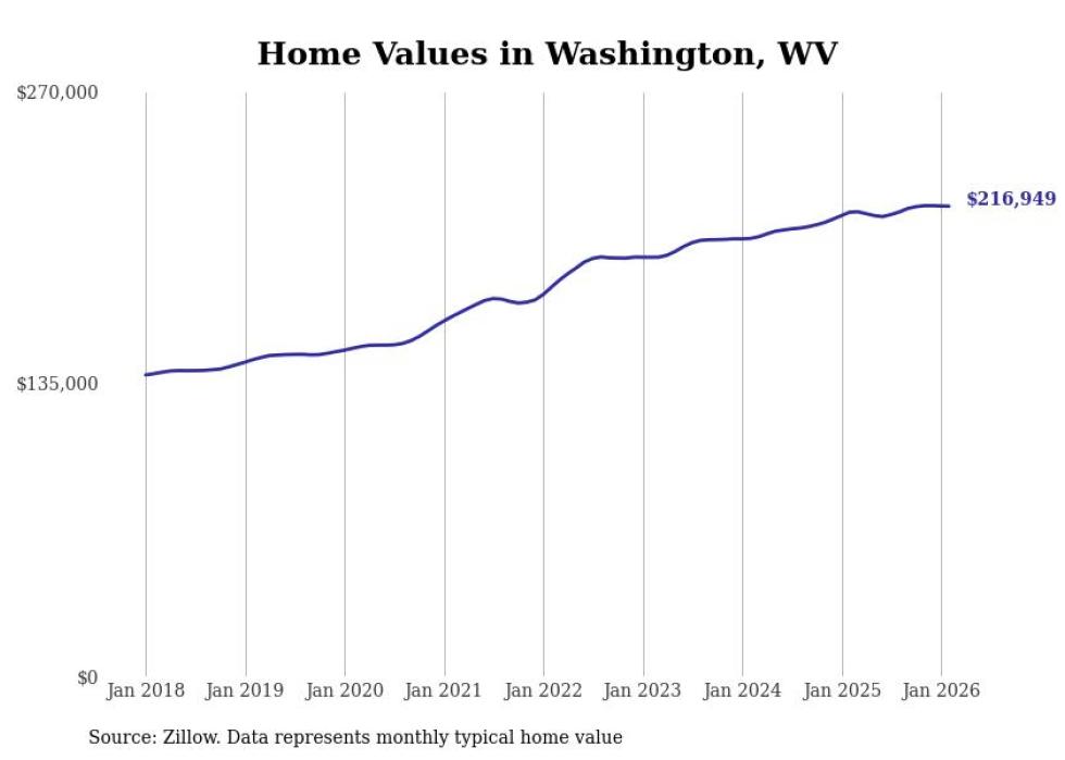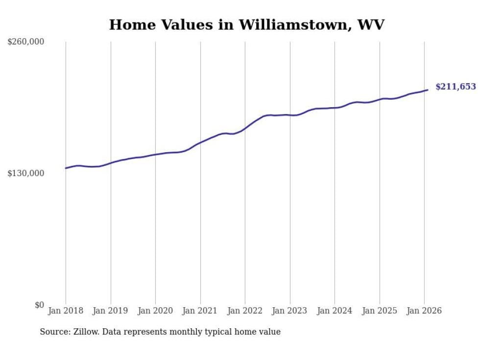 Stacker compiled a list of cities with the most expensive homes in the Parkersburg metro area using data from Zillow. Charts show the monthly typical home value since January 2018. All 12 cities and towns with data available were included in the list.