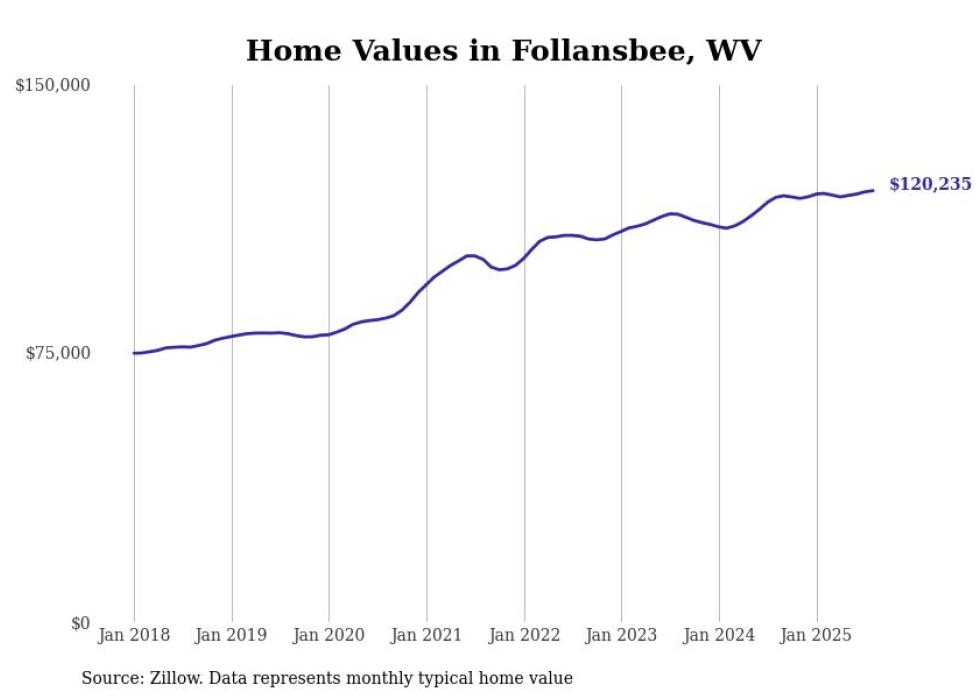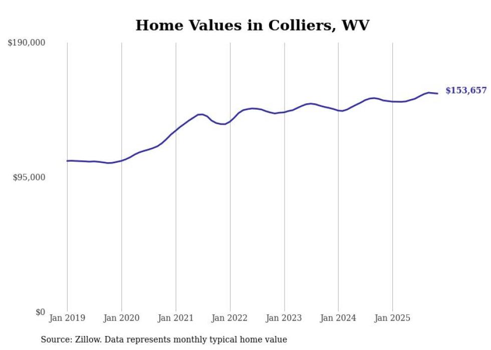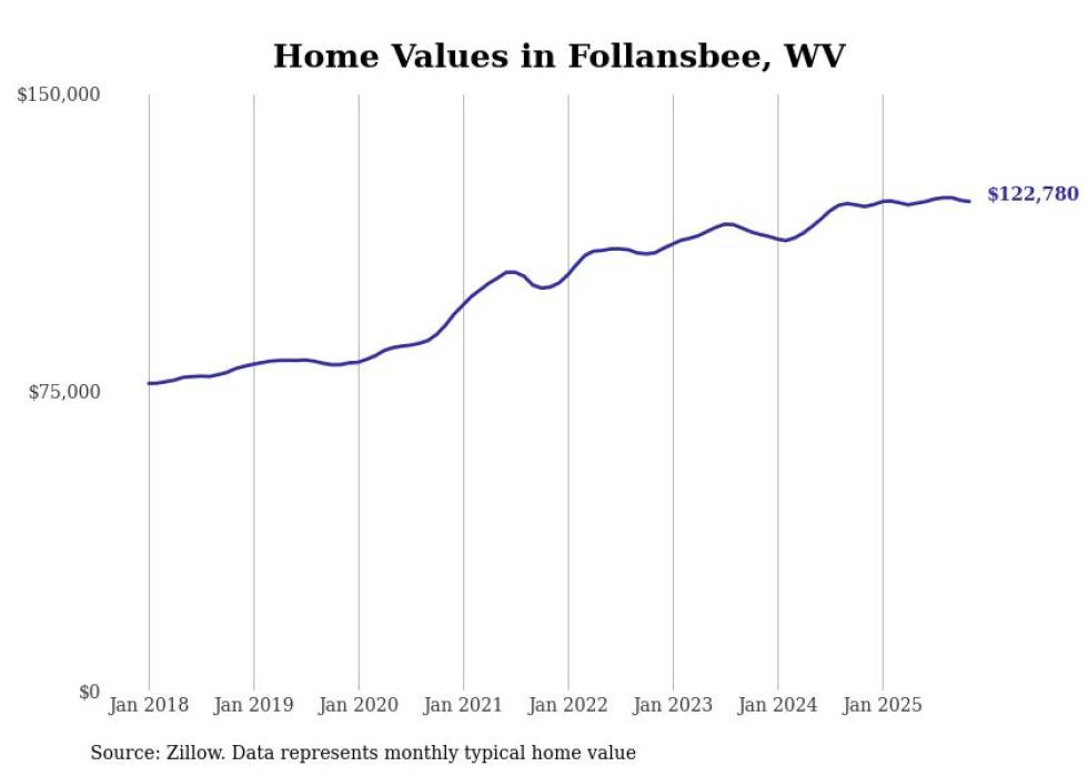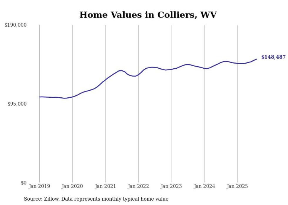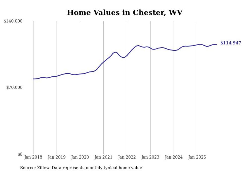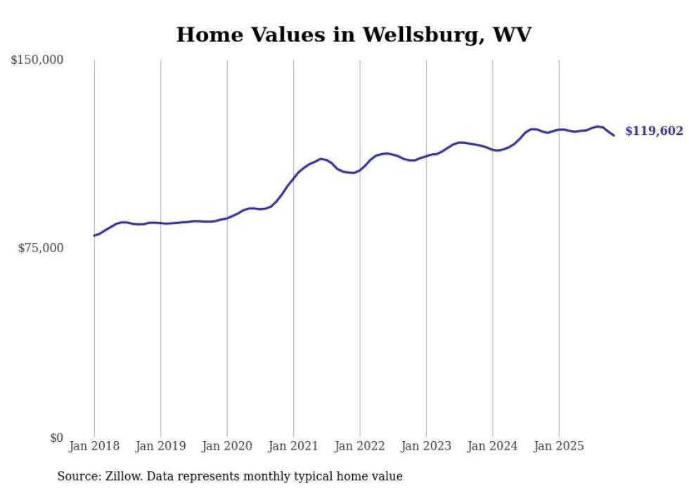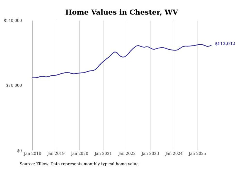 Stacker compiled a list of cities with the most expensive homes in the Weirton metro area using data from Zillow. Charts show the monthly typical home value since January 2018. All 24 cities and towns with data available were included in the list.