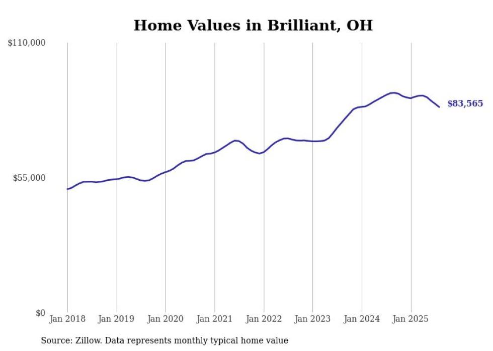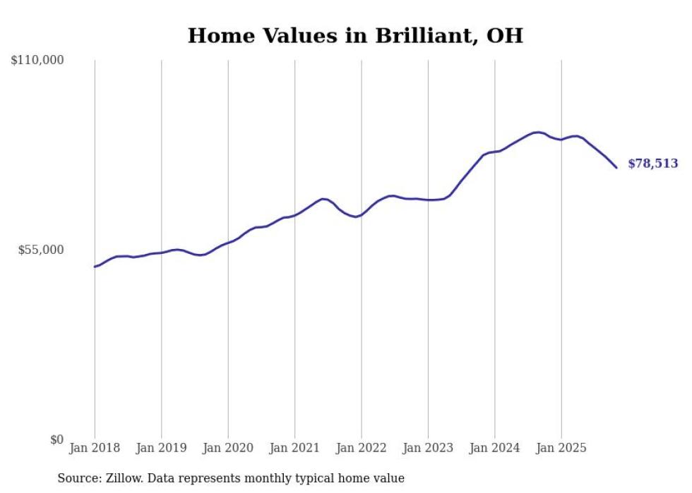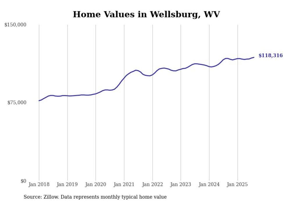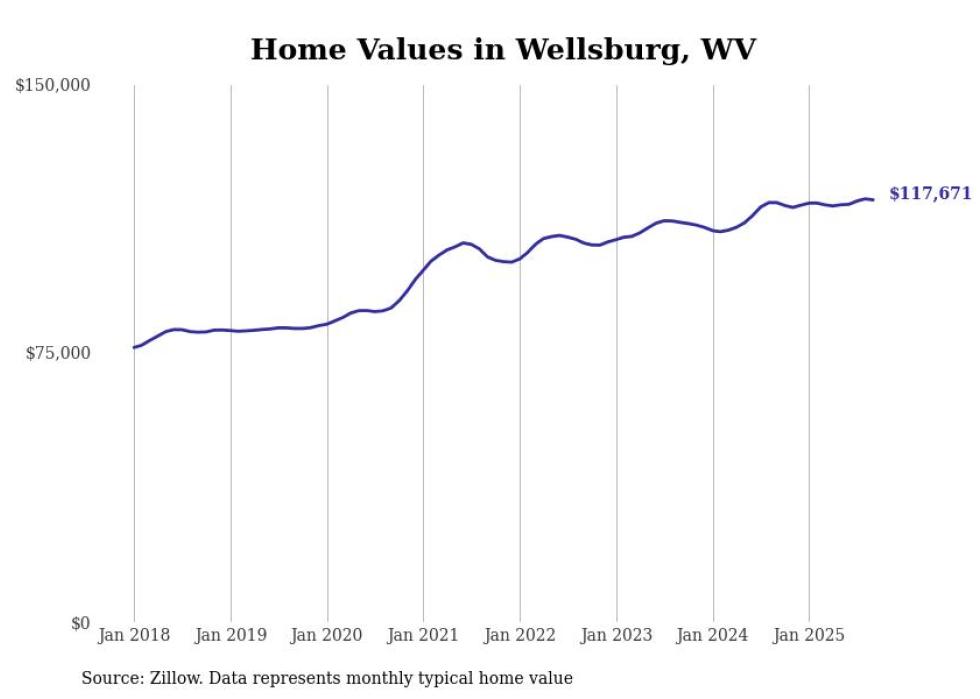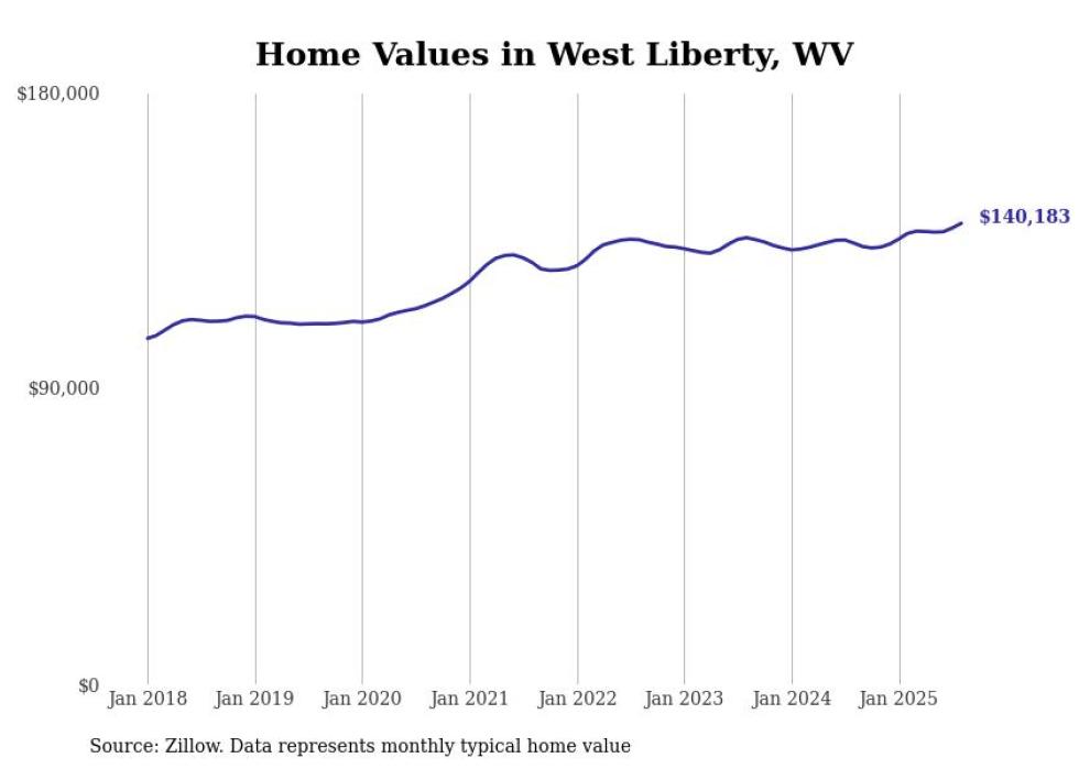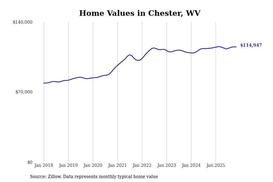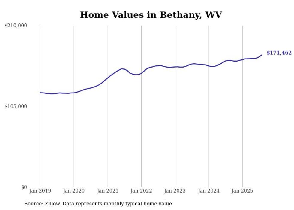 Stacker compiled a list of cities with the most expensive homes in the Weirton metro area using data from Zillow. Charts show the monthly typical home value since January 2018. All 24 cities and towns with data available were included in the list.