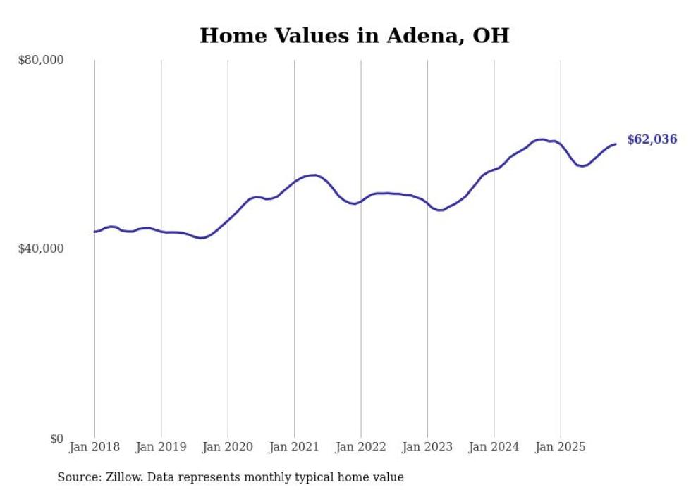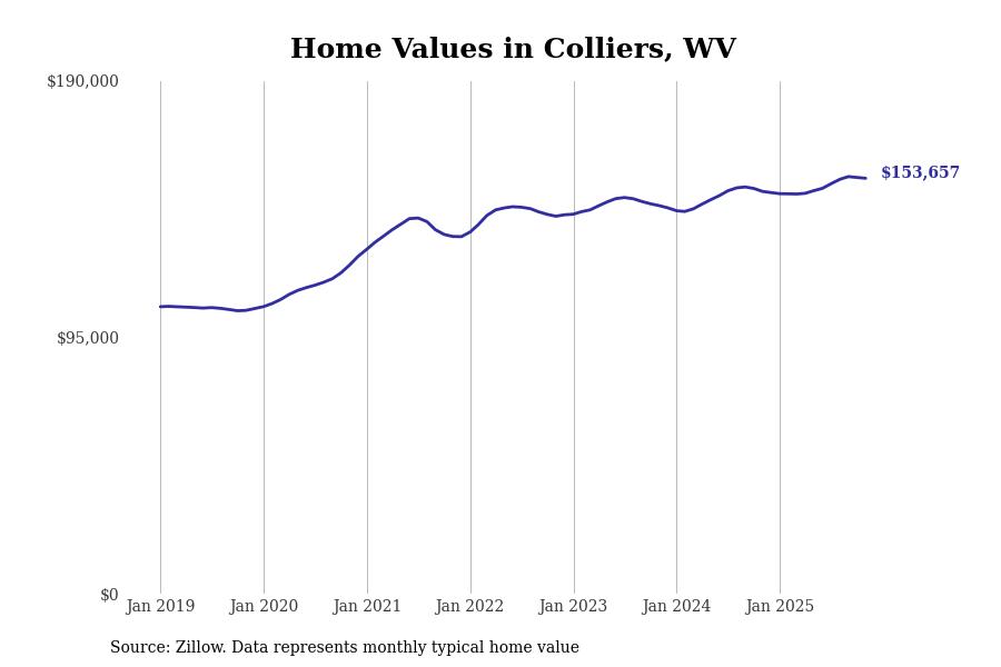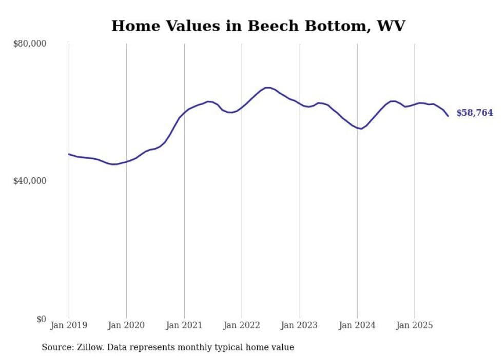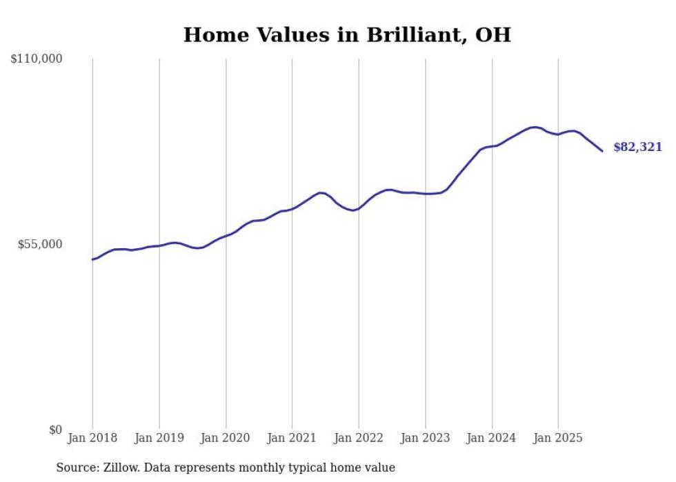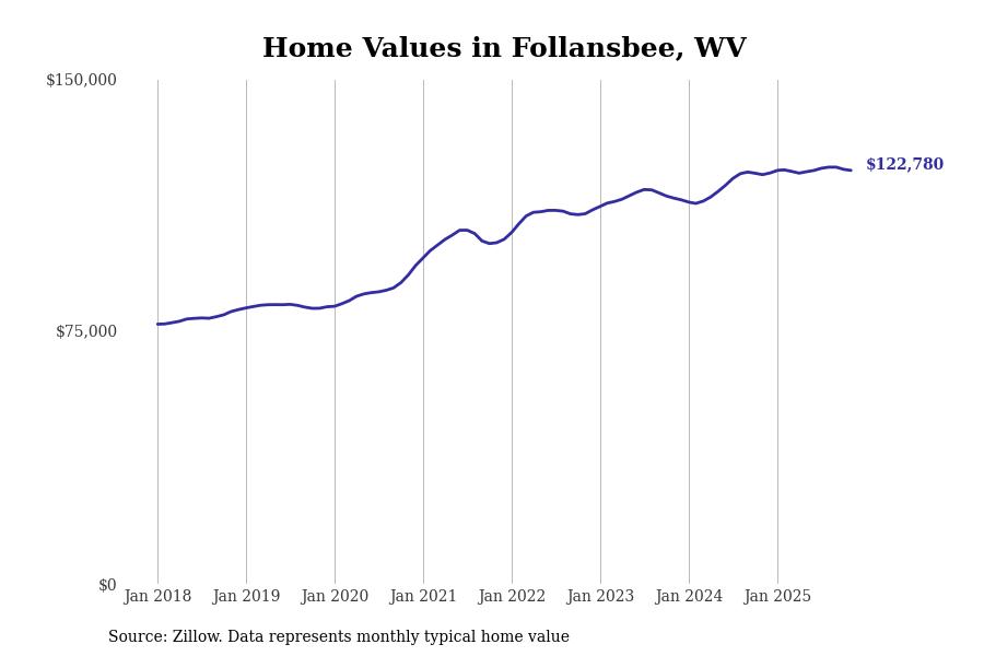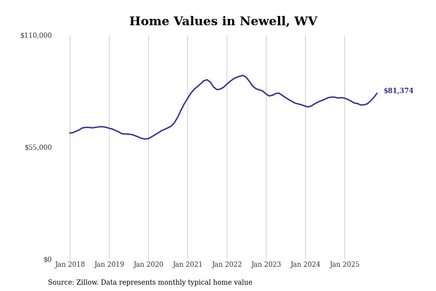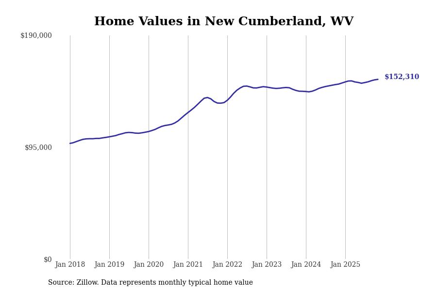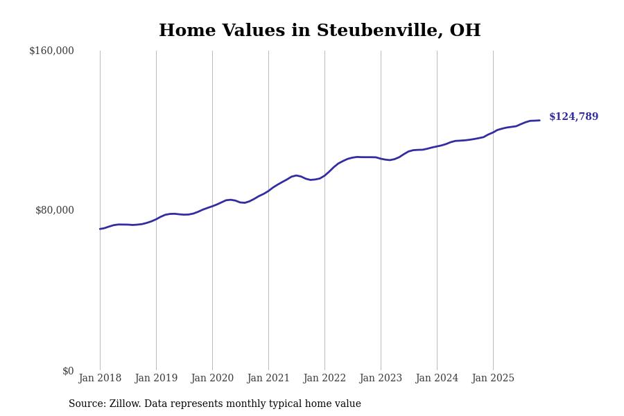 Stacker compiled a list of cities with the most expensive homes in the Weirton metro area using data from Zillow. Charts show the monthly typical home value since January 2018. All 24 cities and towns with data available were included in the list.