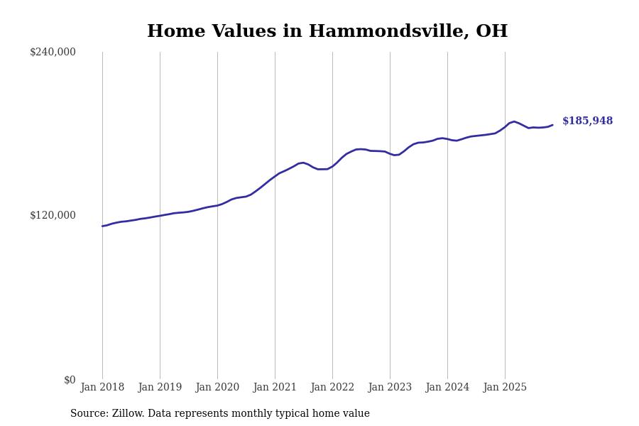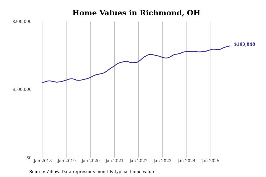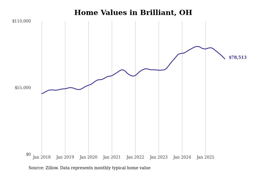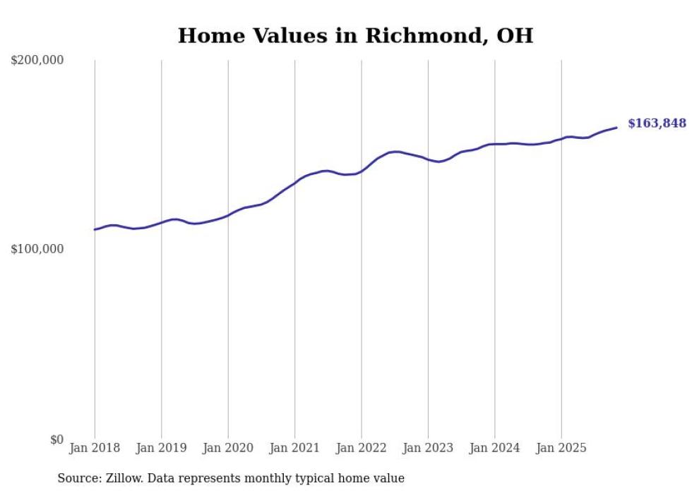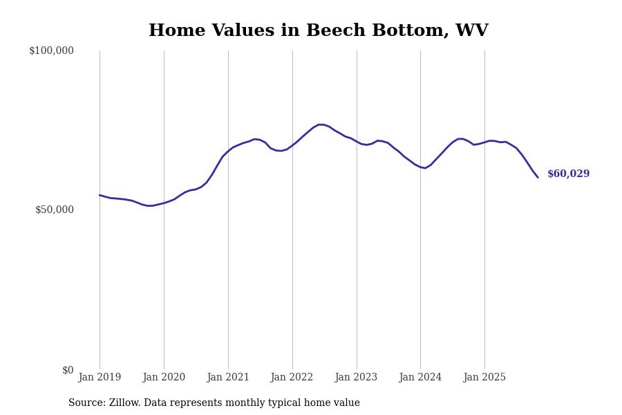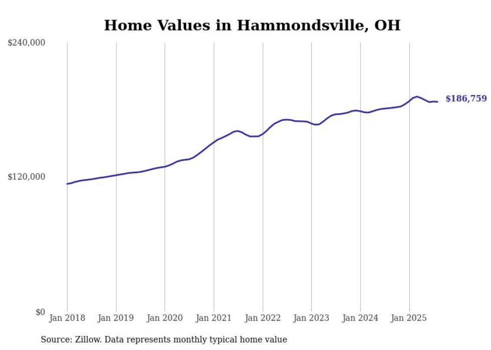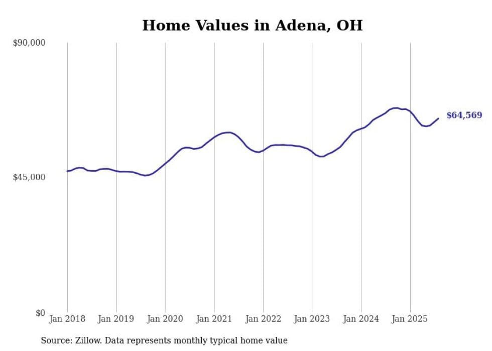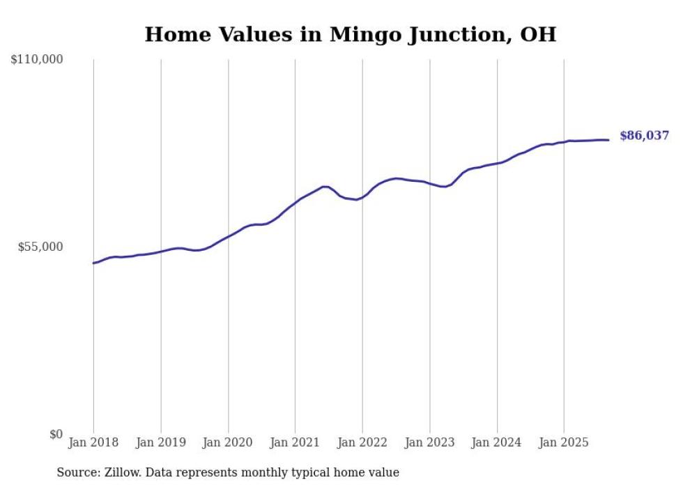 Stacker compiled a list of cities with the most expensive homes in the Weirton metro area using data from Zillow. Charts show the monthly typical home value since January 2018. All 24 cities and towns with data available were included in the list.
