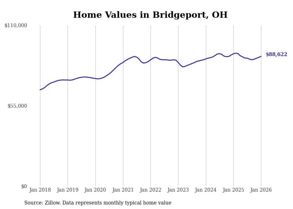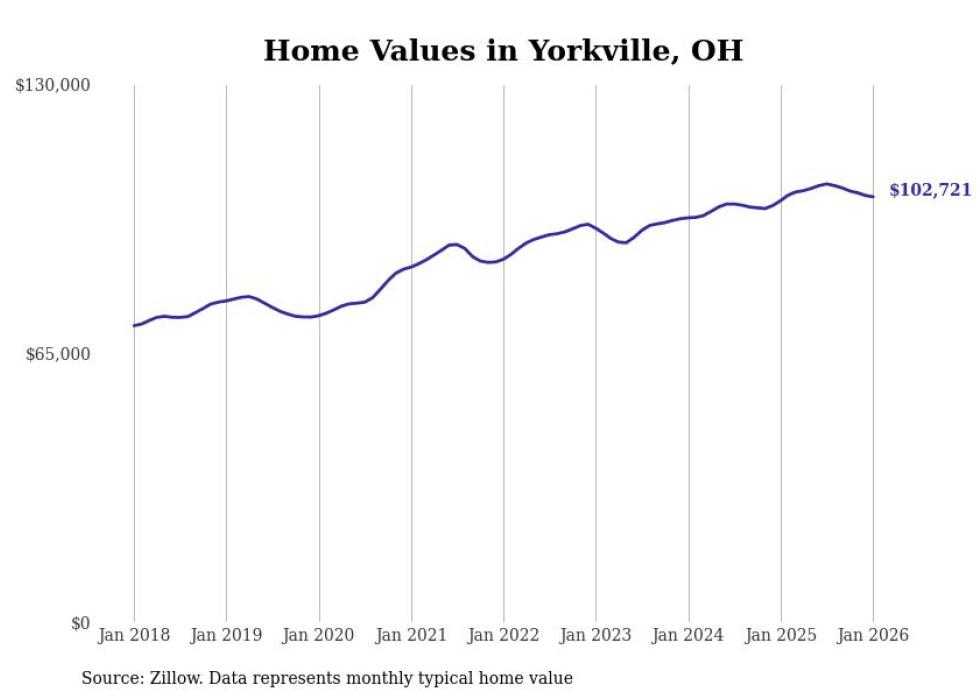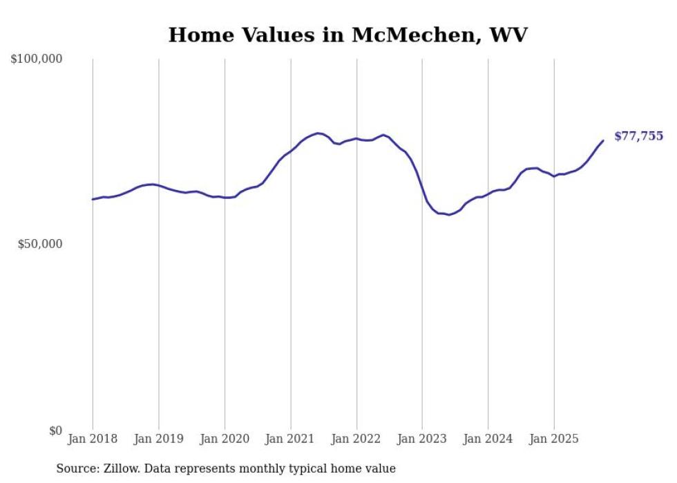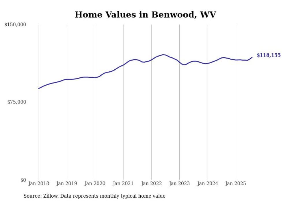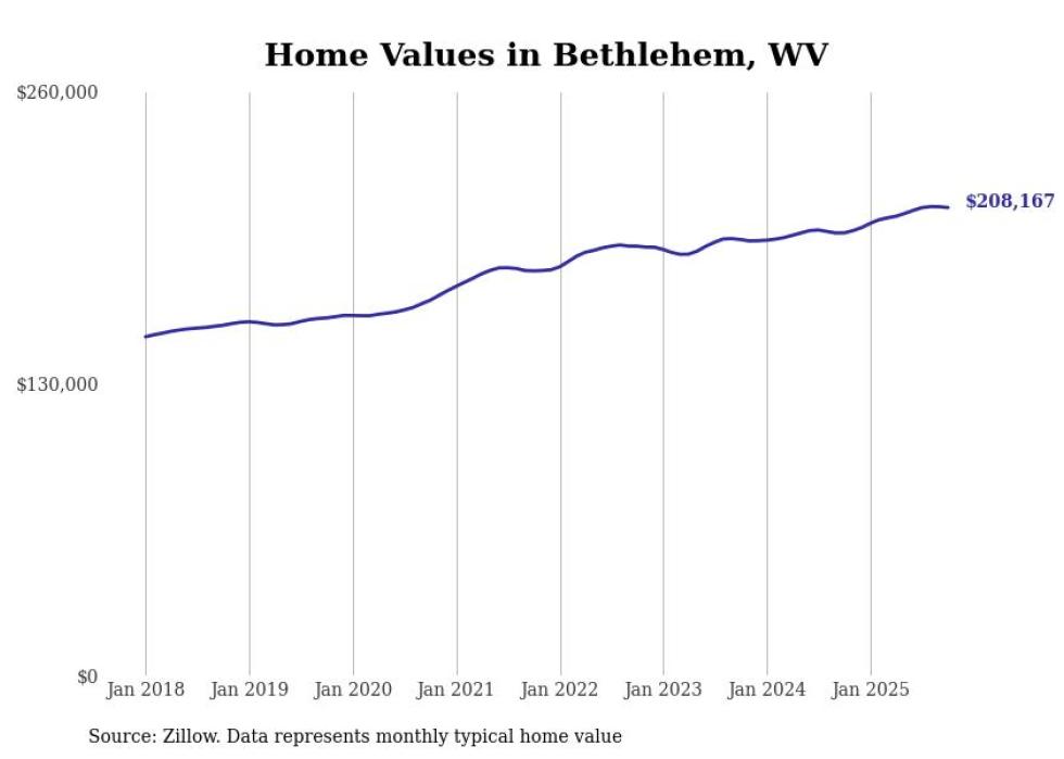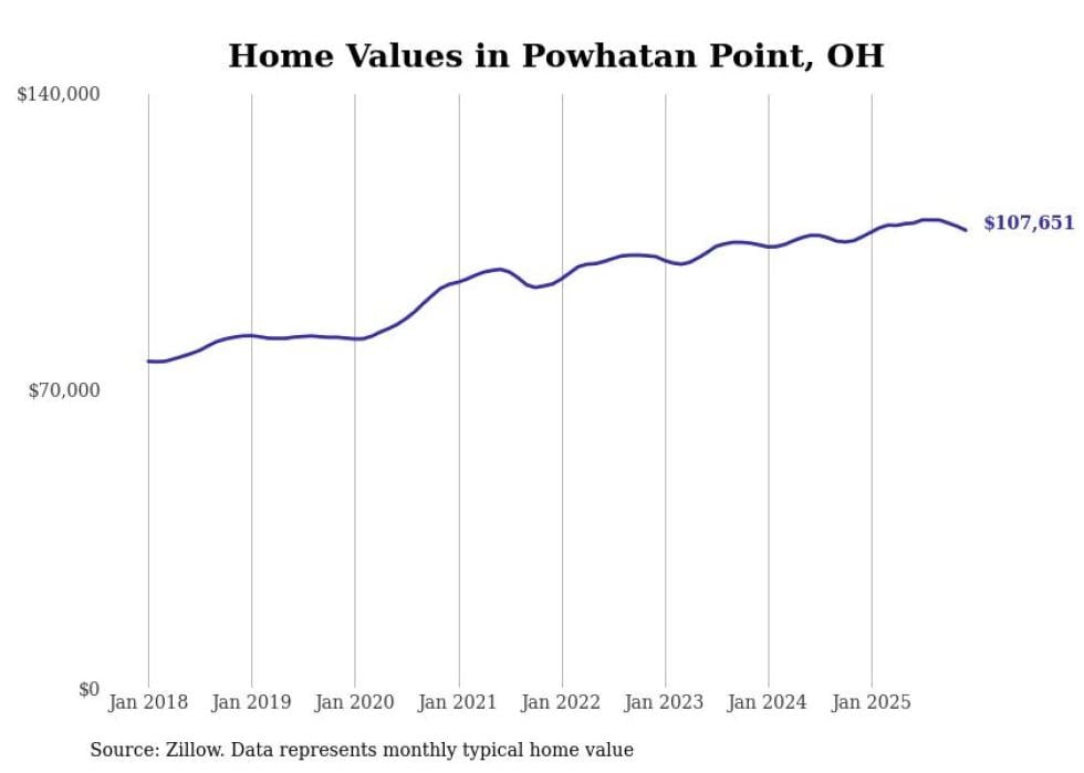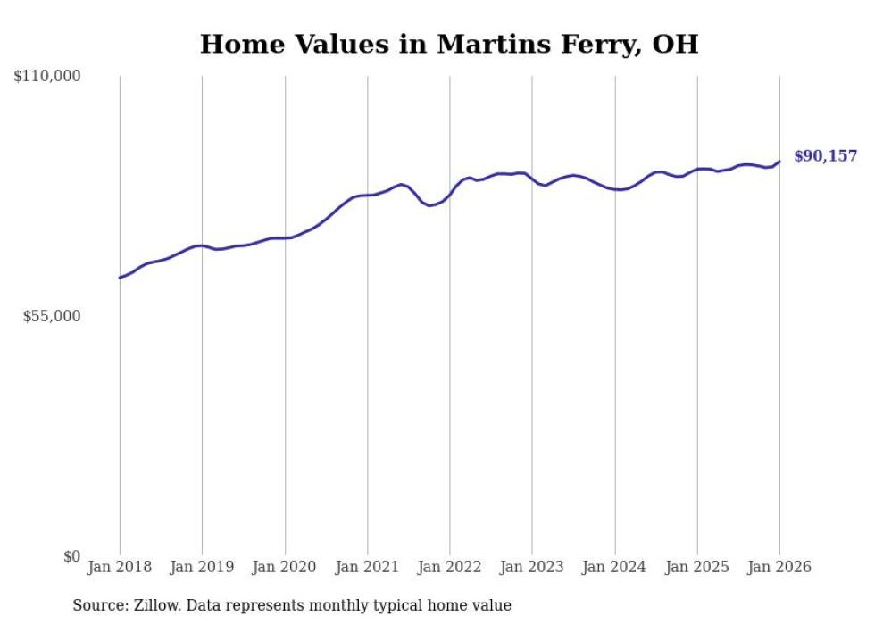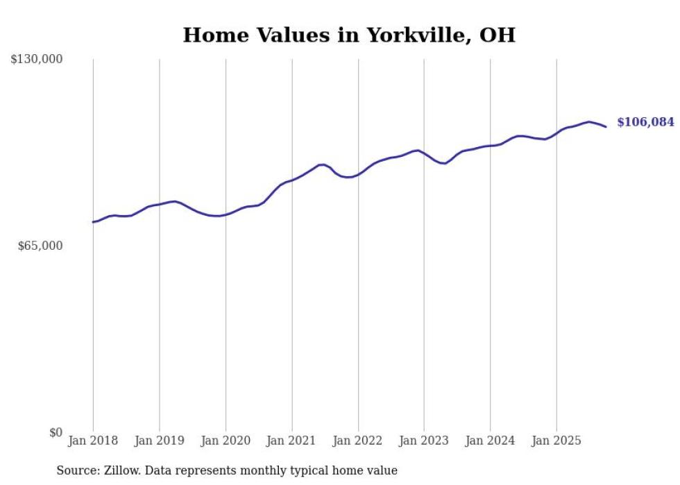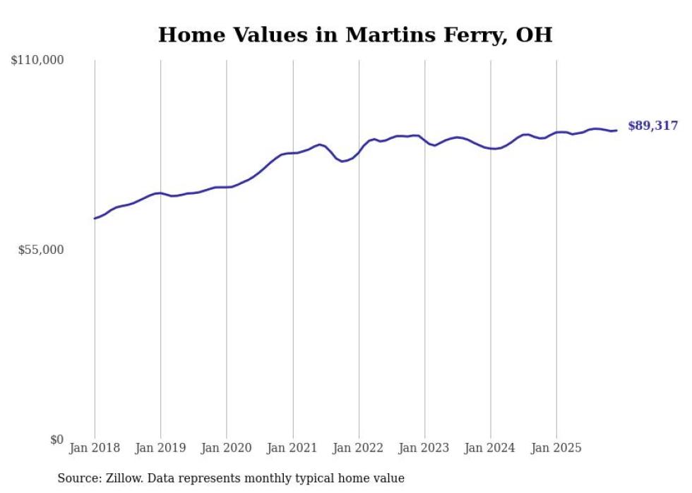 Stacker compiled a list of cities with the most expensive homes in the Wheeling, WV-OH metro area using data from Zillow. Charts show the monthly typical home value since January 2018.