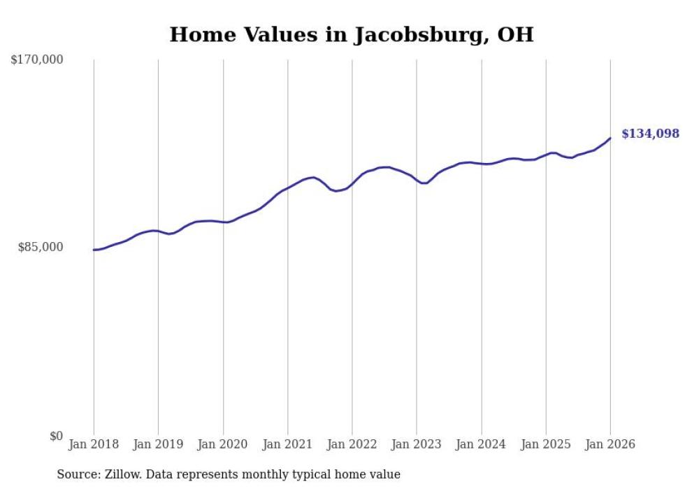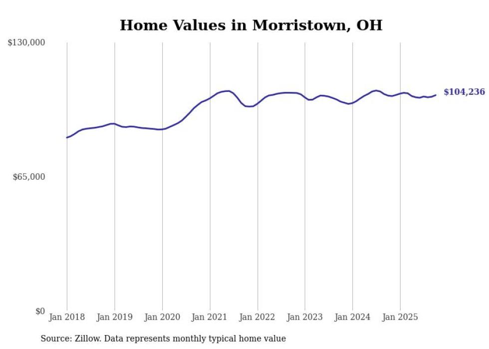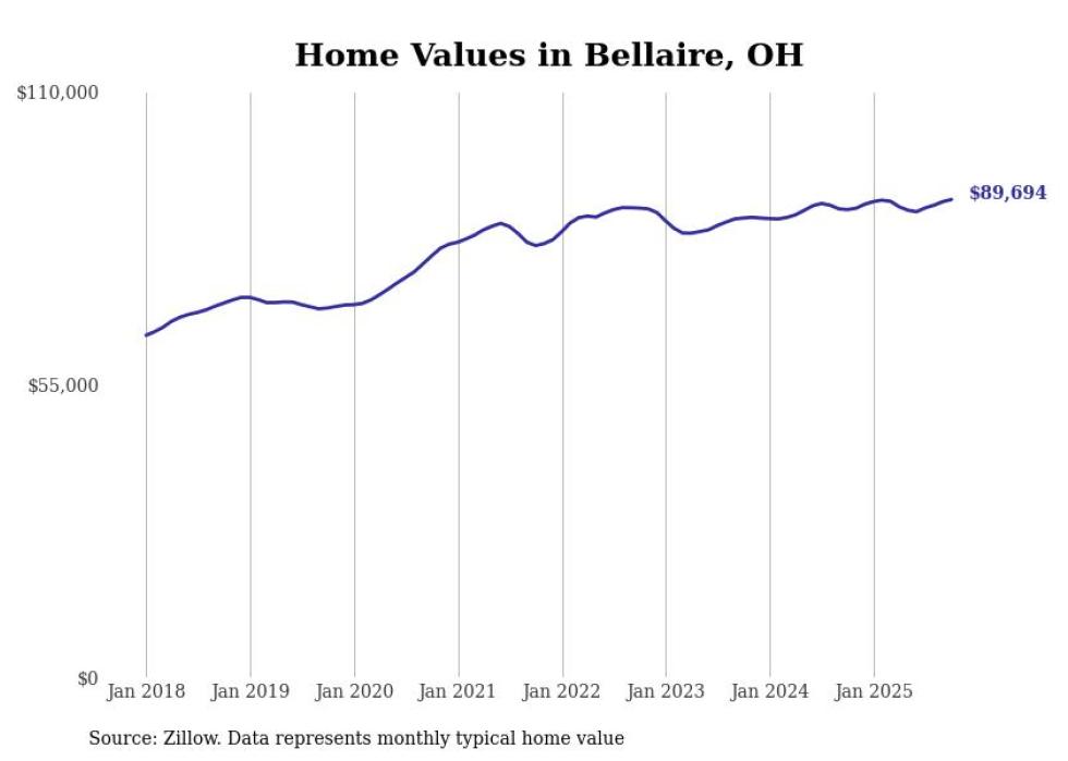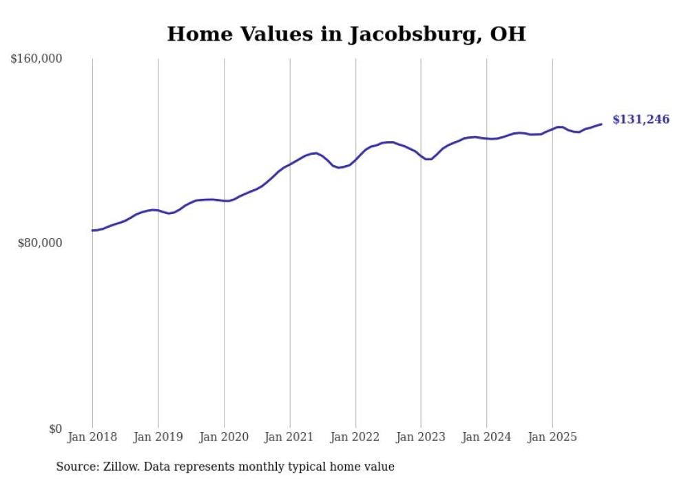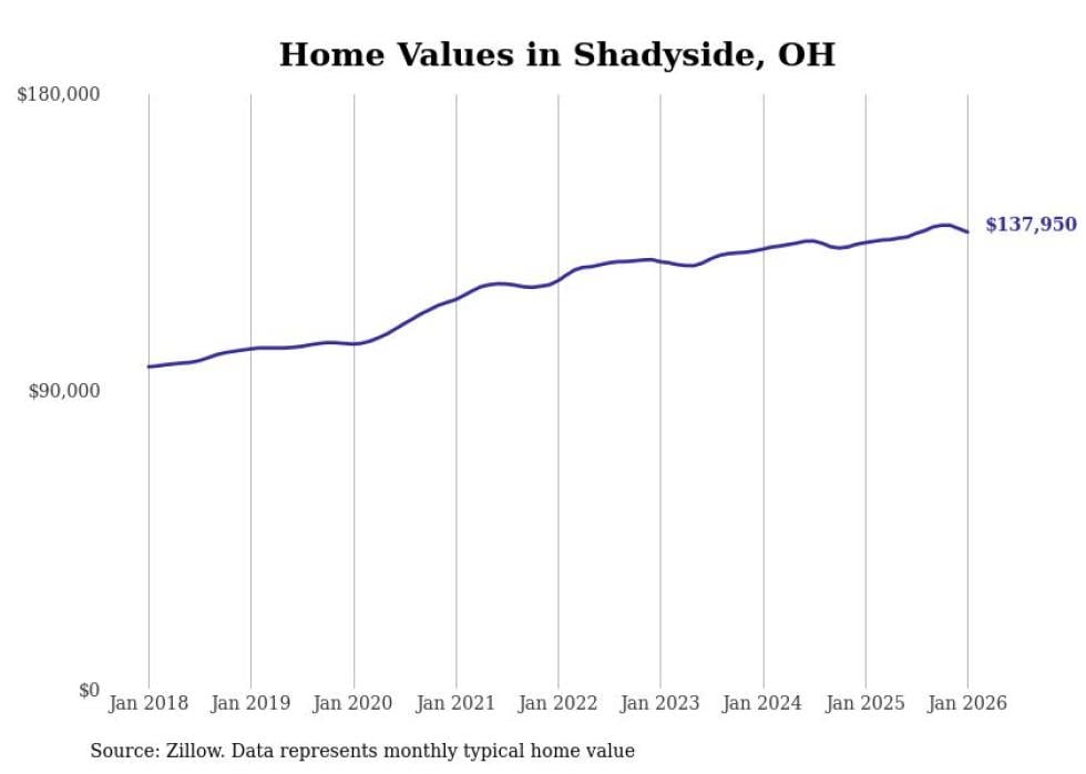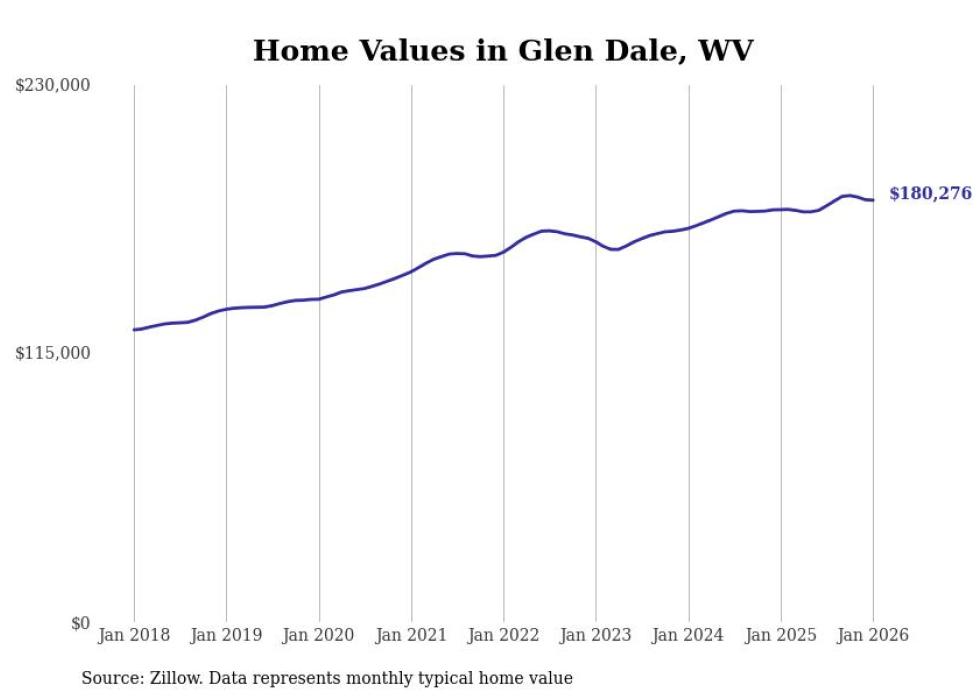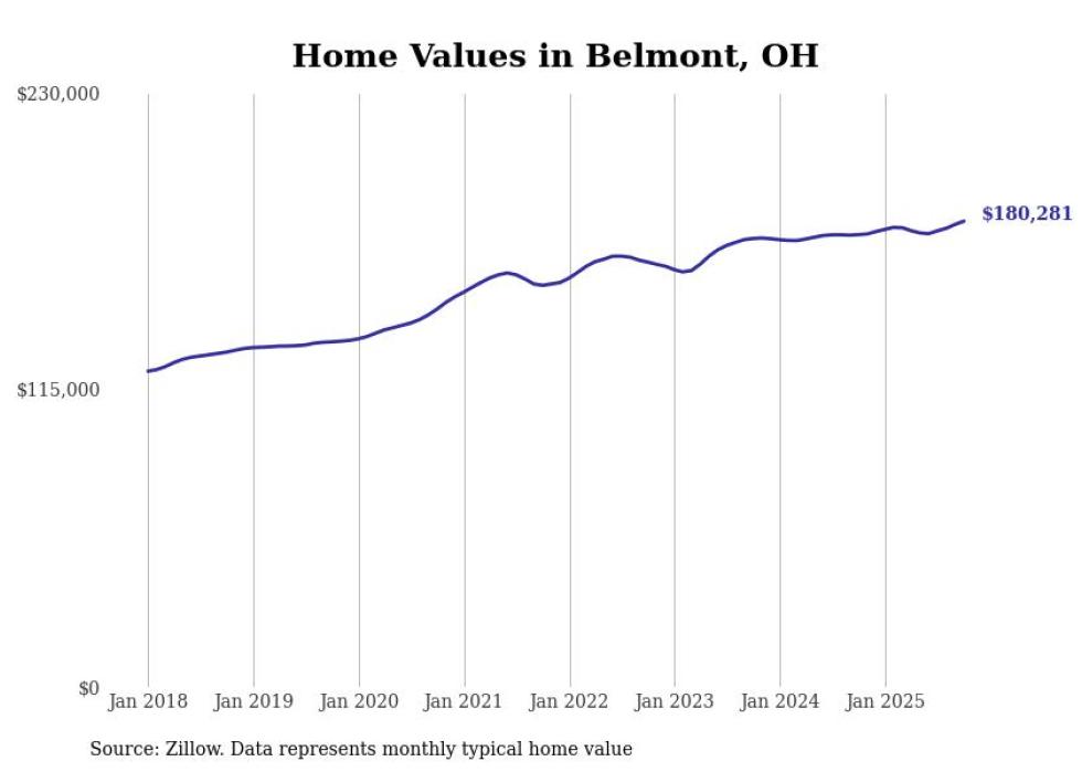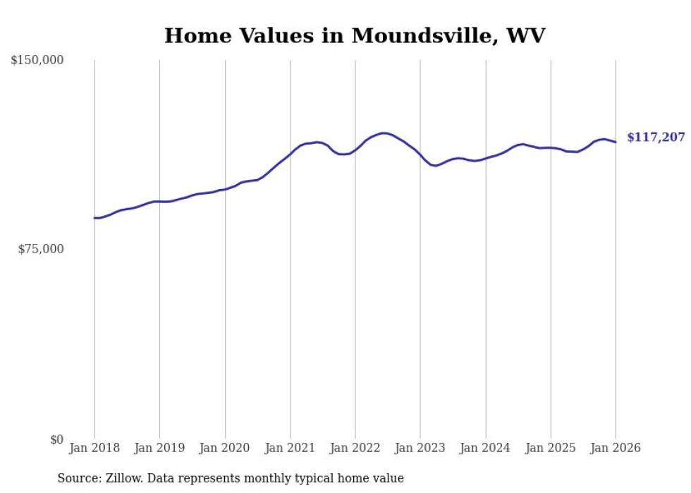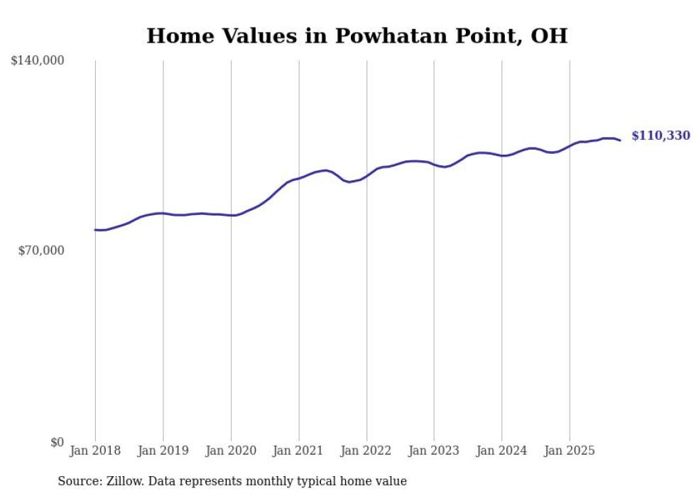 Stacker compiled a list of cities with the most expensive homes in the Wheeling, WV-OH metro area using data from Zillow. Charts show the monthly typical home value since January 2018.