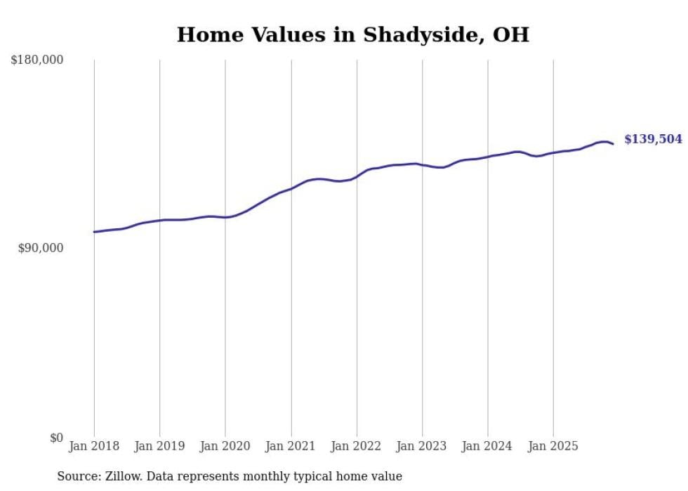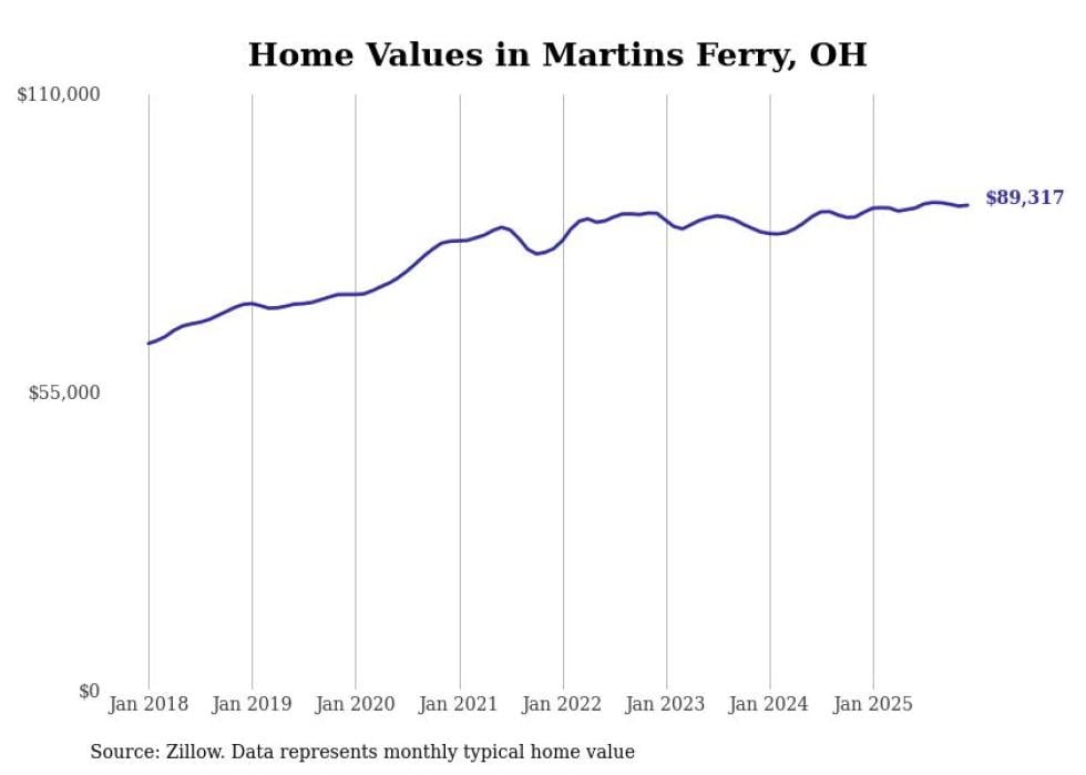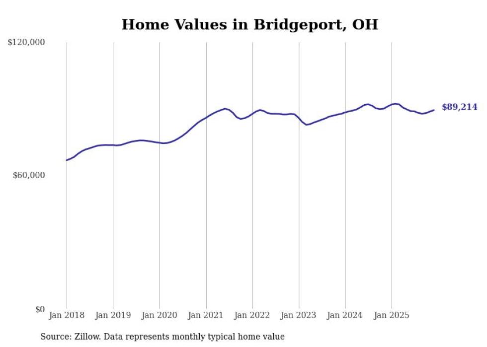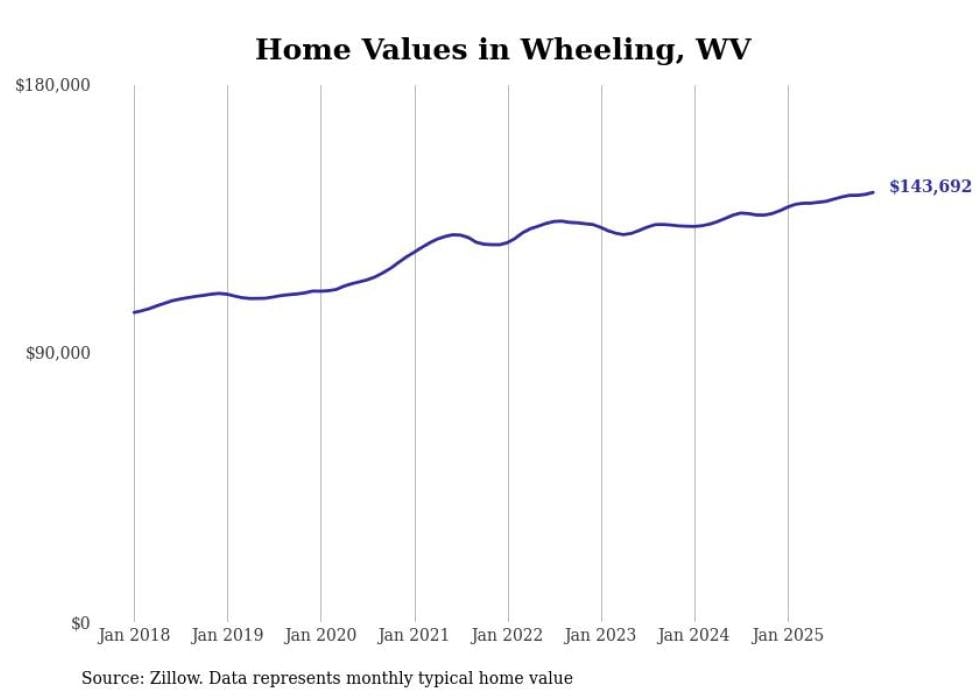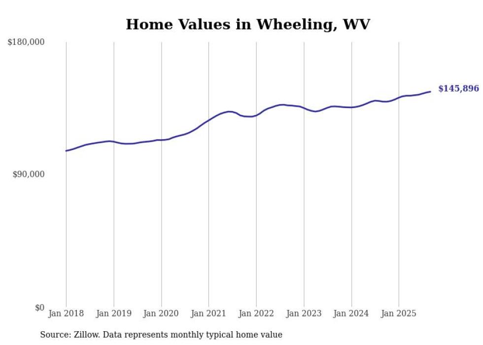 Stacker compiled a list of cities with the most expensive homes in the Wheeling metro area using data from Zillow. Charts show the monthly typical home value since January 2018. All 27 cities and towns with data available were included in the list.