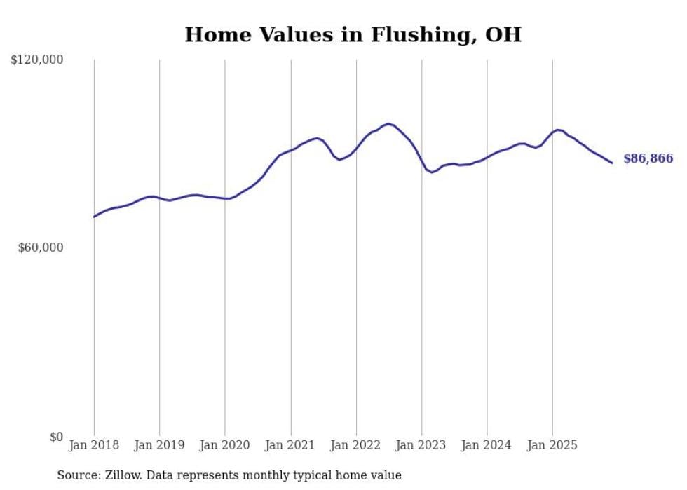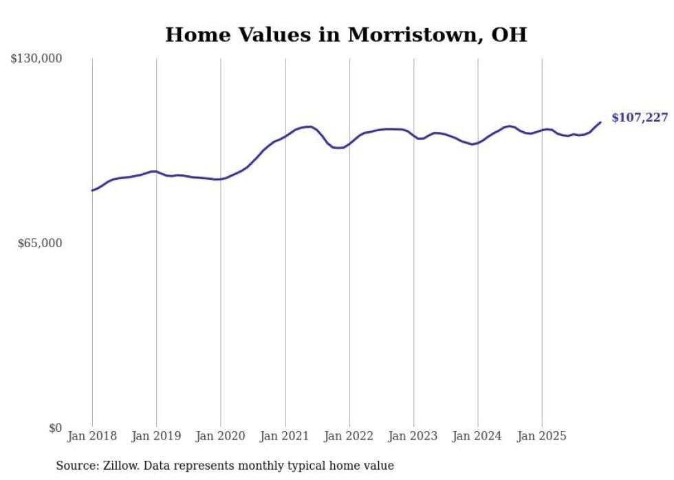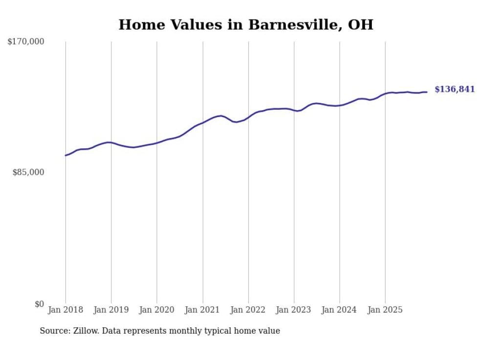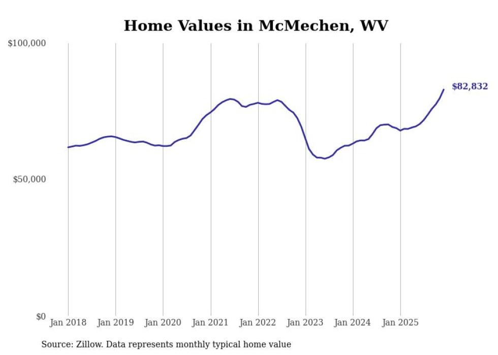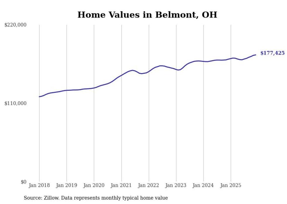 Stacker compiled a list of cities with the most expensive homes in the Wheeling metro area using data from Zillow. Charts show the monthly typical home value since January 2018. All 27 cities and towns with data available were included in the list.