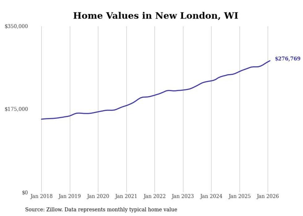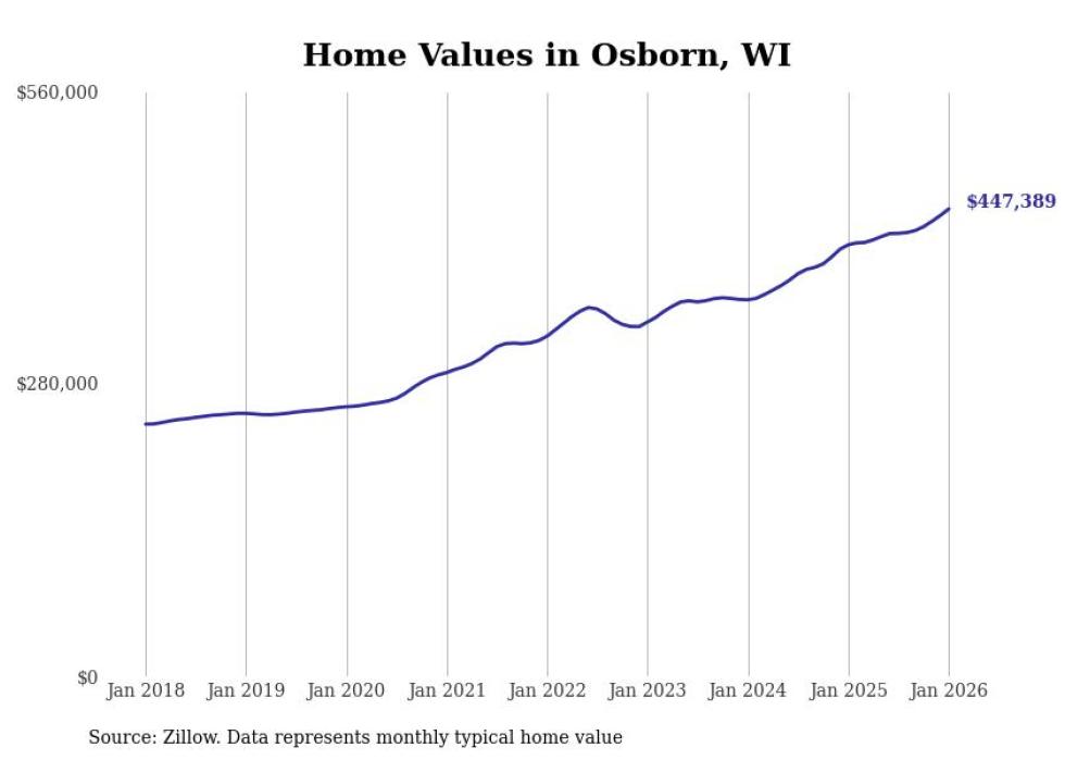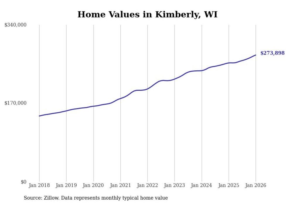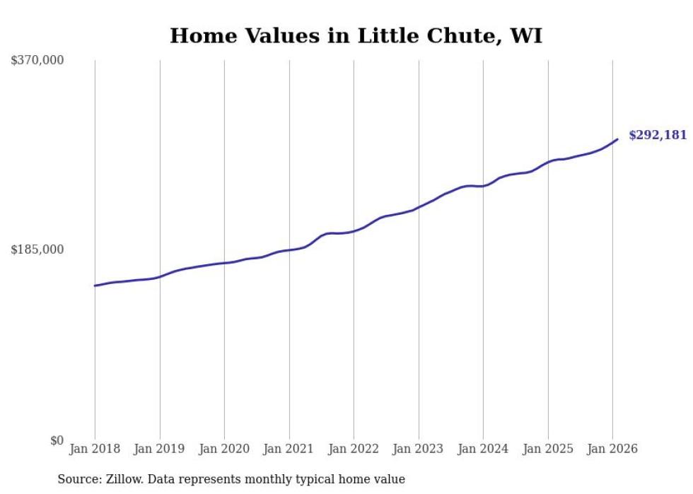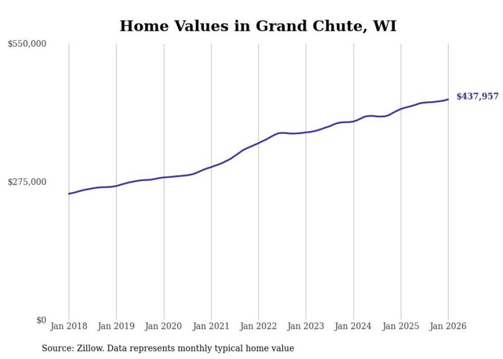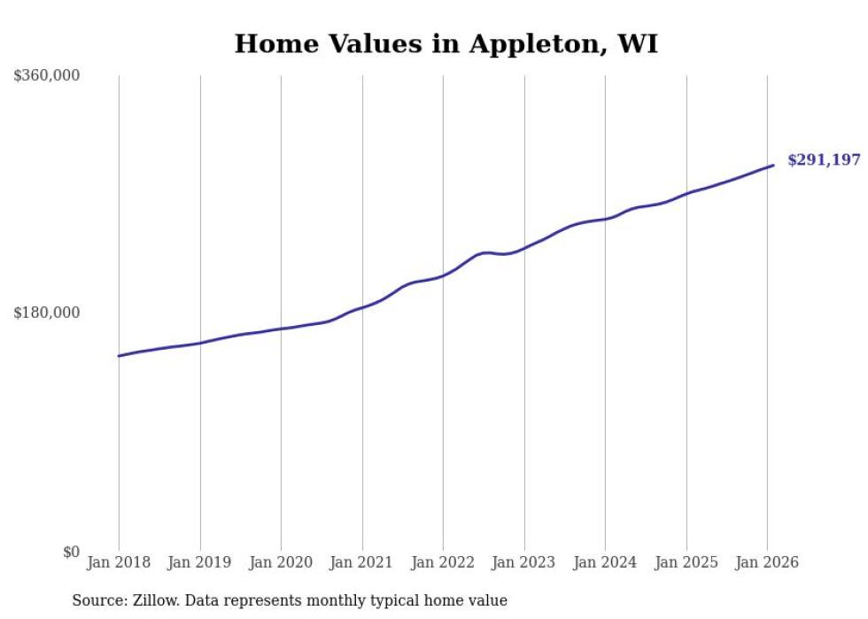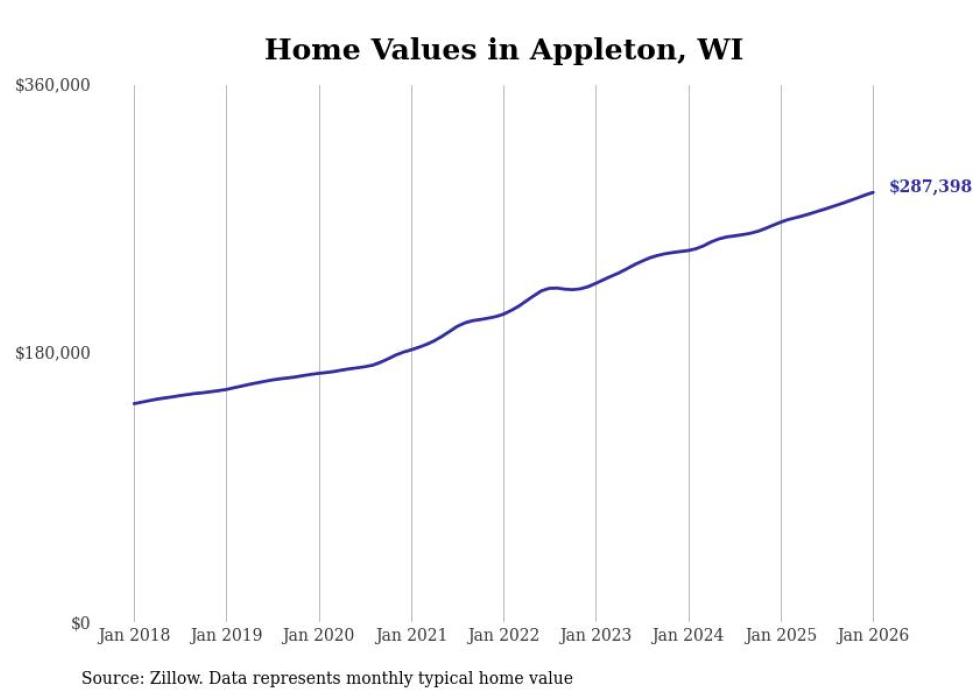 Stacker compiled a list of cities with the most expensive homes in the Appleton, WI metro area using data from Zillow. Charts show the monthly typical home value since January 2018.