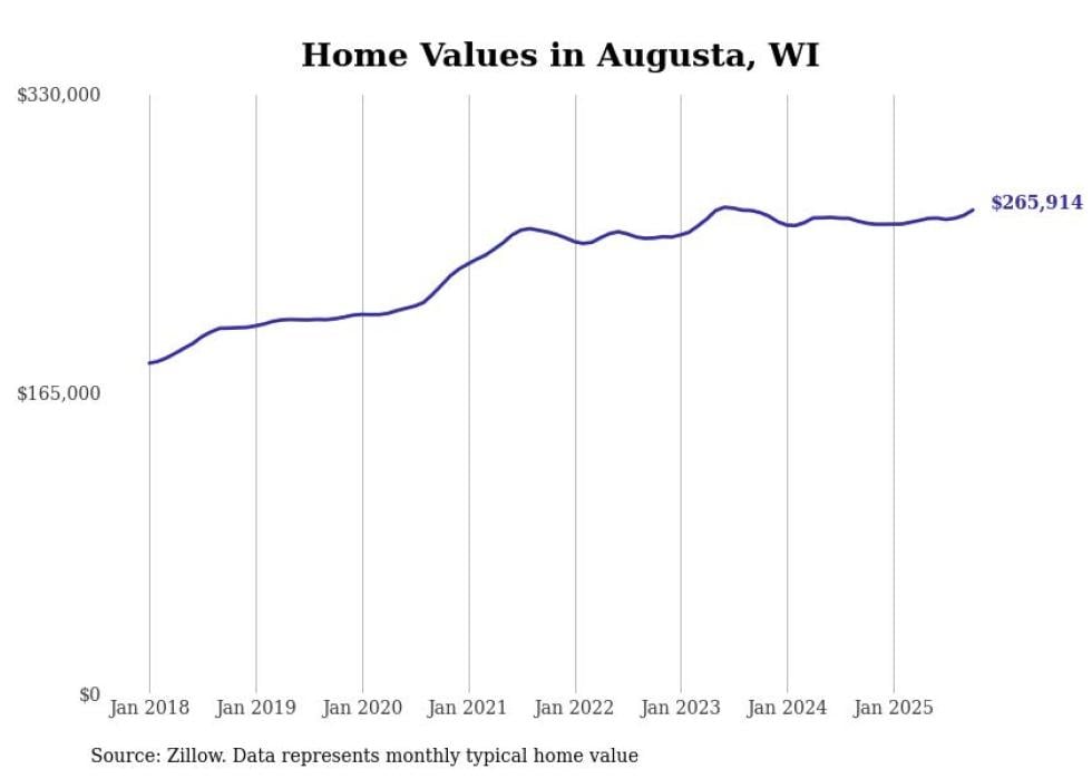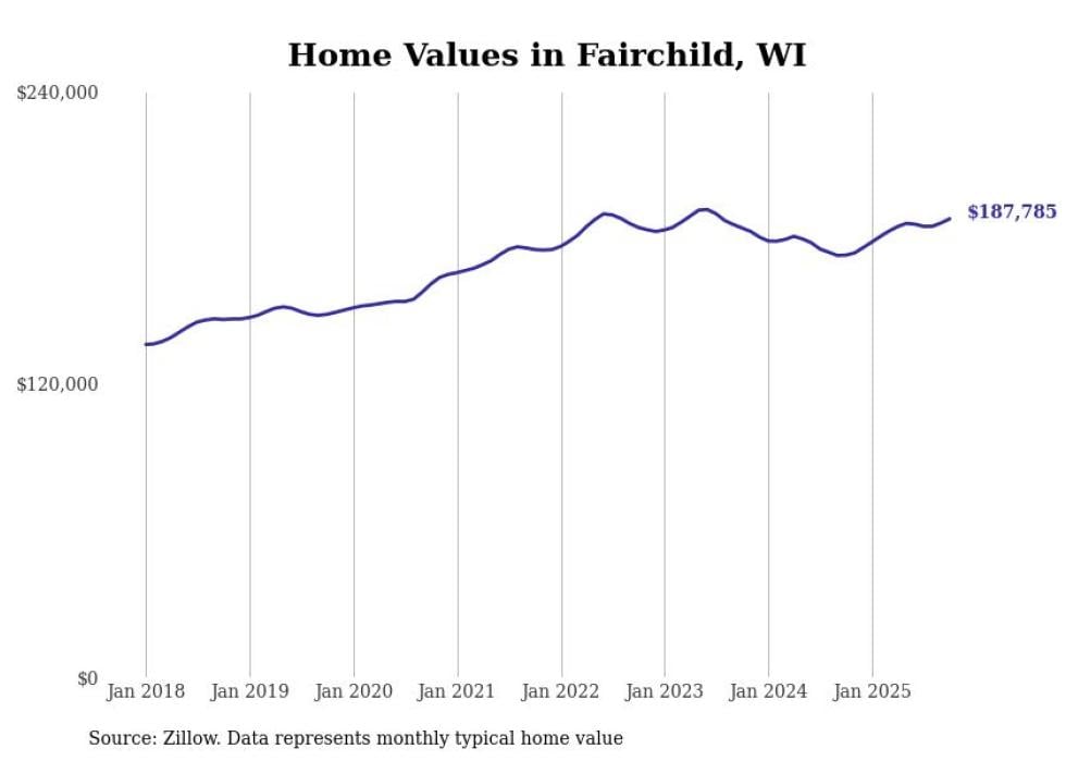 Stacker compiled a list of cities with the most expensive homes in the Eau Claire, WI metro area using data from Zillow. Charts show the monthly typical home value since January 2018.