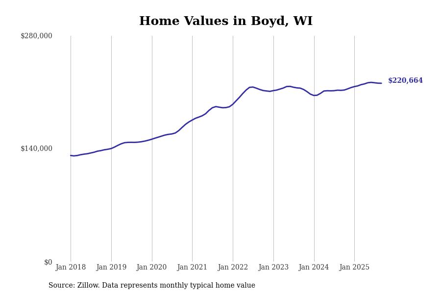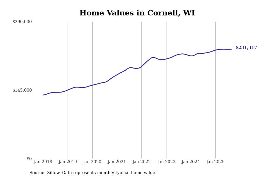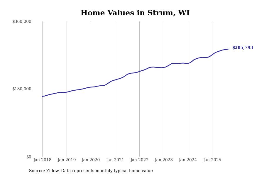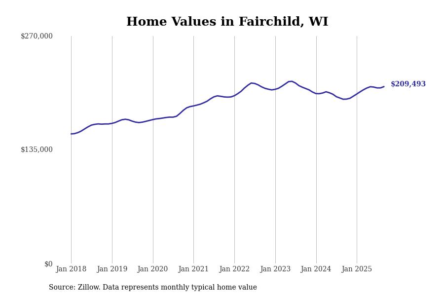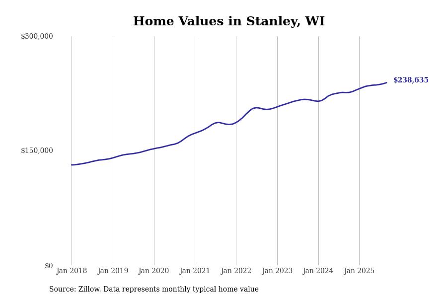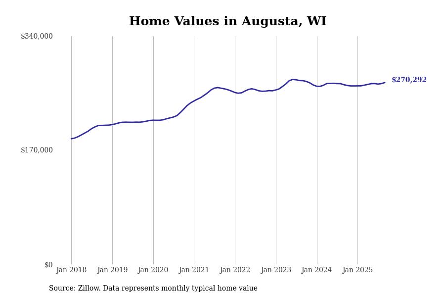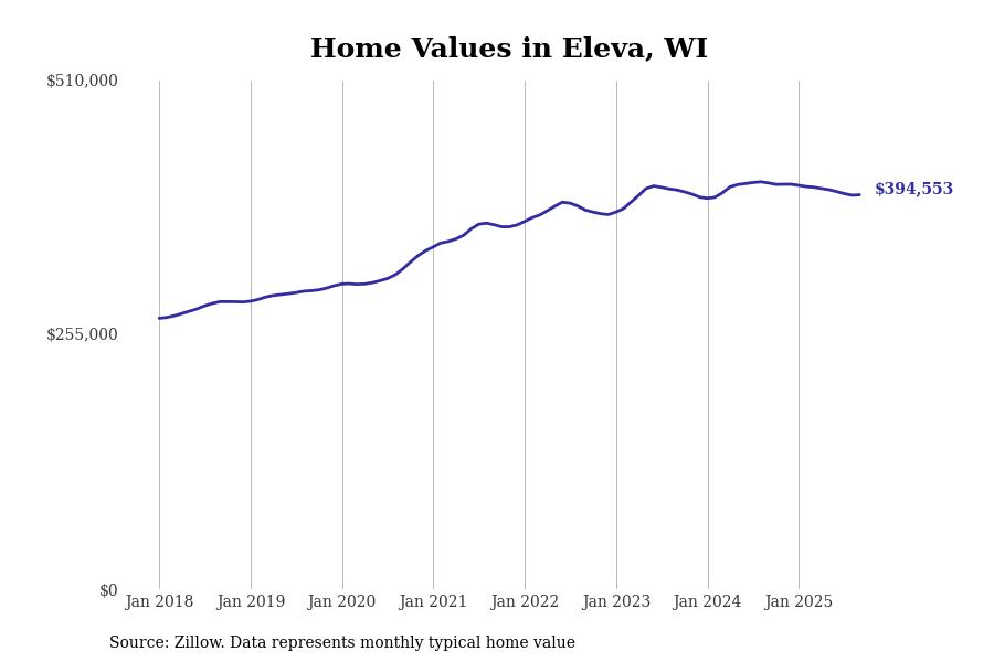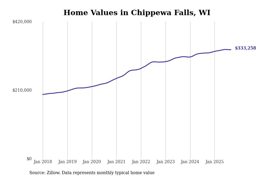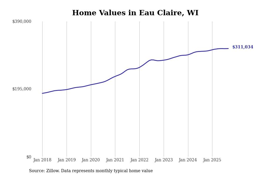 Stacker compiled a list of cities with the most expensive homes in the Eau Claire metro area using data from Zillow. Charts show the monthly typical home value since January 2018. All 17 cities and towns with data available were included in the list.