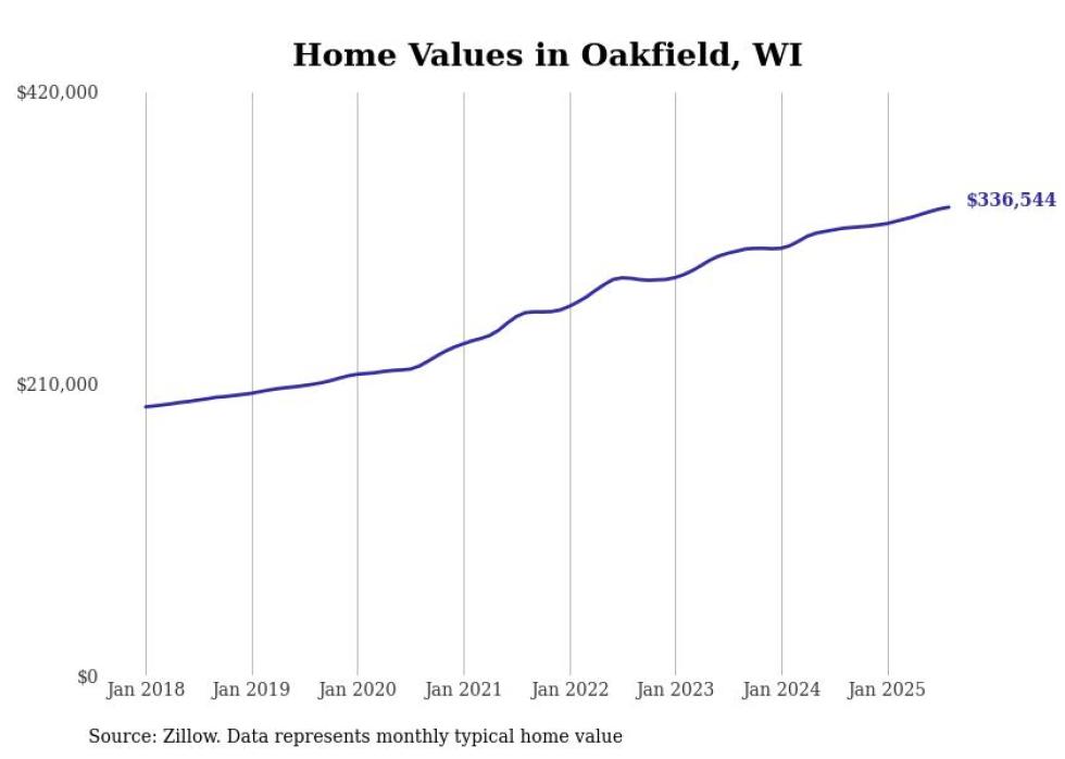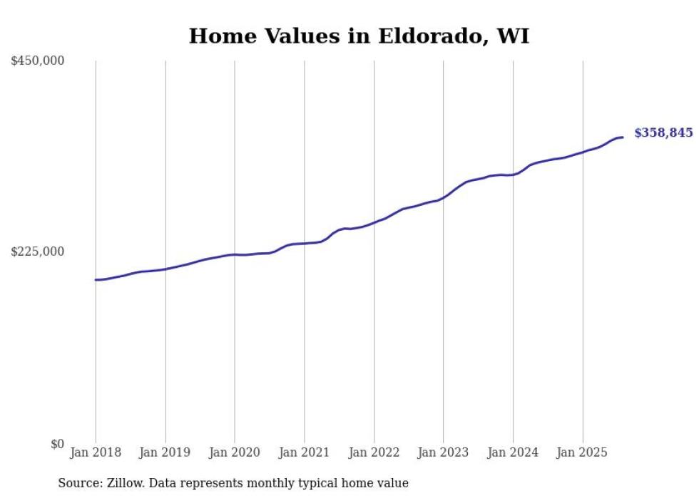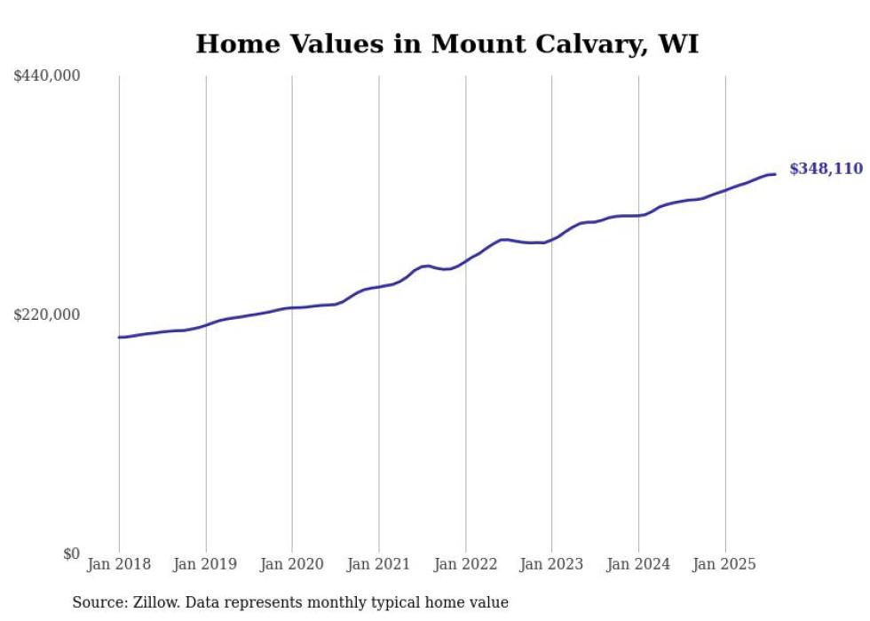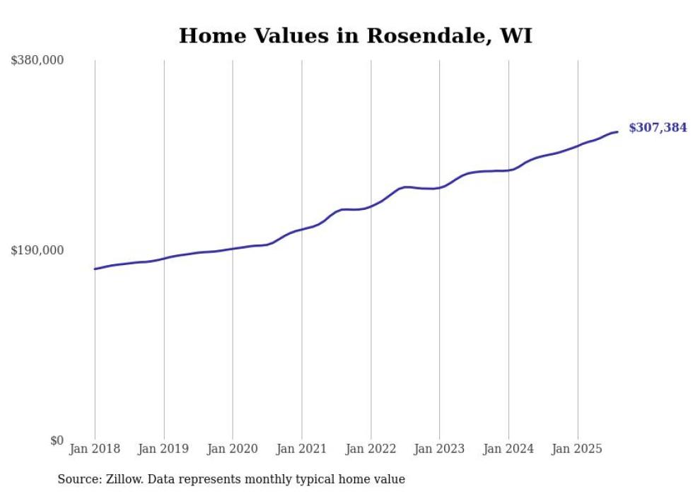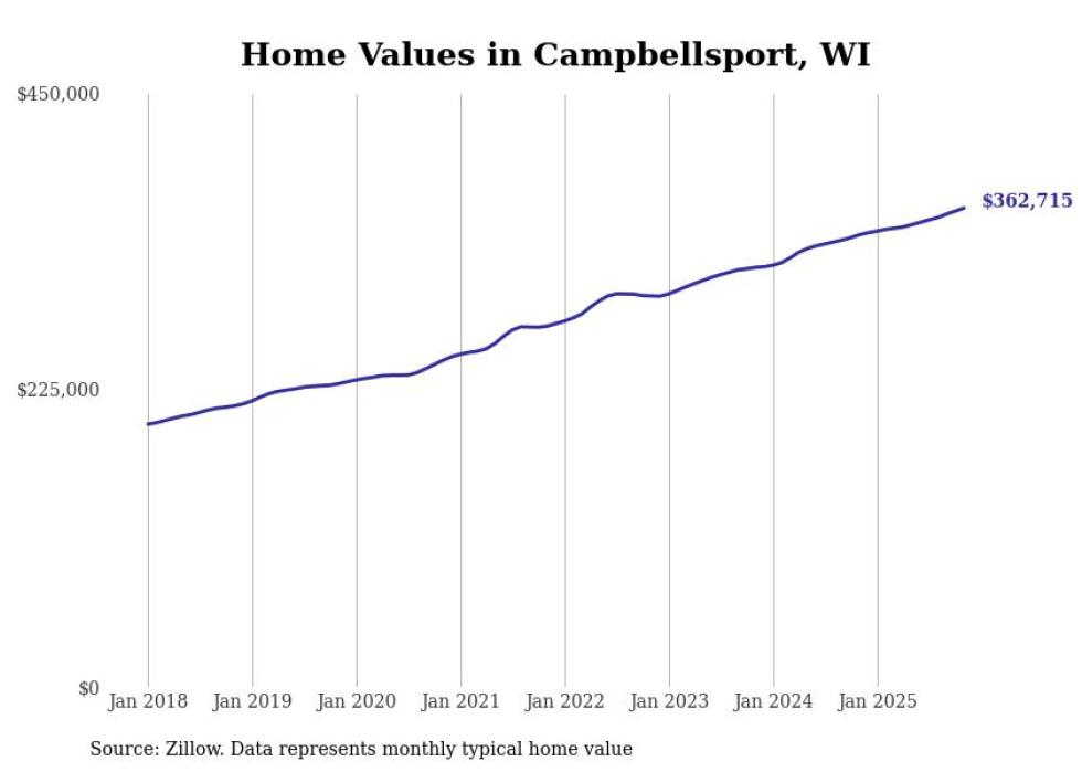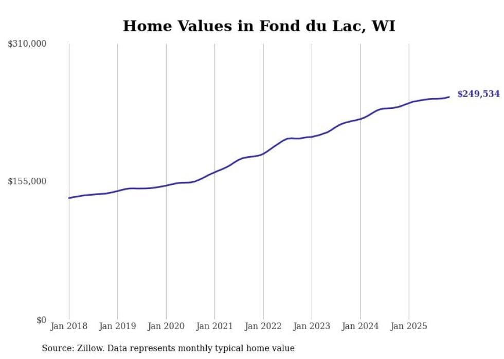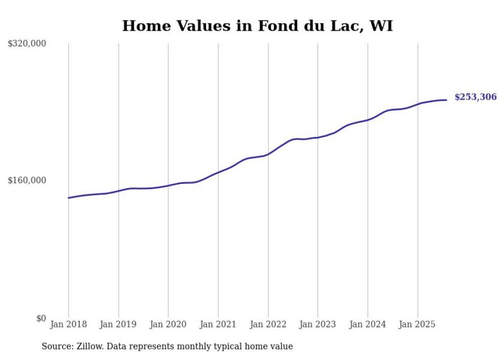 Stacker compiled a list of cities with the most expensive homes in the Fond du Lac, WI metro area using data from Zillow. Charts show the monthly typical home value since January 2018.