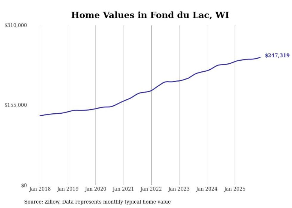 Stacker compiled a list of cities with the most expensive homes in the Fond du Lac metro area using data from Zillow. Charts show the monthly typical home value since January 2018. All 12 cities and towns with data available were included in the list.