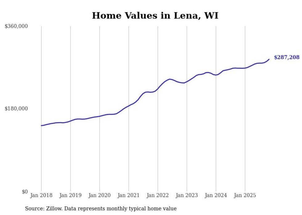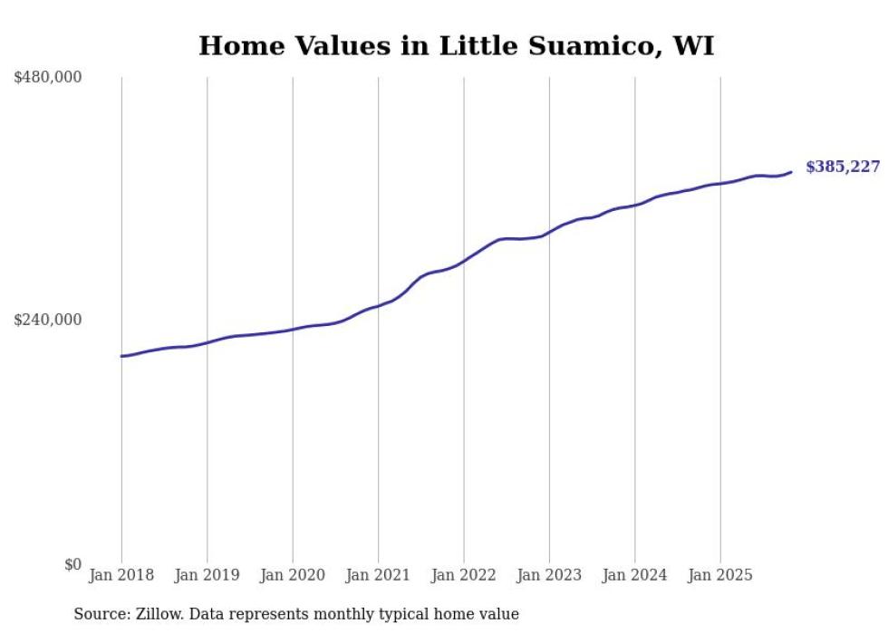 Stacker compiled a list of cities with the most expensive homes in the Green Bay, WI metro area using data from Zillow. Charts show the monthly typical home value since January 2018.