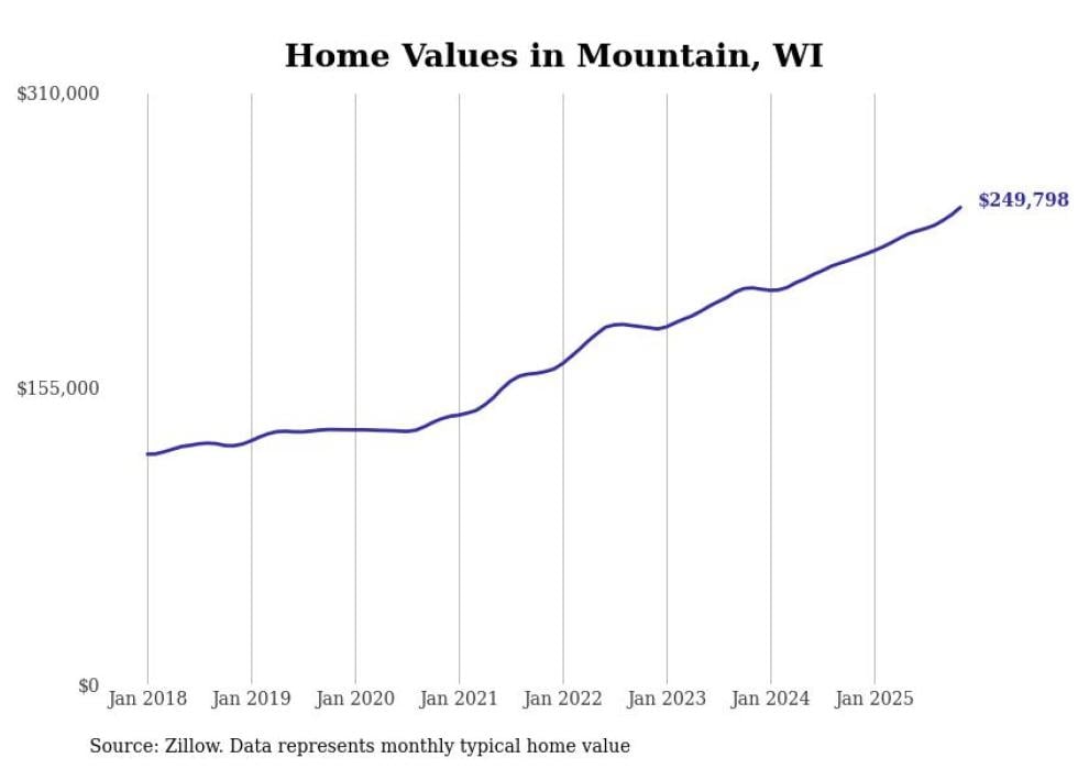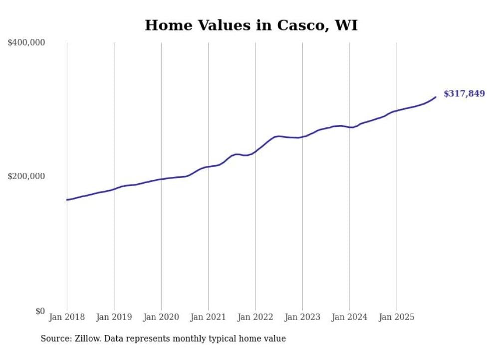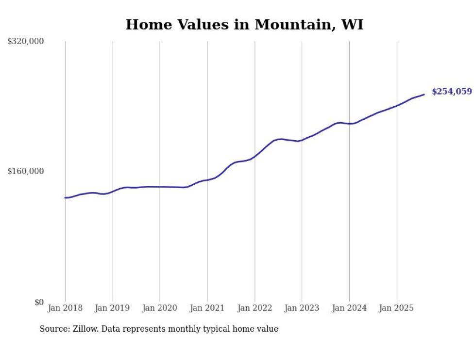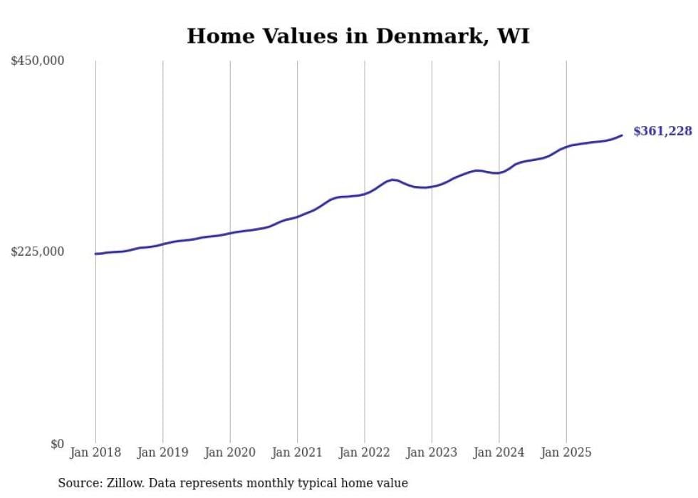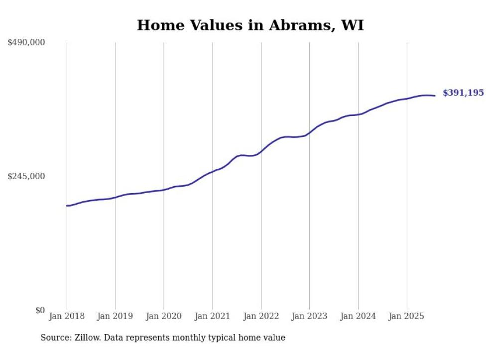 Stacker compiled a list of cities with the most expensive homes in the Green Bay metro area using data from Zillow. Charts show the monthly typical home value since January 2018. Data was available for 31 cities and towns.