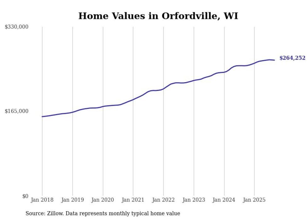 Stacker compiled a list of cities with the most expensive homes in the Janesville-Beloit, WI metro area using data from Zillow. Charts show the monthly typical home value since January 2018.