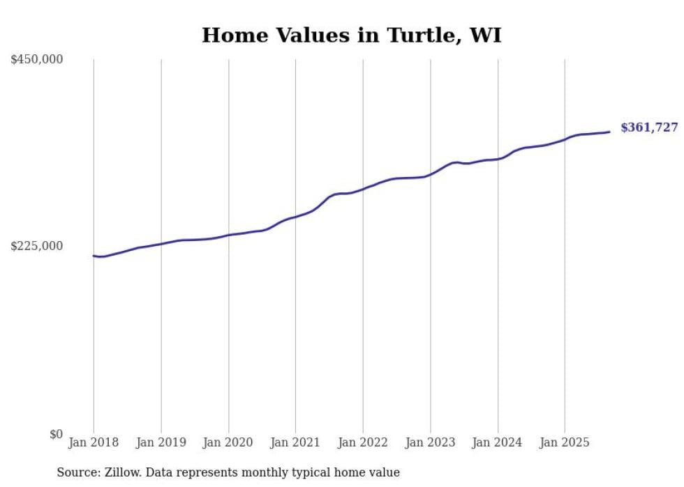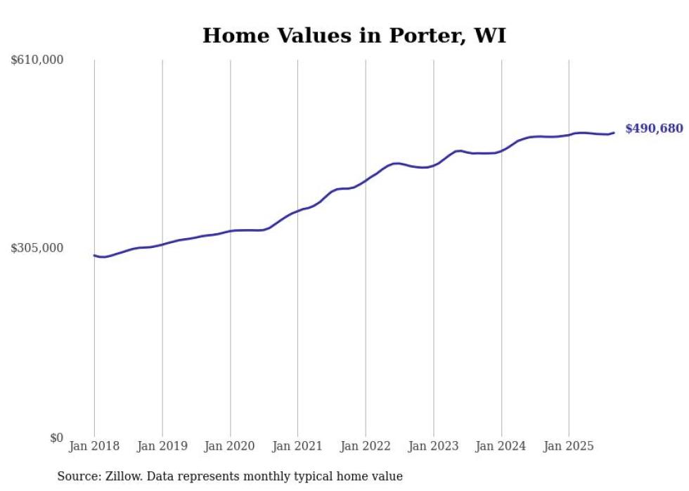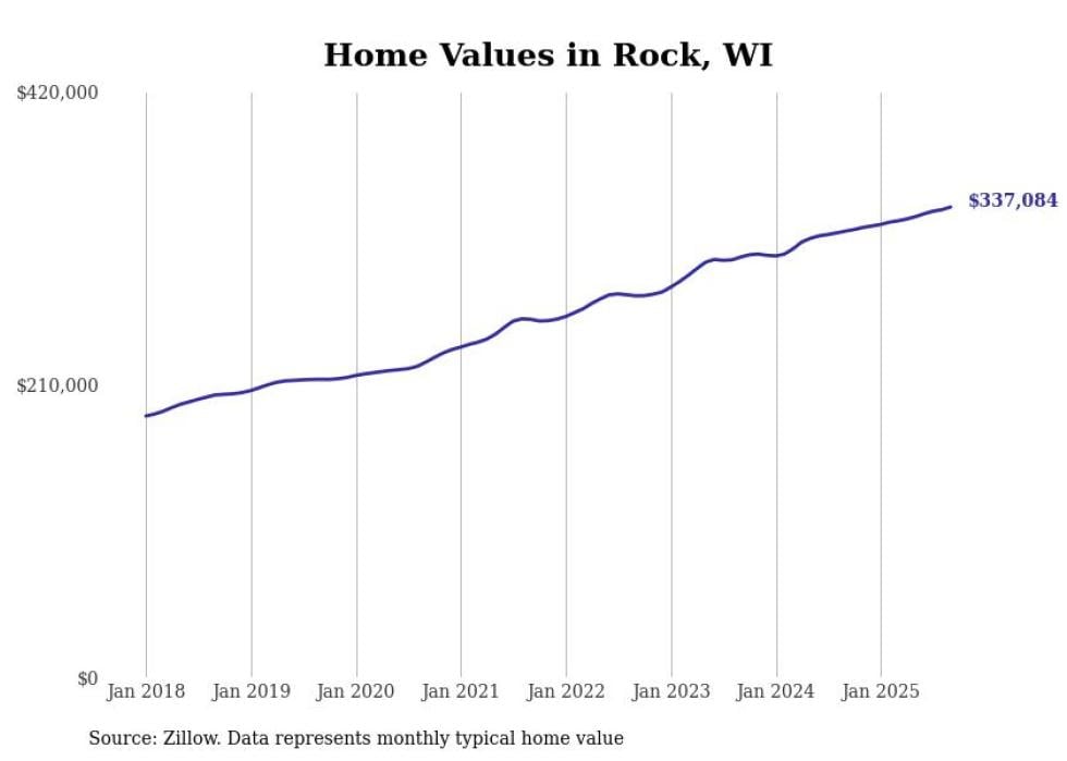 Stacker compiled a list of cities with the most expensive homes in the Janesville metro area using data from Zillow. Charts show the monthly typical home value since January 2018. All 17 cities and towns with data available were included in the list.