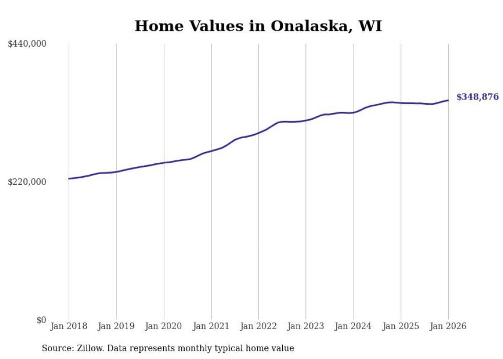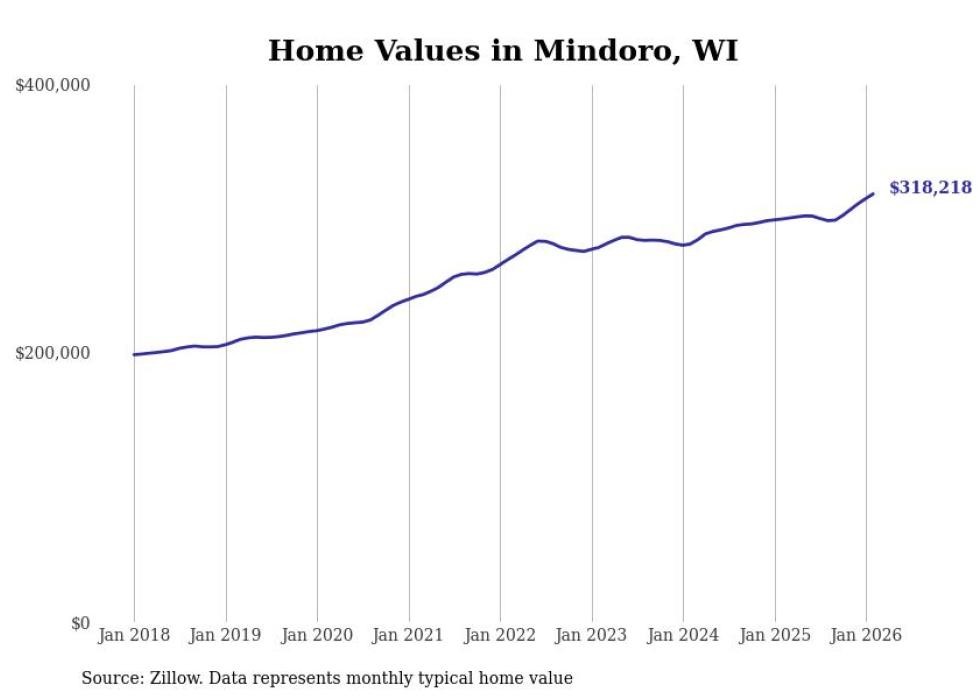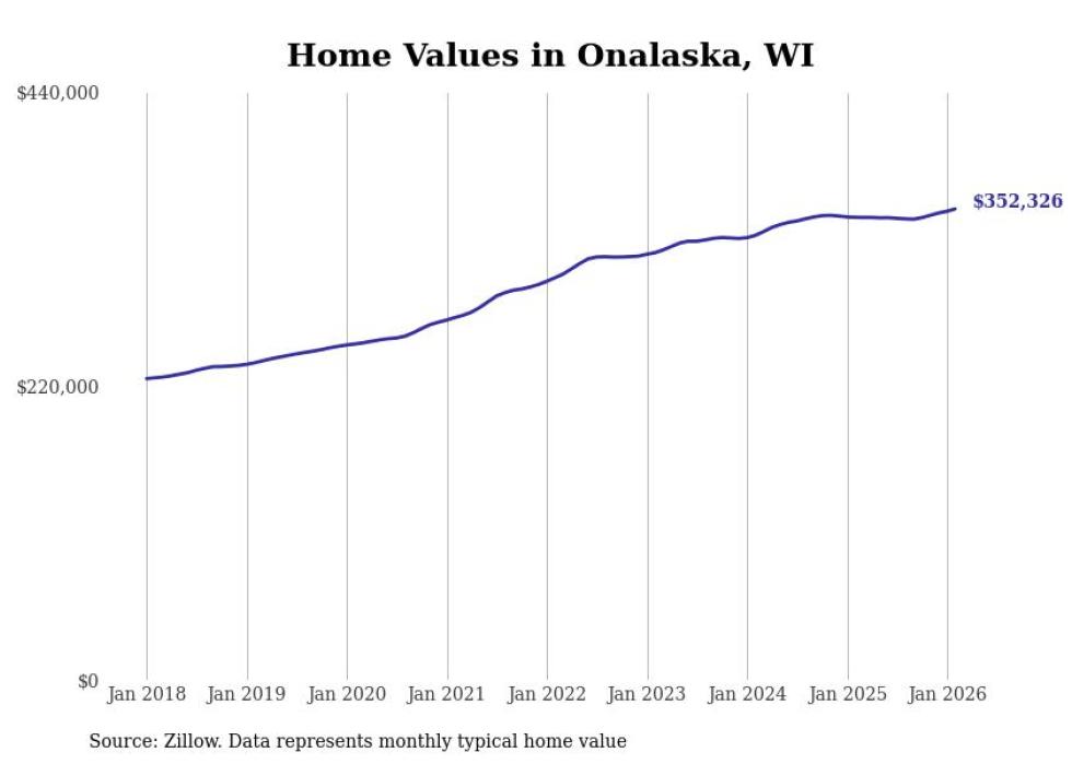 Stacker compiled a list of cities with the most expensive homes in the La Crosse-Onalaska, WI-MN metro area using data from Zillow. Charts show the monthly typical home value since January 2018.