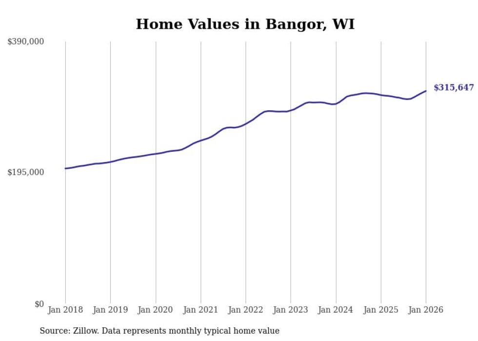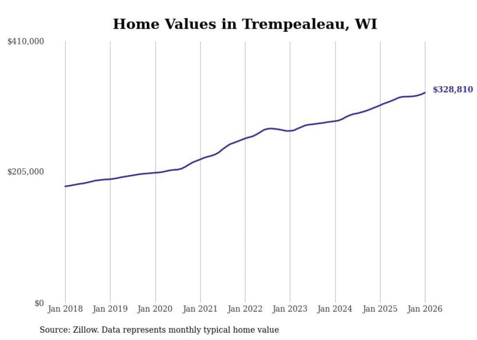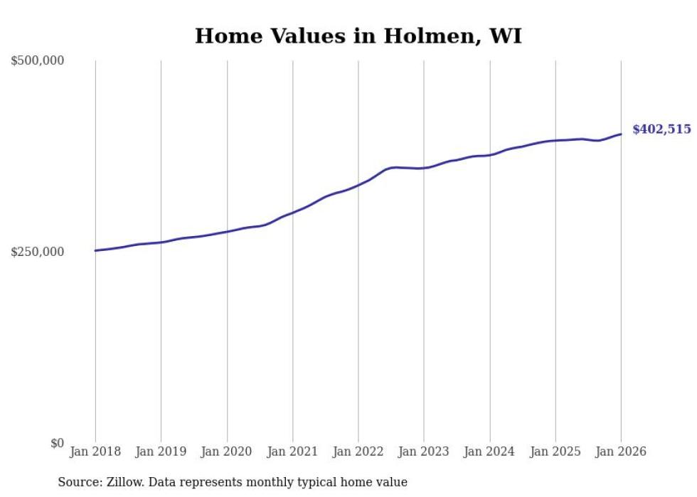 Stacker compiled a list of cities with the most expensive homes in the La Crosse metro area using data from Zillow. Charts show the monthly typical home value since January 2018. All 16 cities and towns with data available were included in the list.