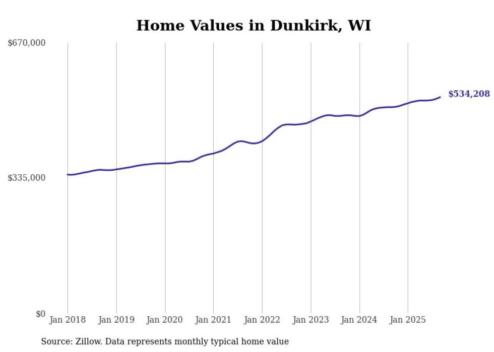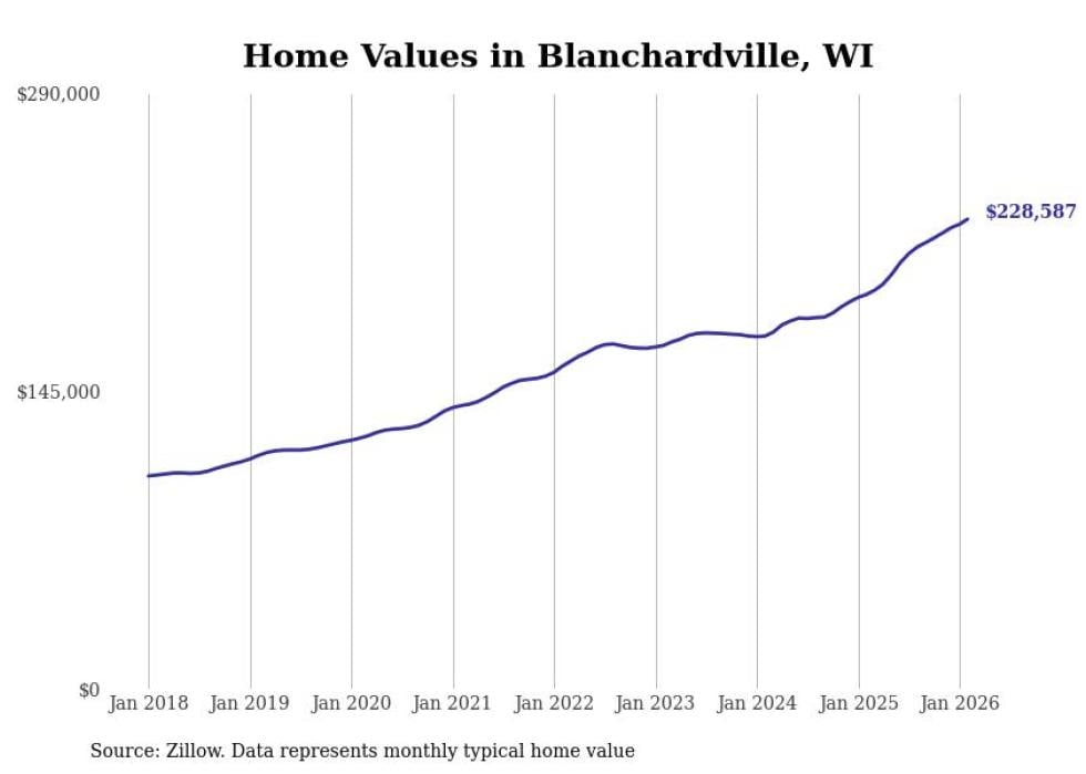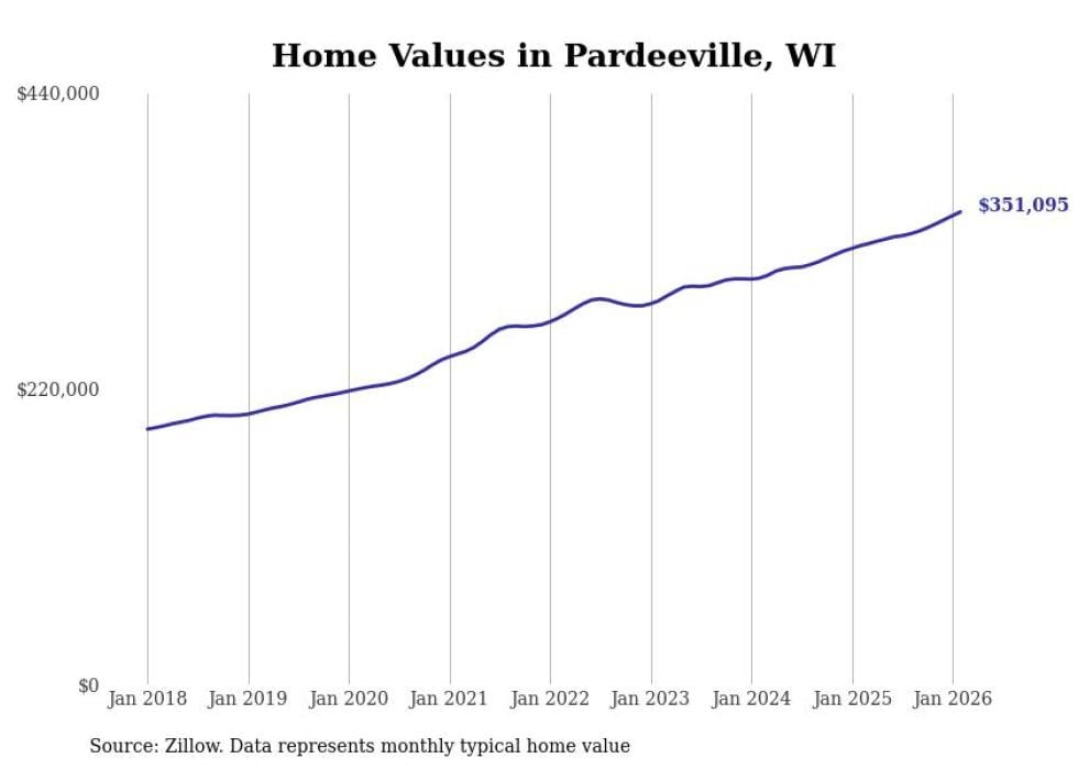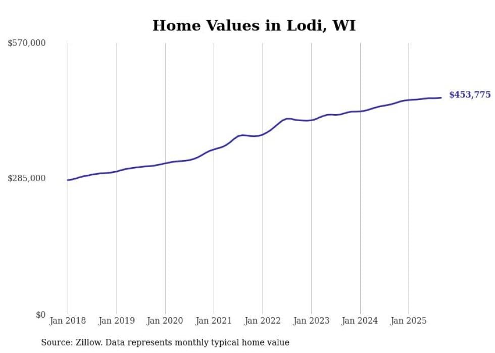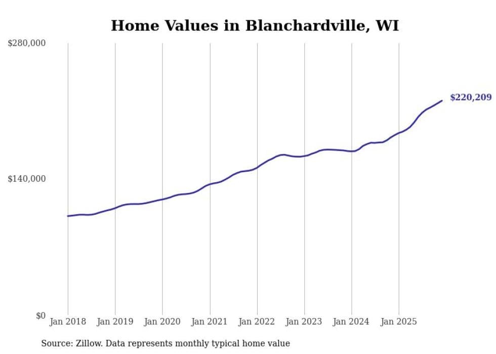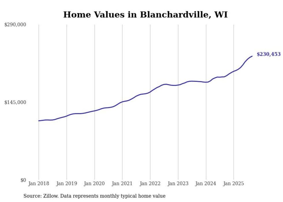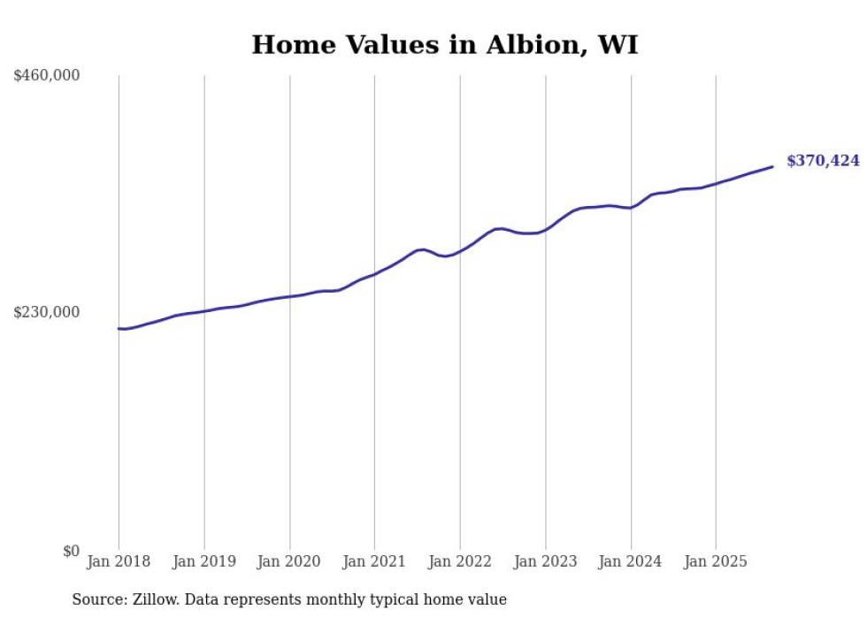 Stacker compiled a list of cities with the most expensive homes in the Madison, WI metro area using data from Zillow. Charts show the monthly typical home value since January 2018.