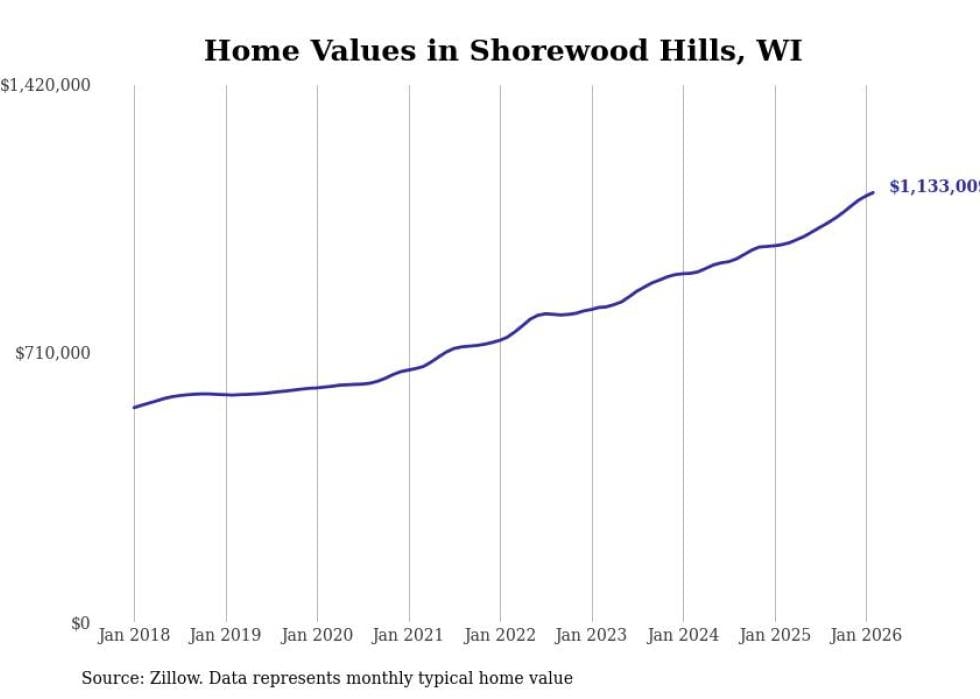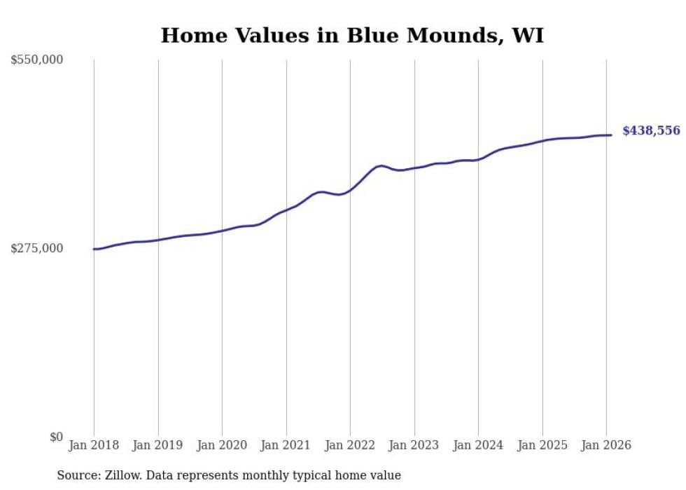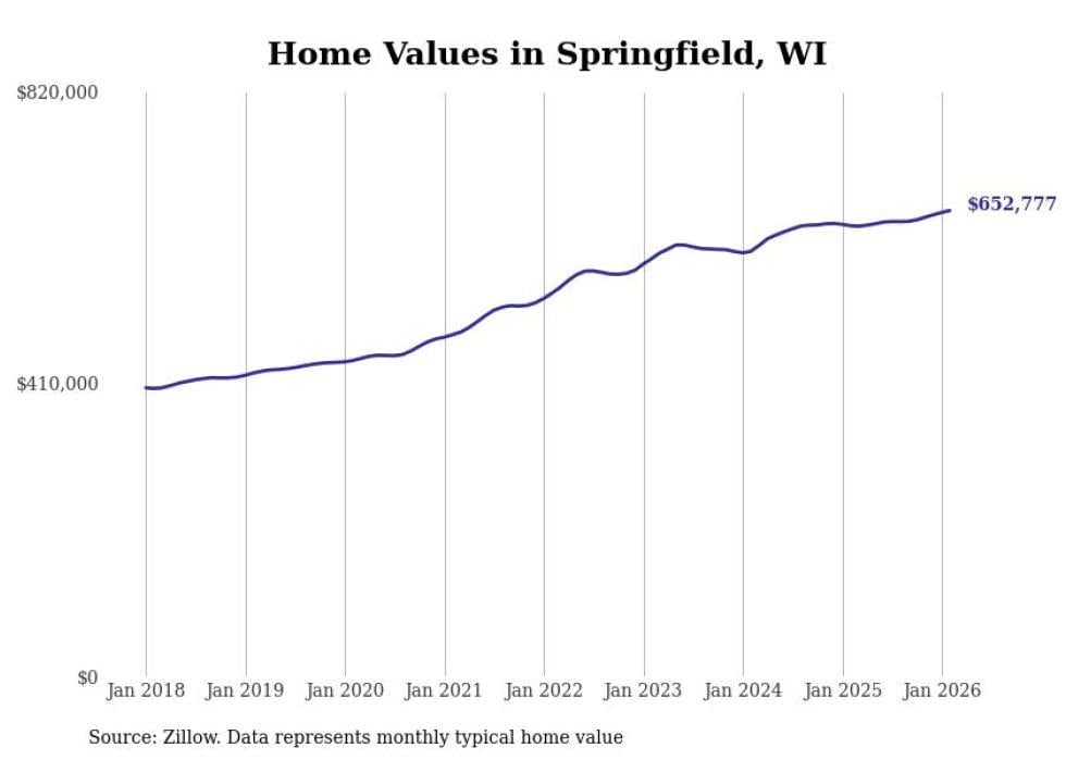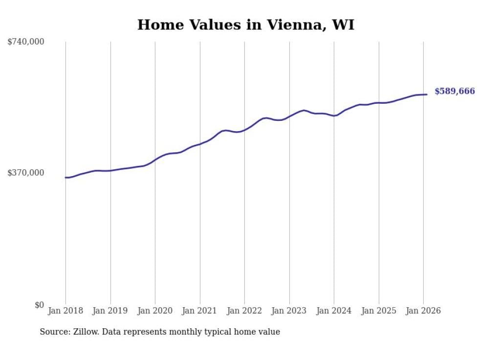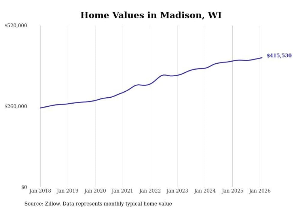 Stacker compiled a list of cities with the most expensive homes in the Madison metro area using data from Zillow. Charts show the monthly typical home value since January 2018. Data was available for 57 cities and towns.