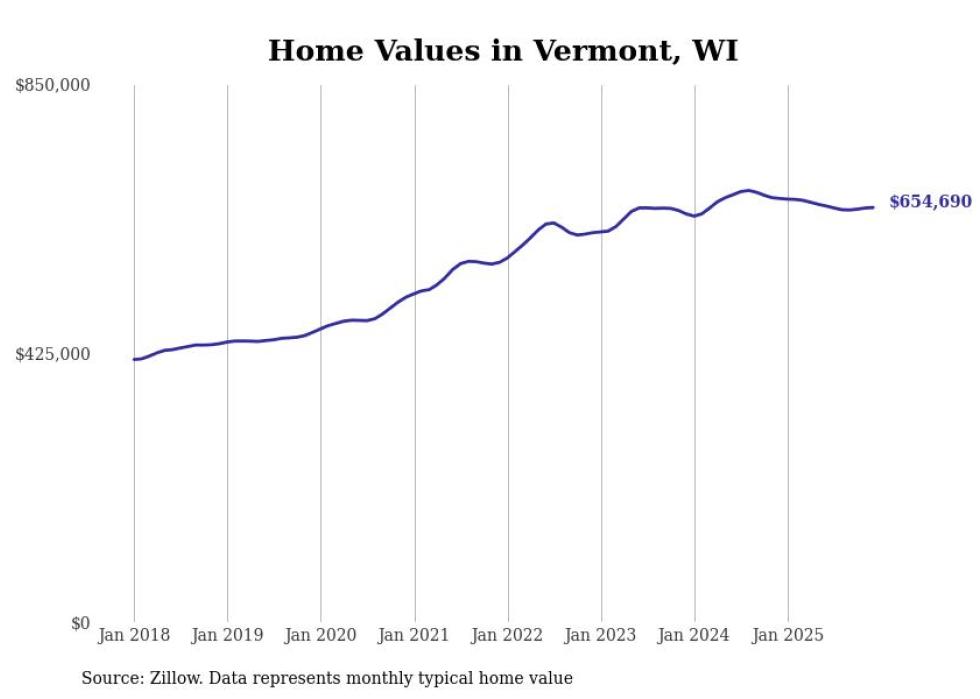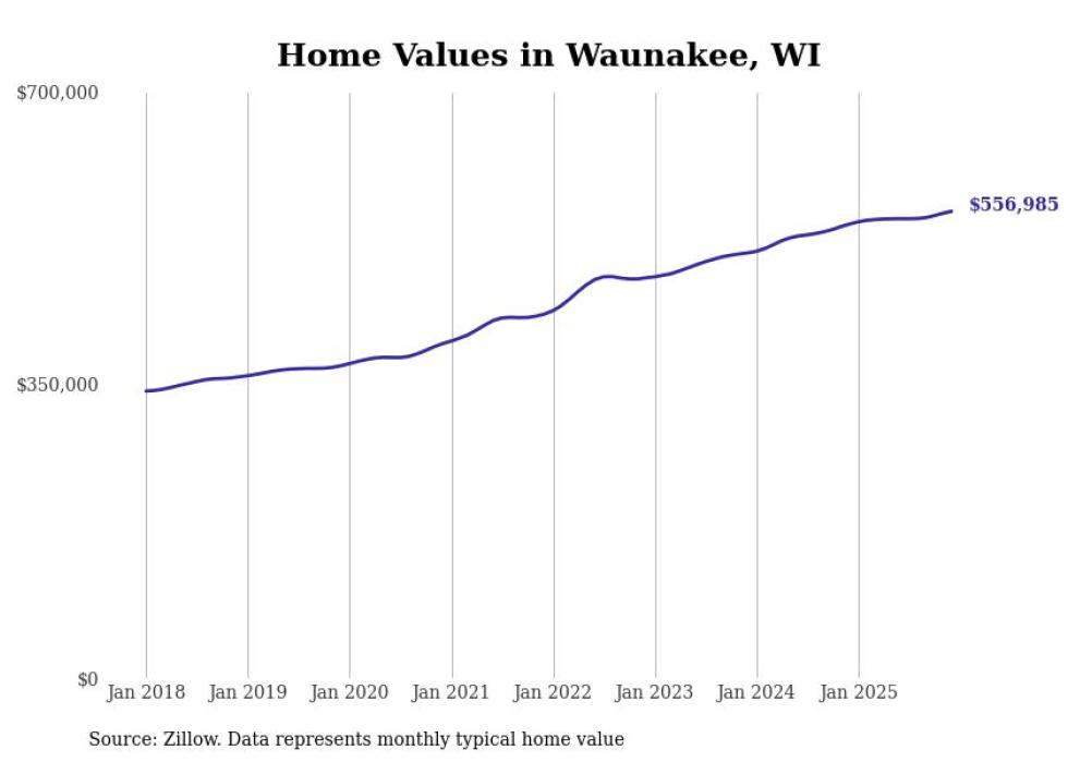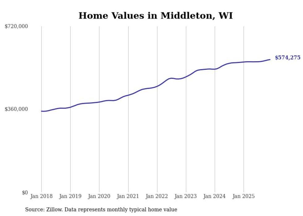 Stacker compiled a list of cities with the most expensive homes in the Madison metro area using data from Zillow. Charts show the monthly typical home value since January 2018. Data was available for 58 cities and towns.