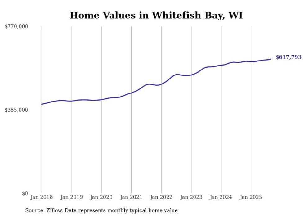 Stacker compiled a list of cities with the most expensive homes in the Milwaukee-Waukesha, WI metro area using data from Zillow. Charts show the monthly typical home value since January 2018.
