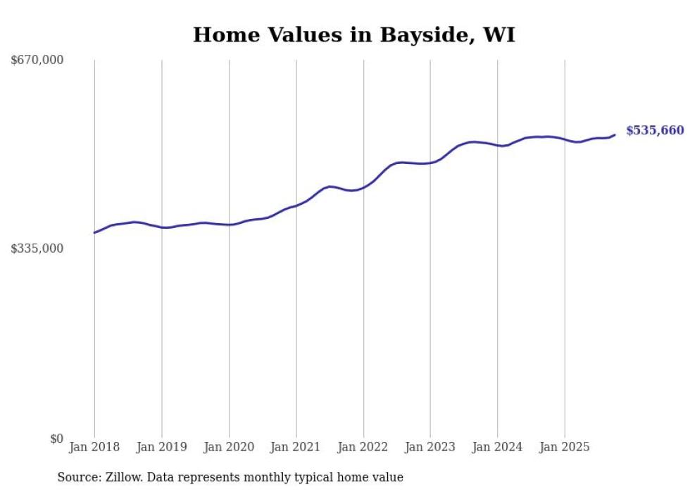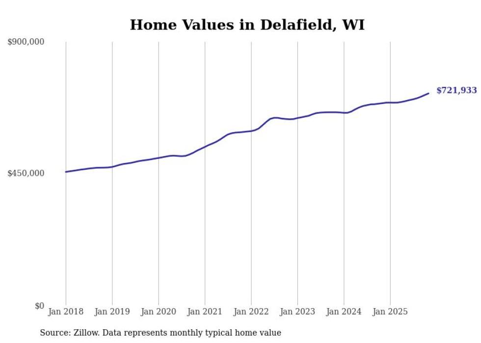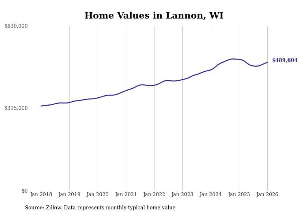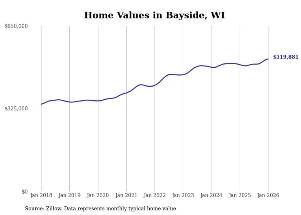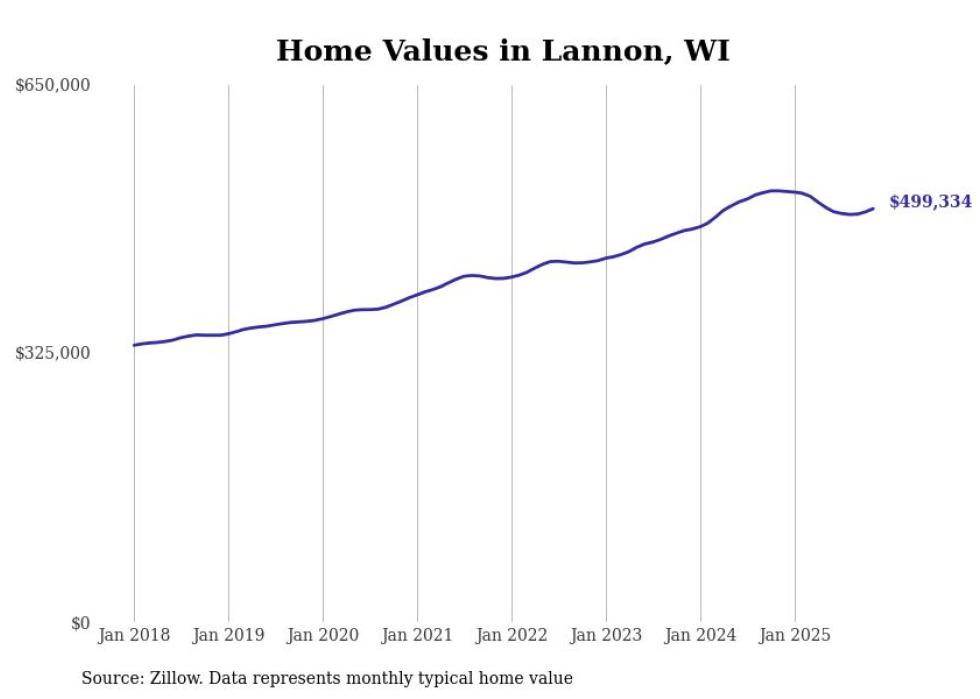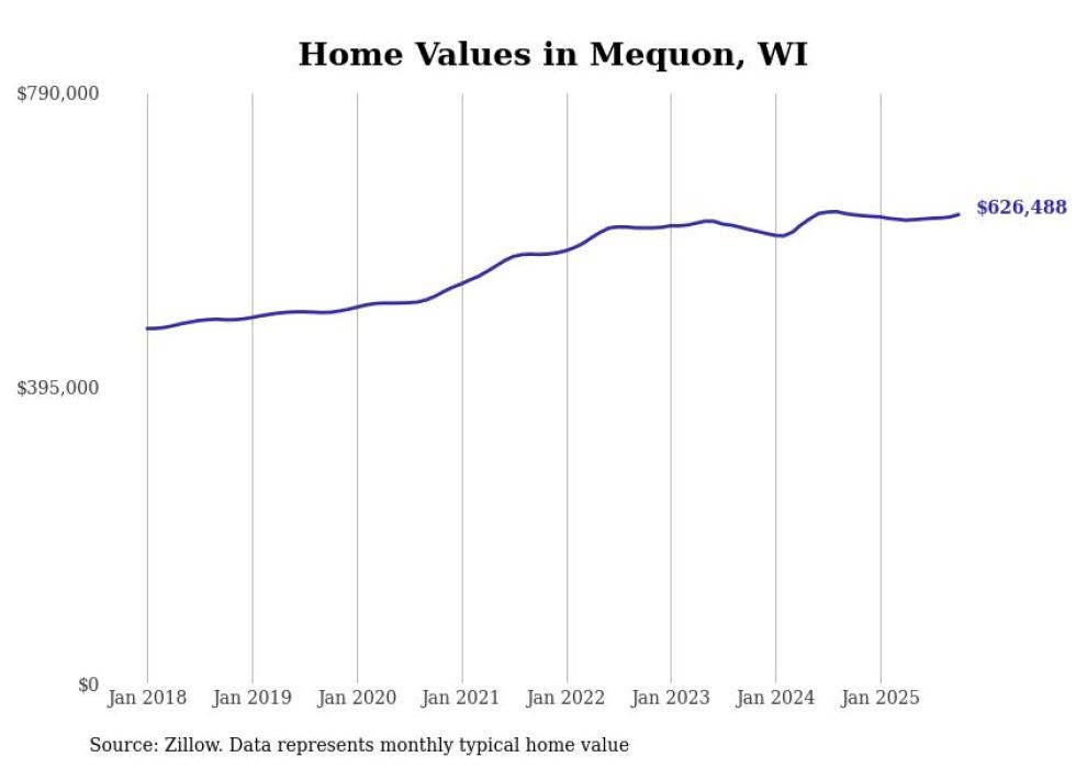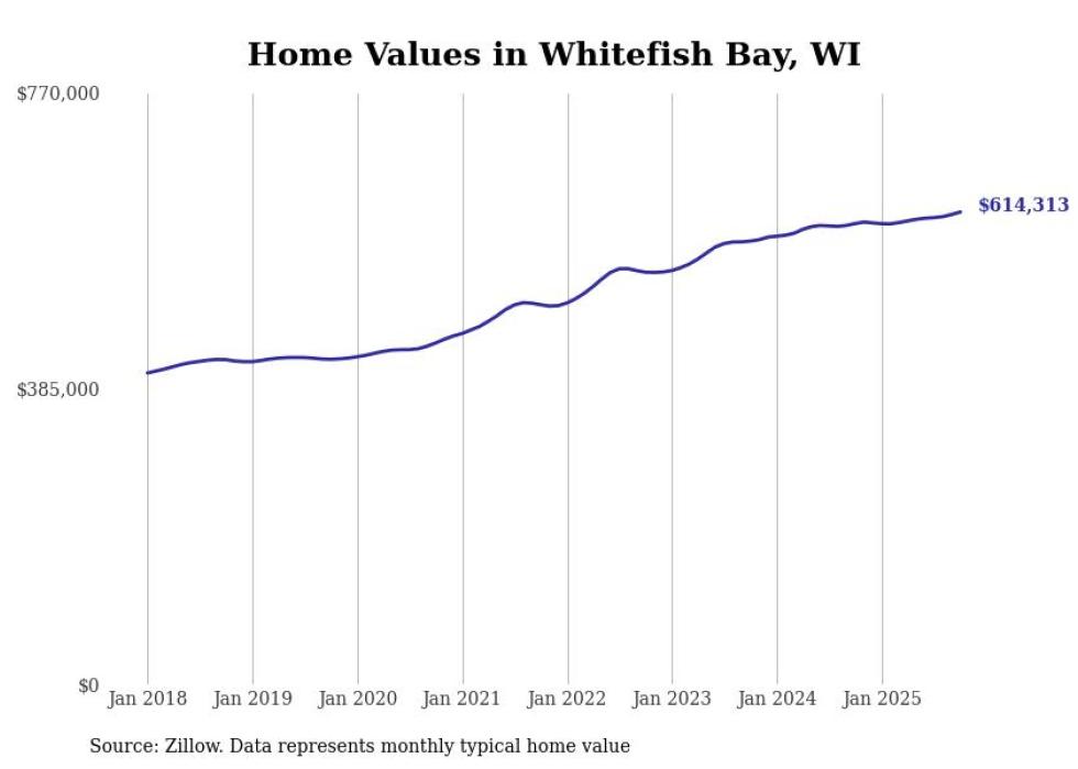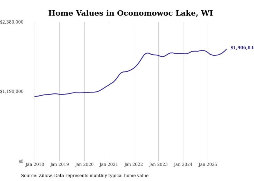 Stacker compiled a list of cities with the most expensive homes in the Milwaukee metro area using data from Zillow. Charts show the monthly typical home value since January 2018. Data was available for 70 cities and towns.