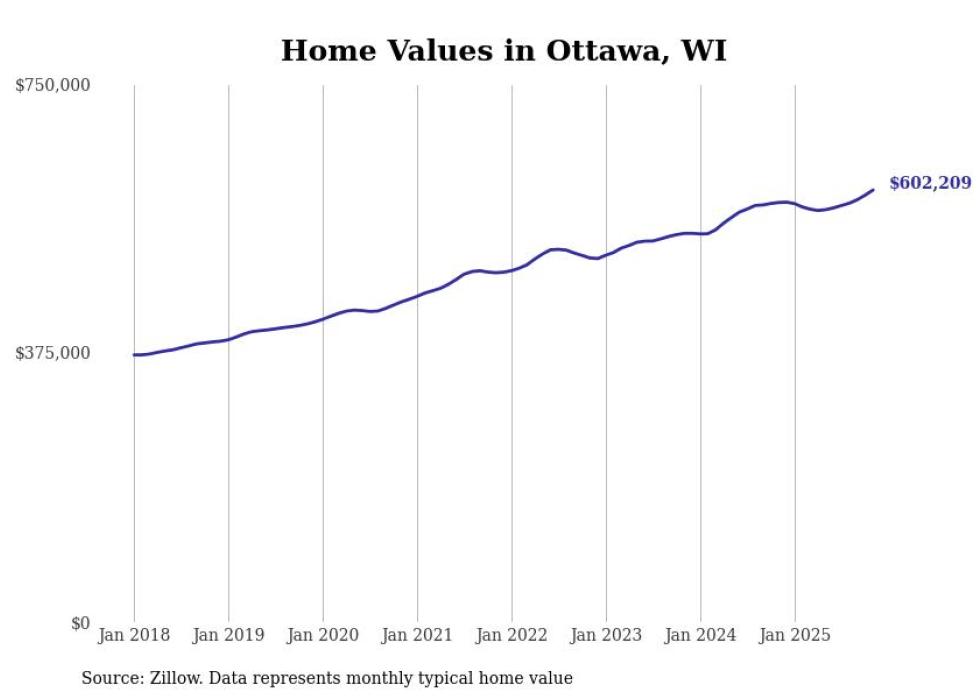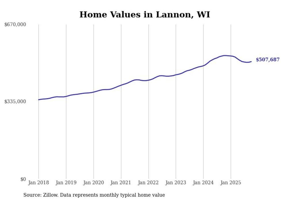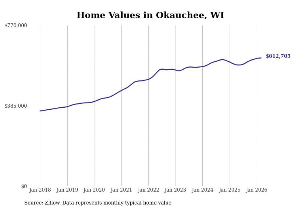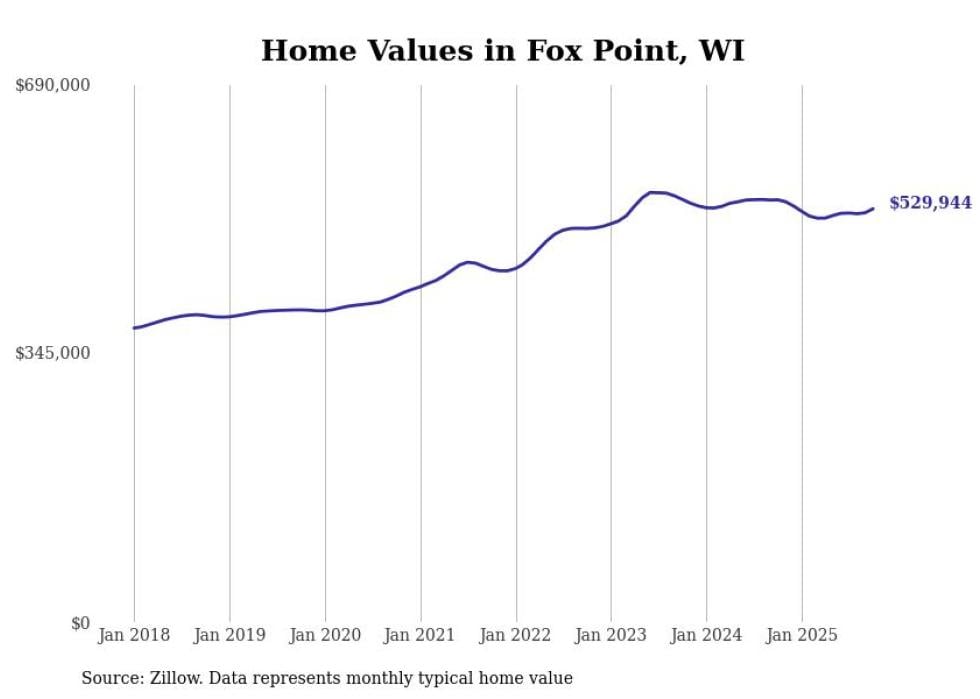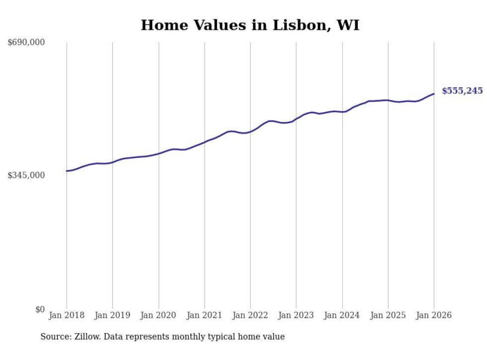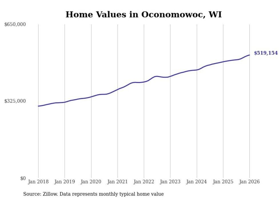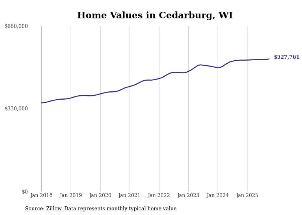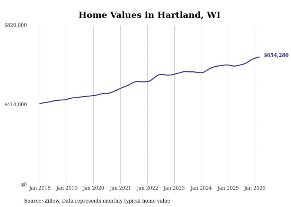 Stacker compiled a list of cities with the most expensive homes in the Milwaukee metro area using data from Zillow. Charts show the monthly typical home value since January 2018. Data was available for 70 cities and towns.