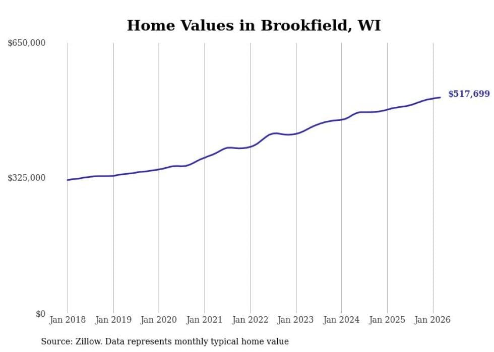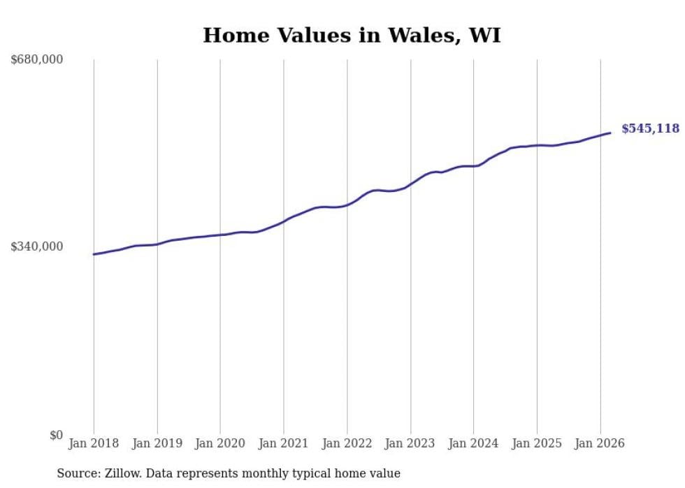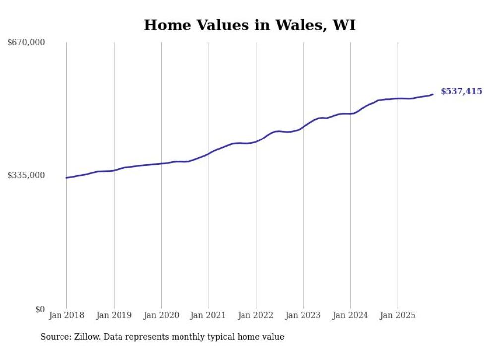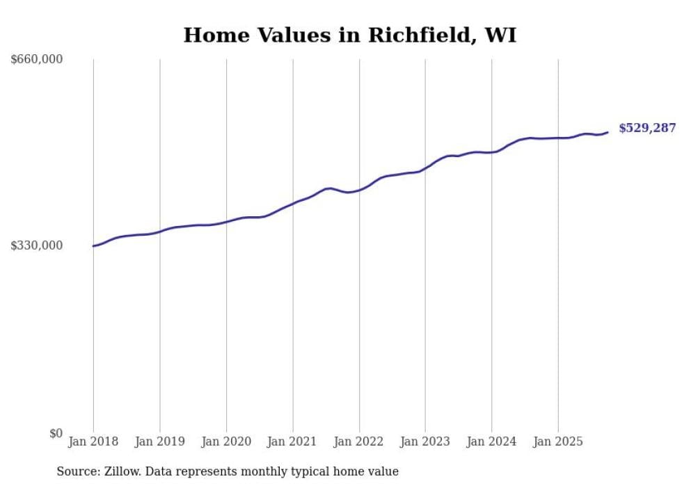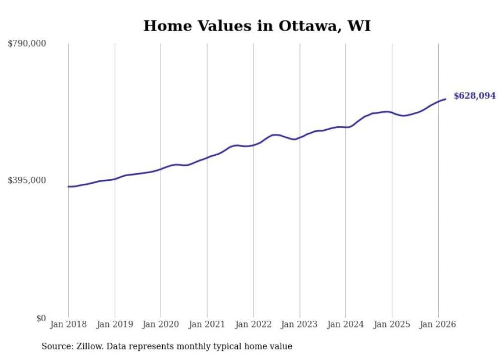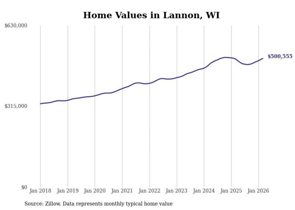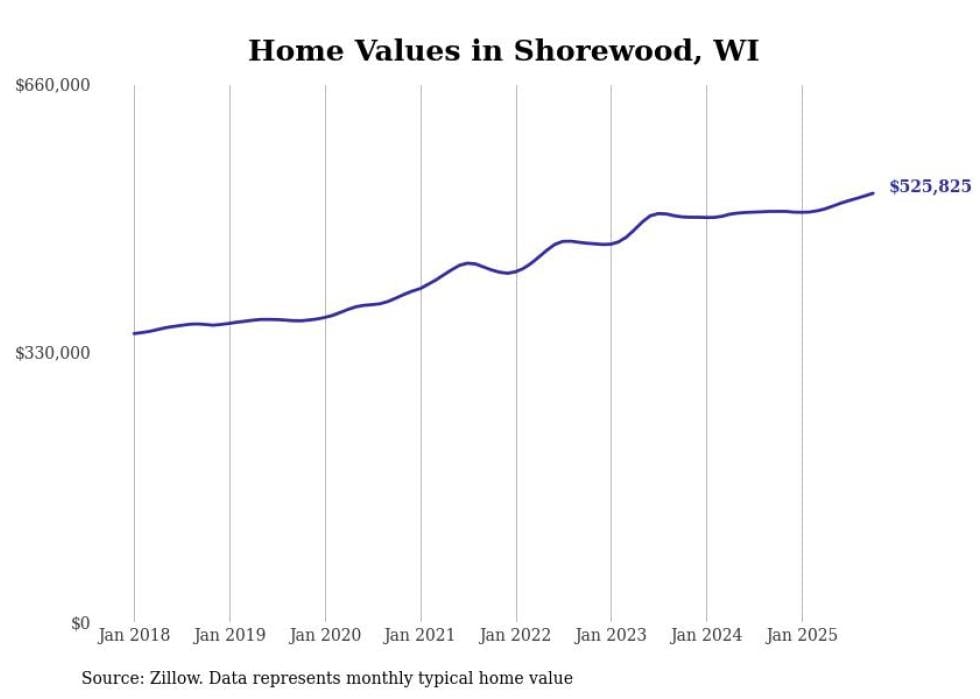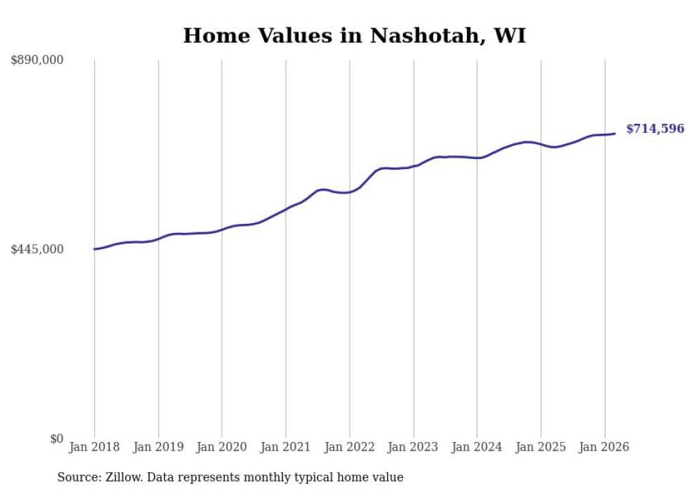 Stacker compiled a list of cities with the most expensive homes in the Milwaukee metro area using data from Zillow. Charts show the monthly typical home value since January 2018. Data was available for 70 cities and towns.
