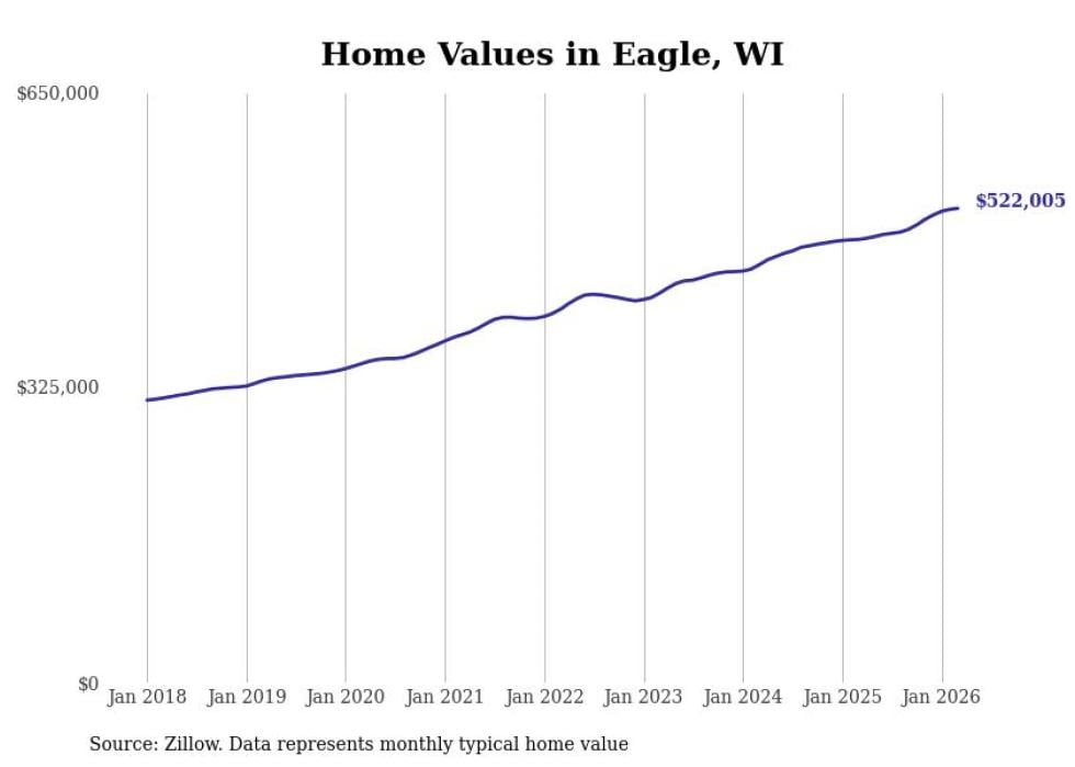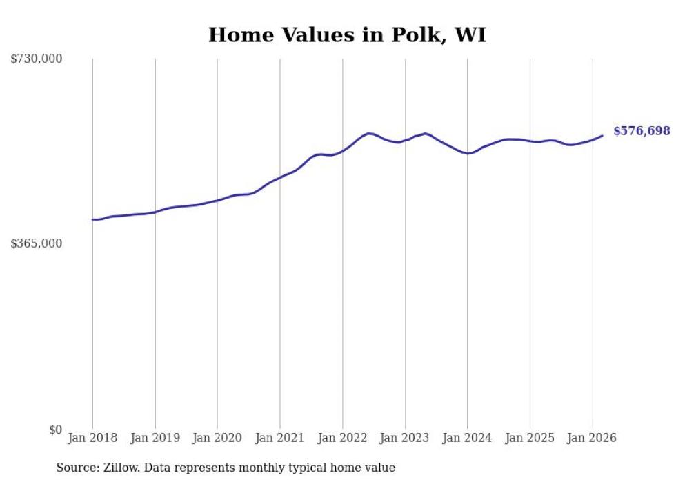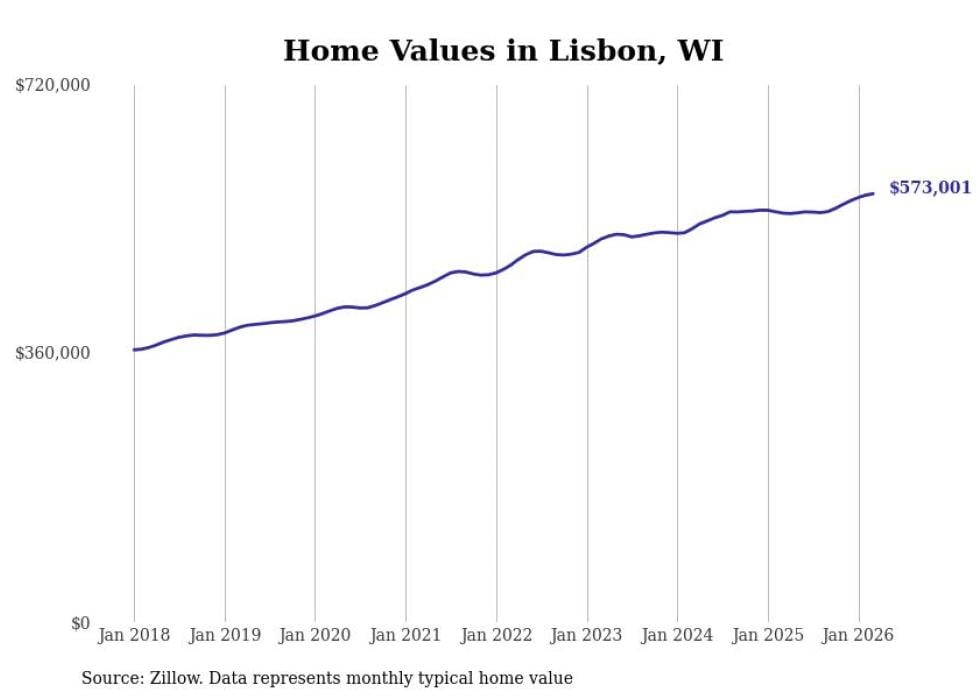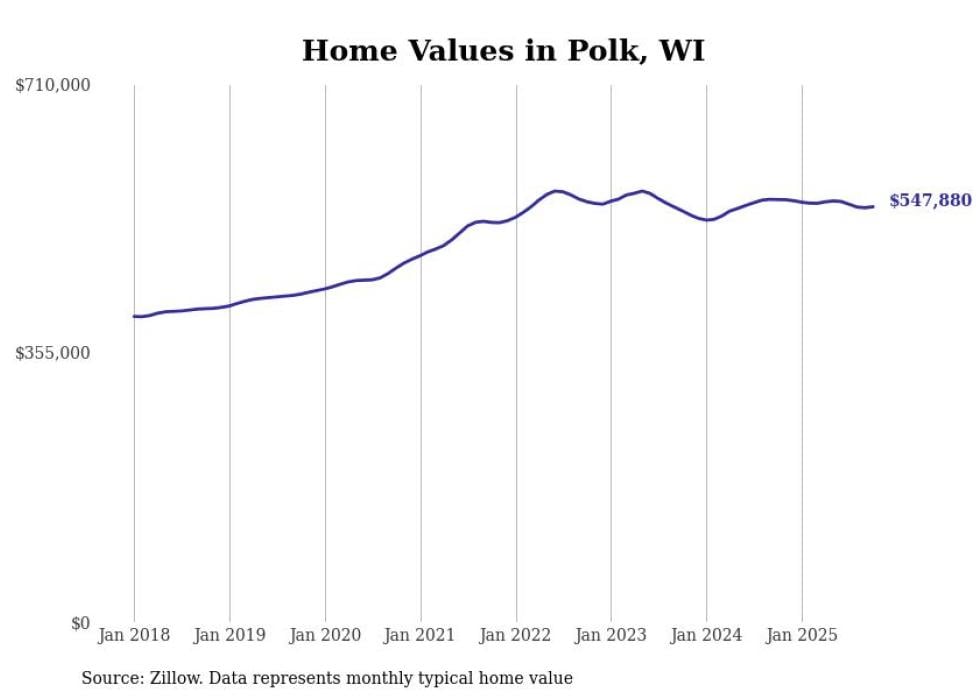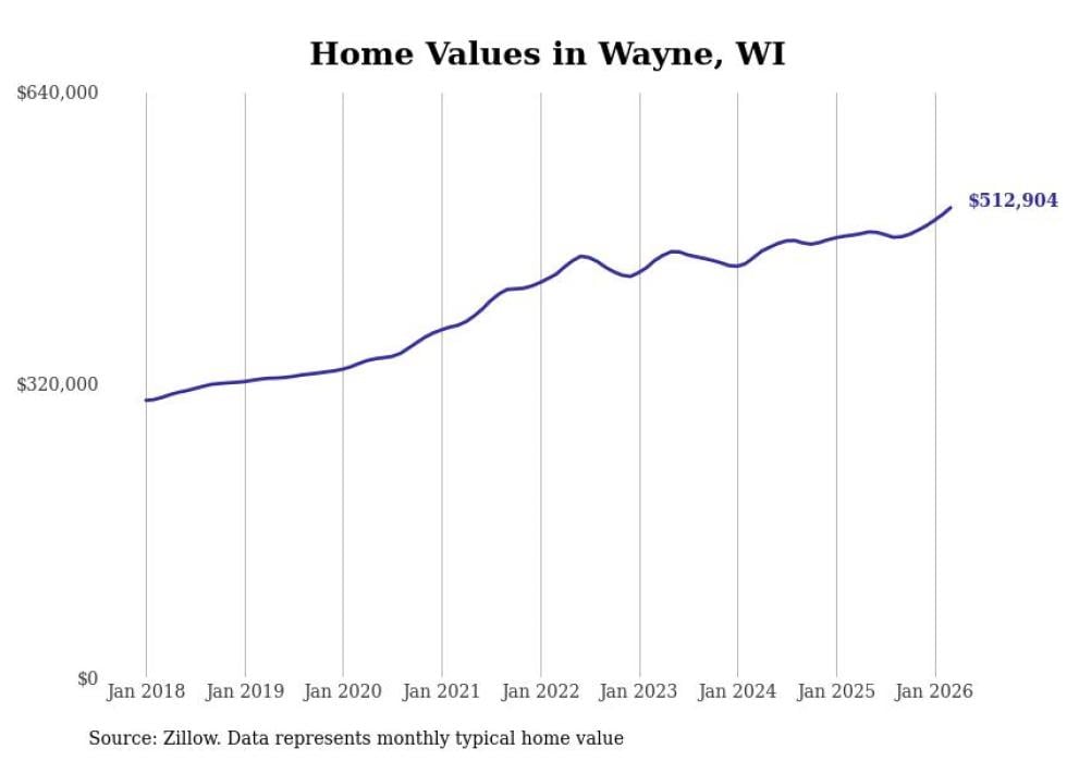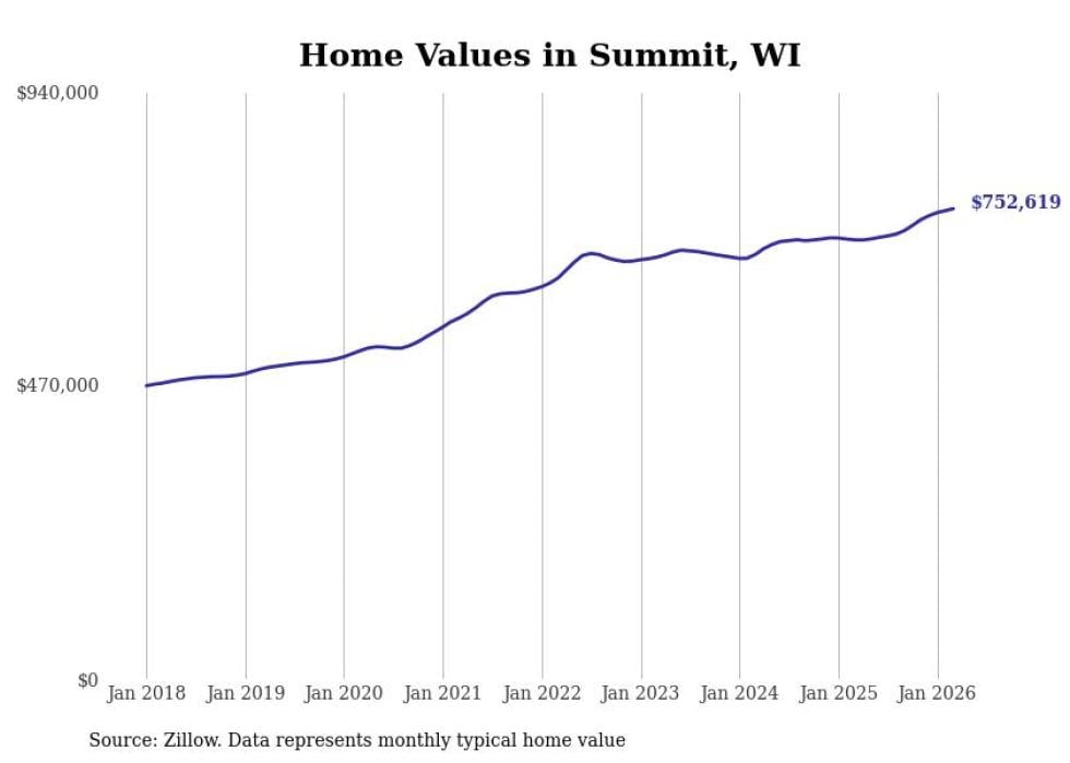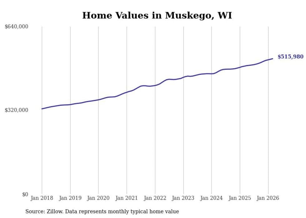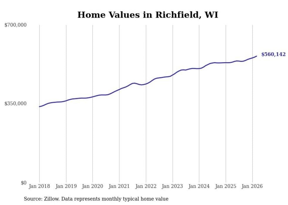 Stacker compiled a list of cities with the most expensive homes in the Milwaukee metro area using data from Zillow. Charts show the monthly typical home value since January 2018. Data was available for 70 cities and towns.