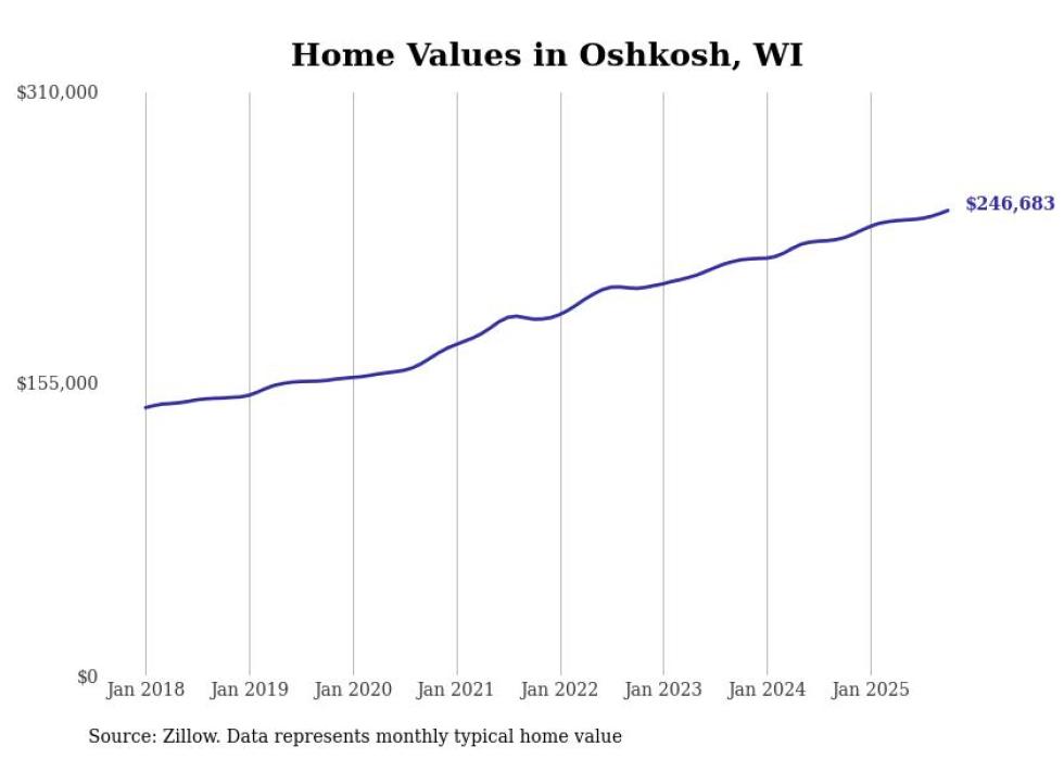 Cities with the fastest-growing home prices in the Oshkosh metro area
