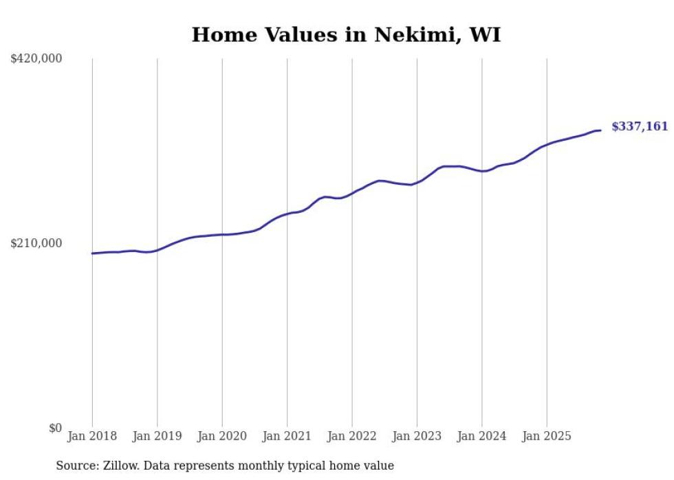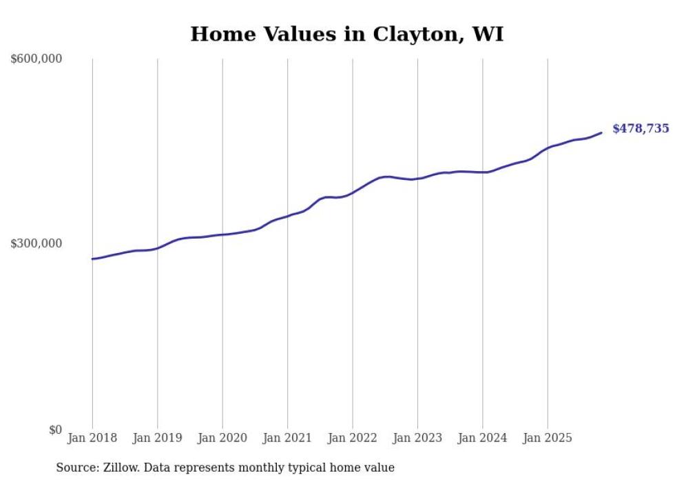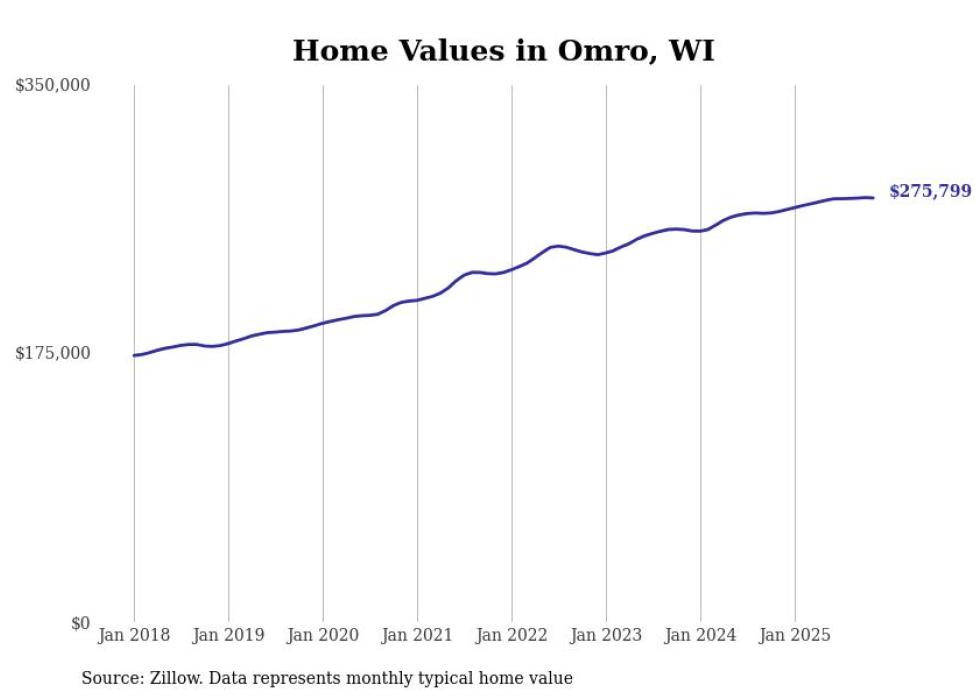 Stacker compiled a list of cities with the most expensive homes in the Oshkosh metro area using data from Zillow. Charts show the monthly typical home value since January 2018. All 14 cities and towns with data available were included in the list.