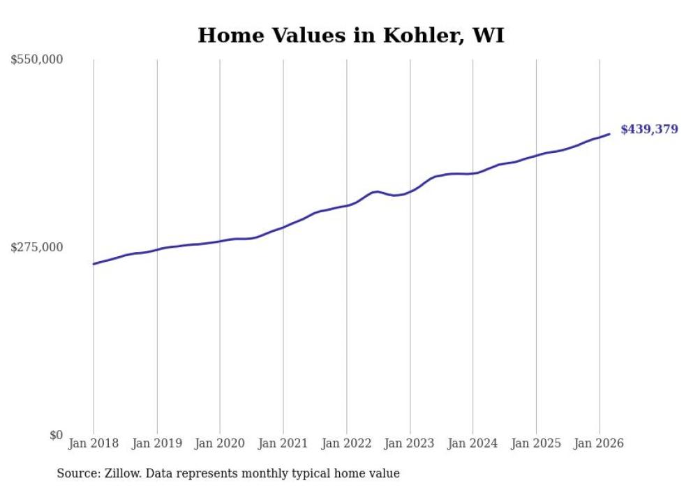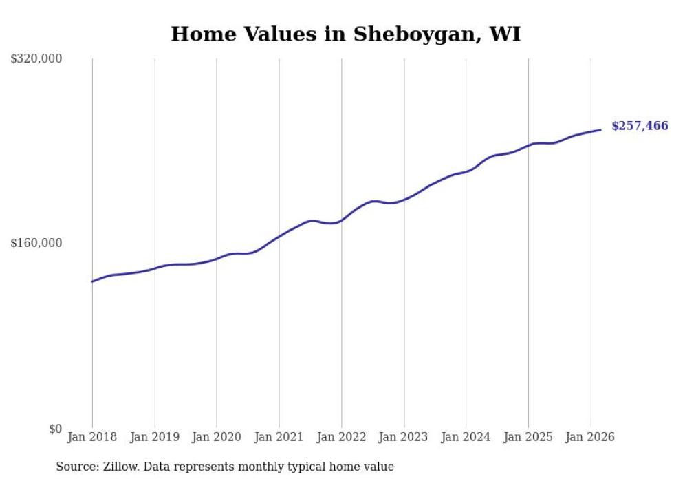 Stacker compiled a list of cities with the most expensive homes in the Sheboygan, WI metro area using data from Zillow. Charts show the monthly typical home value since January 2018.