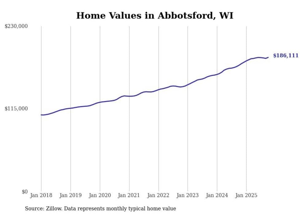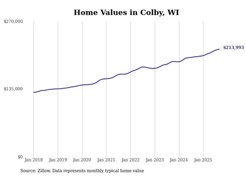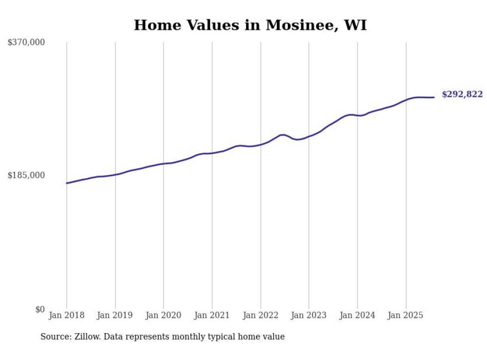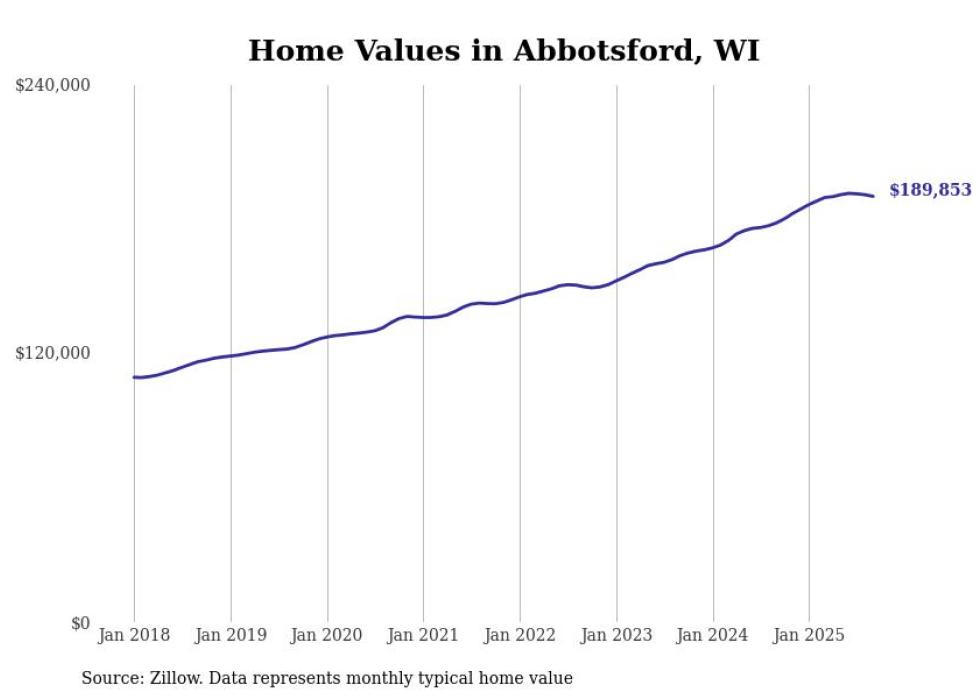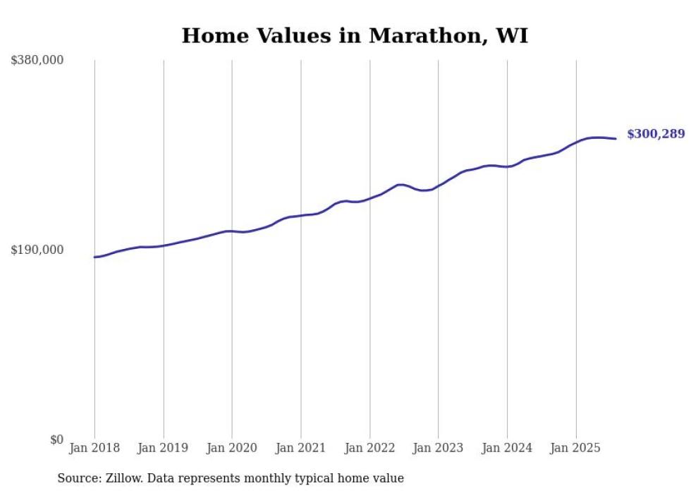 Stacker compiled a list of cities with the most expensive homes in the Wausau metro area using data from Zillow. Charts show the monthly typical home value since January 2018. All 26 cities and towns with data available were included in the list.