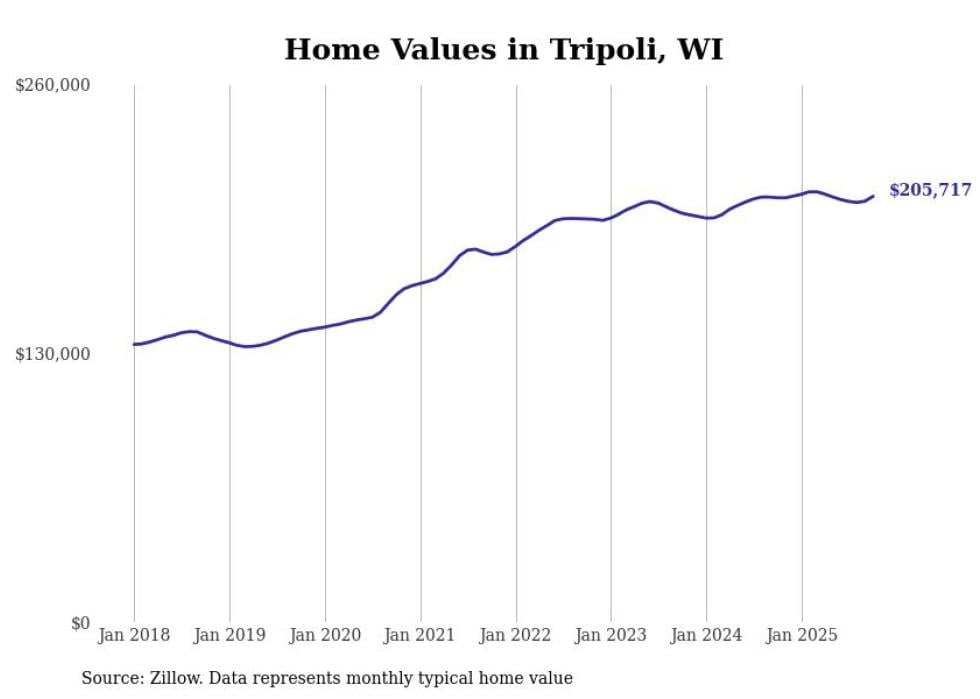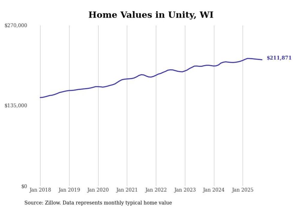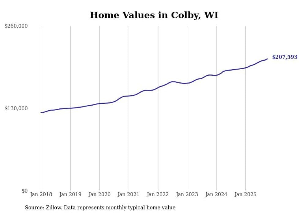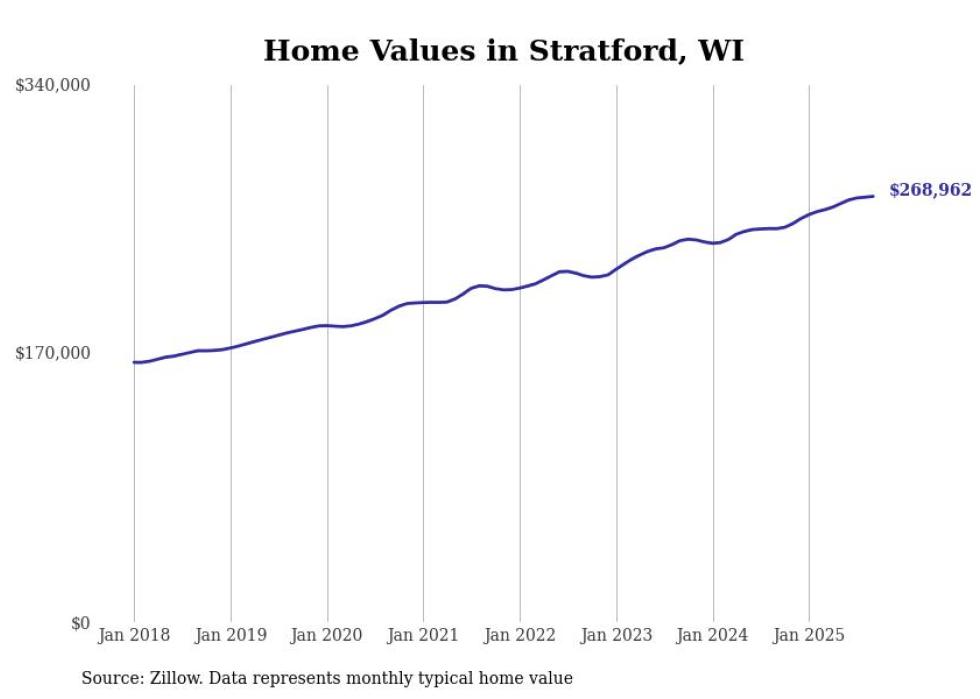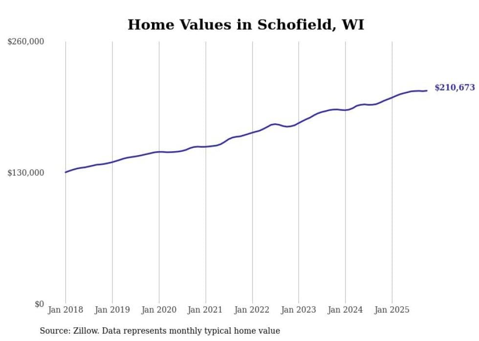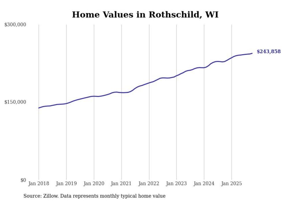 Stacker compiled a list of cities with the most expensive homes in the Wausau metro area using data from Zillow. Charts show the monthly typical home value since January 2018. All 26 cities and towns with data available were included in the list.
