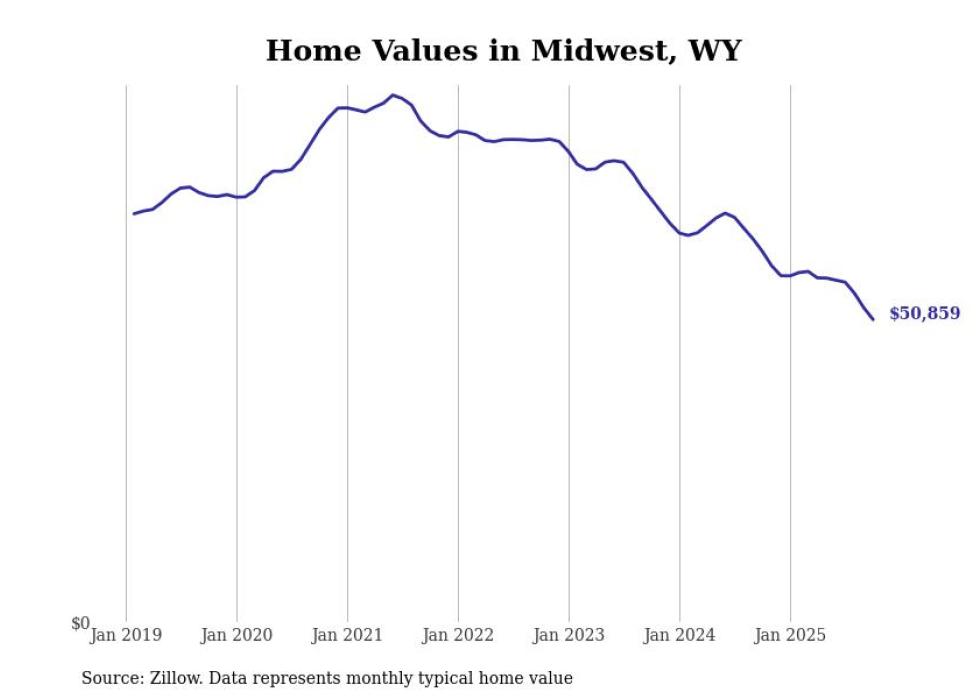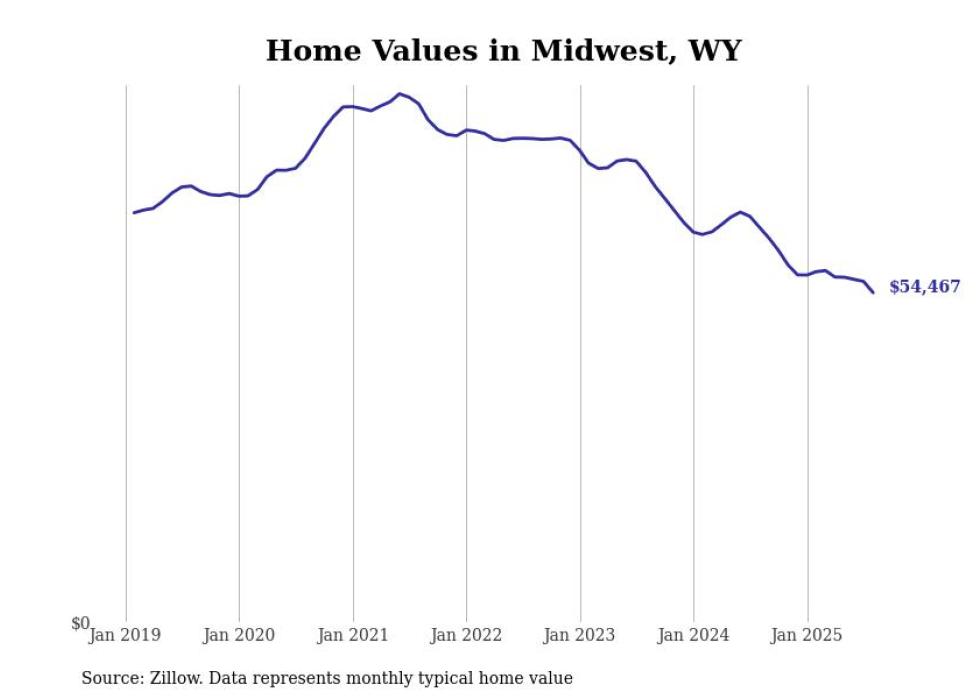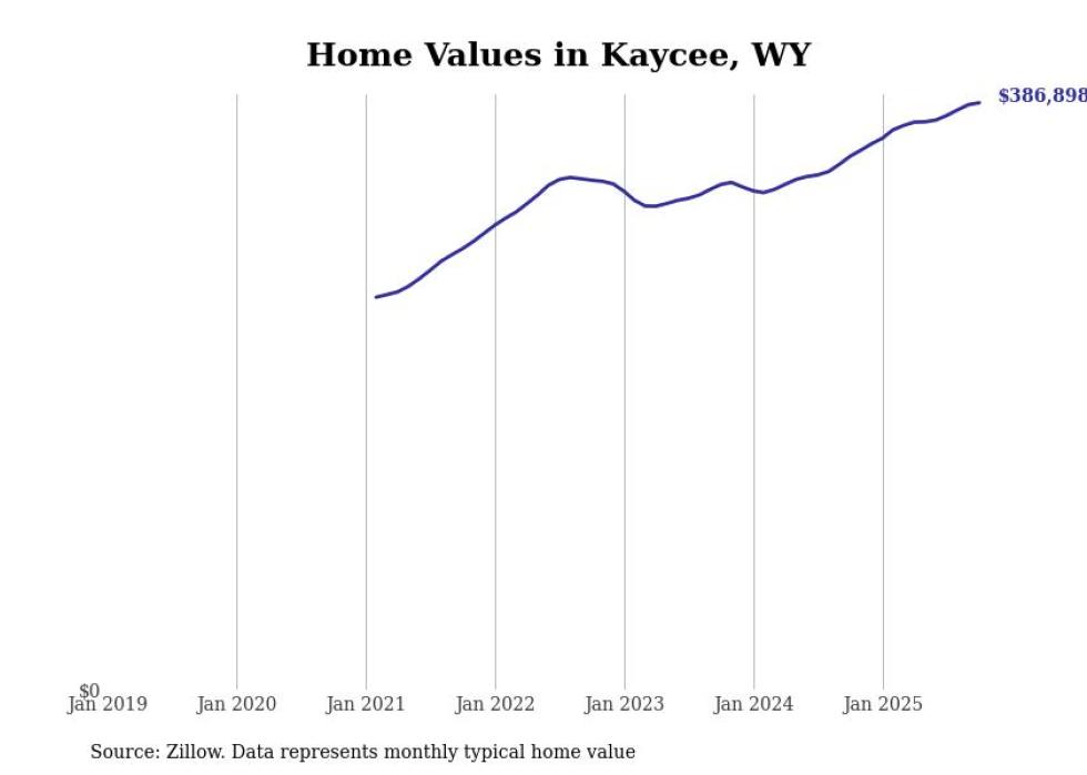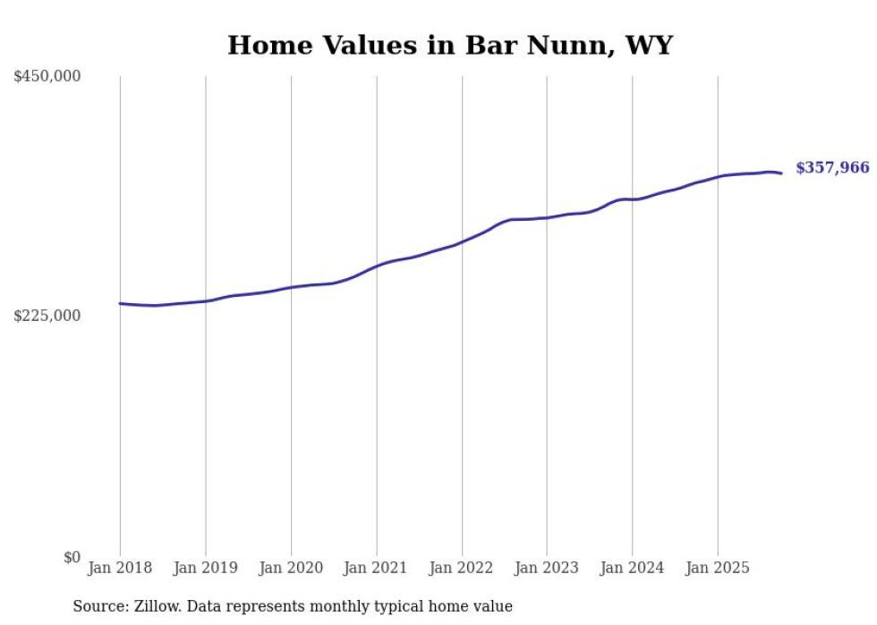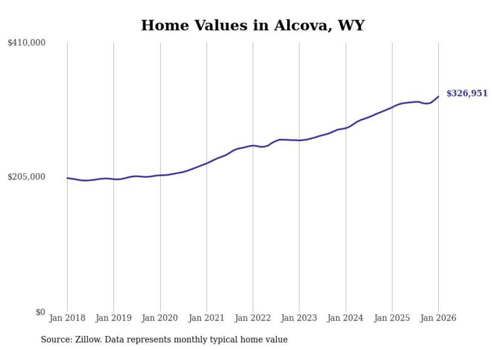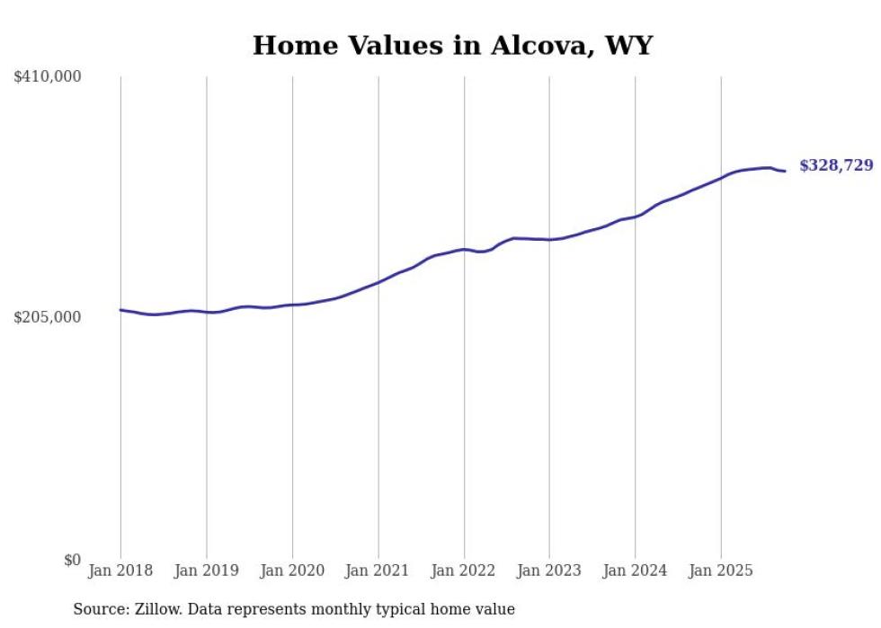 Stacker compiled a list of cities with the most expensive homes in the Casper metro area using data from Zillow. Charts show the monthly typical home value since January 2018. All 6 cities and towns with data available were included in the list.