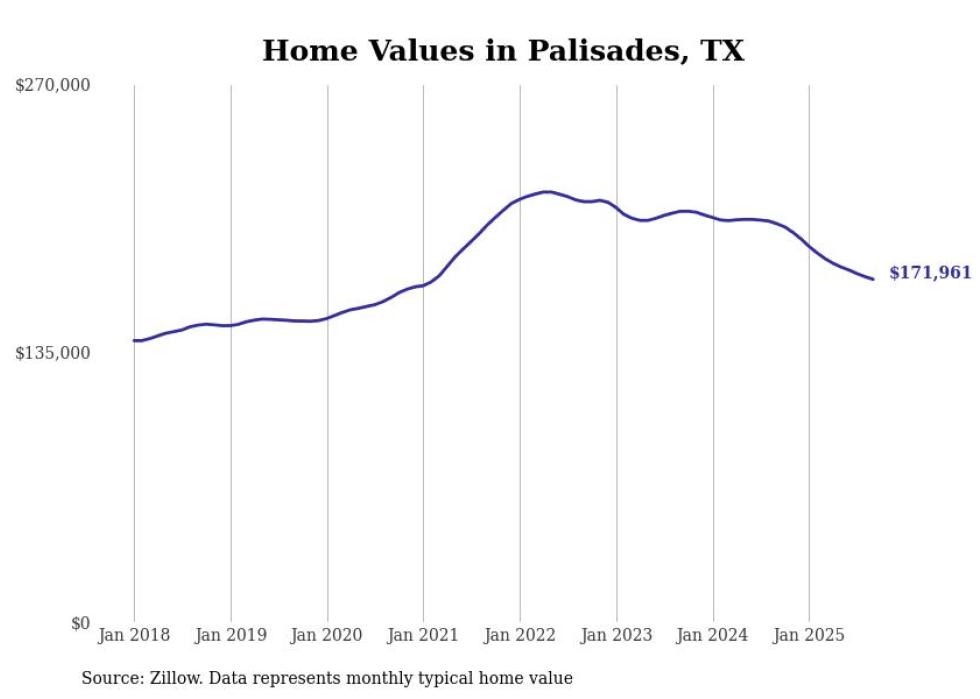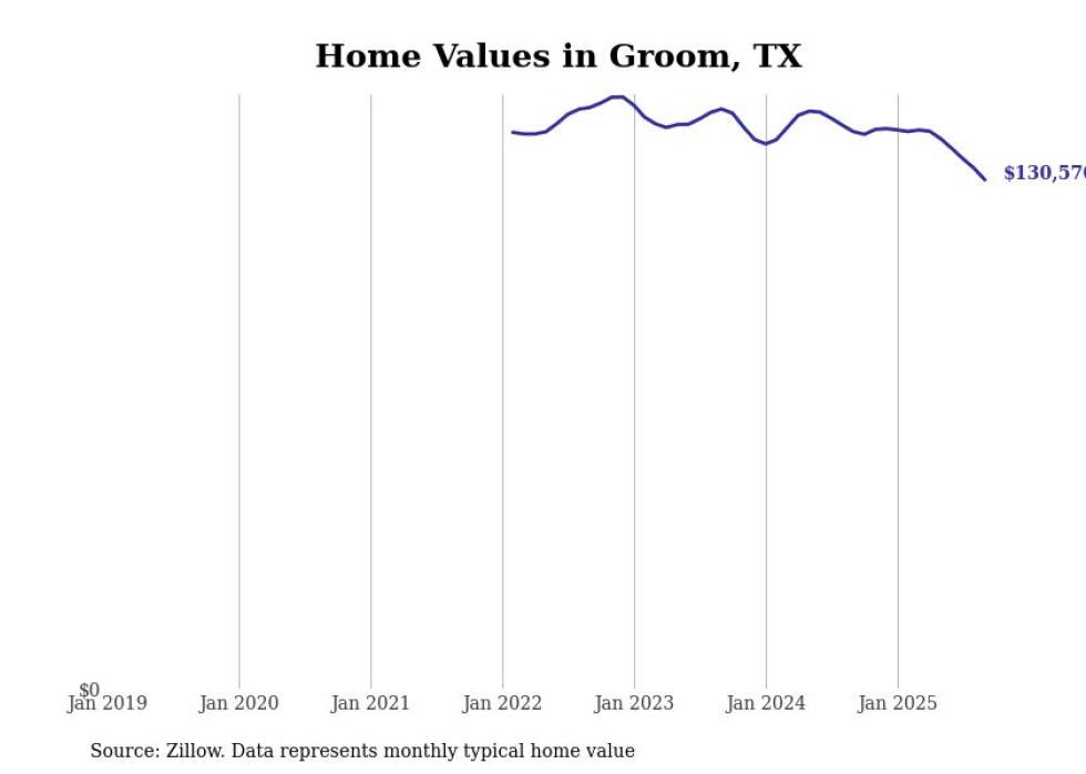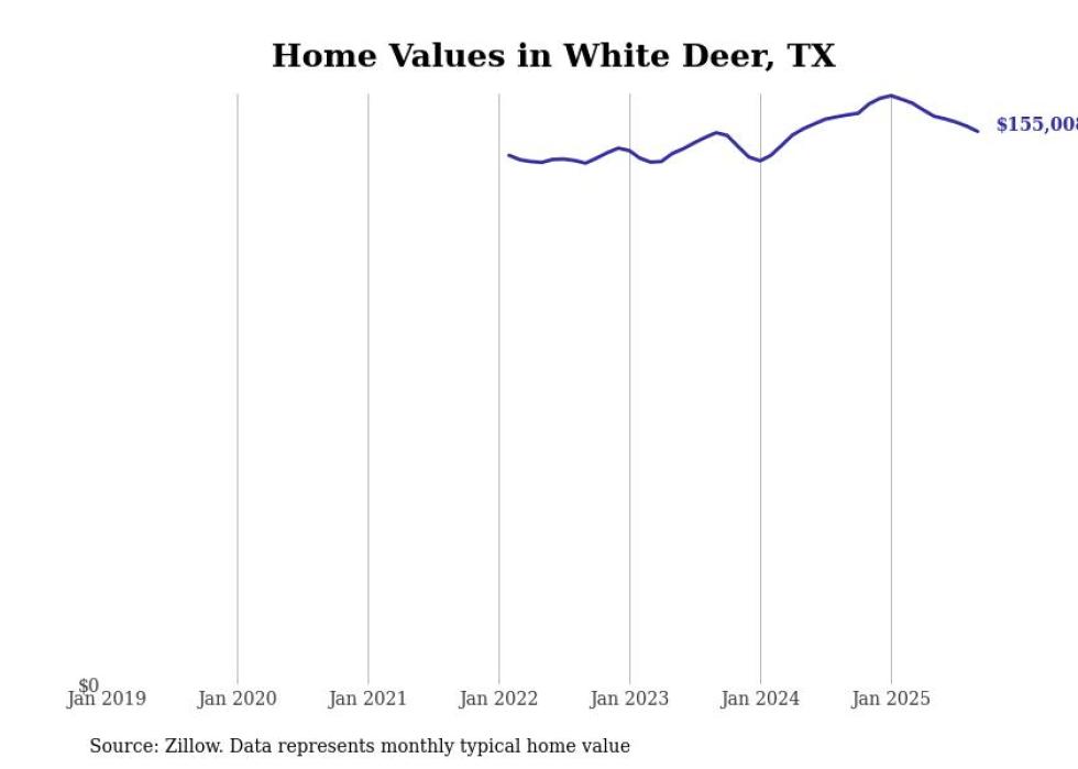 Stacker compiled a list of cities with the most expensive homes in the Amarillo, TX metro area using data from Zillow. Charts show the monthly typical home value since January 2018.