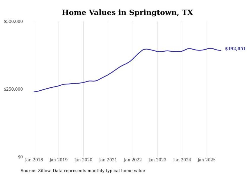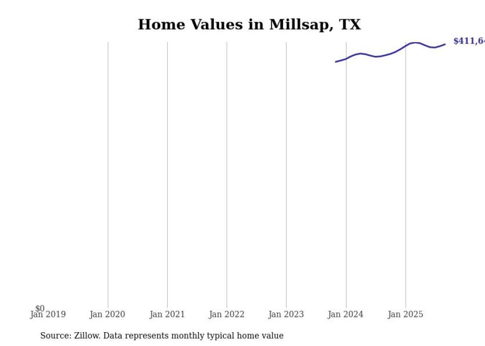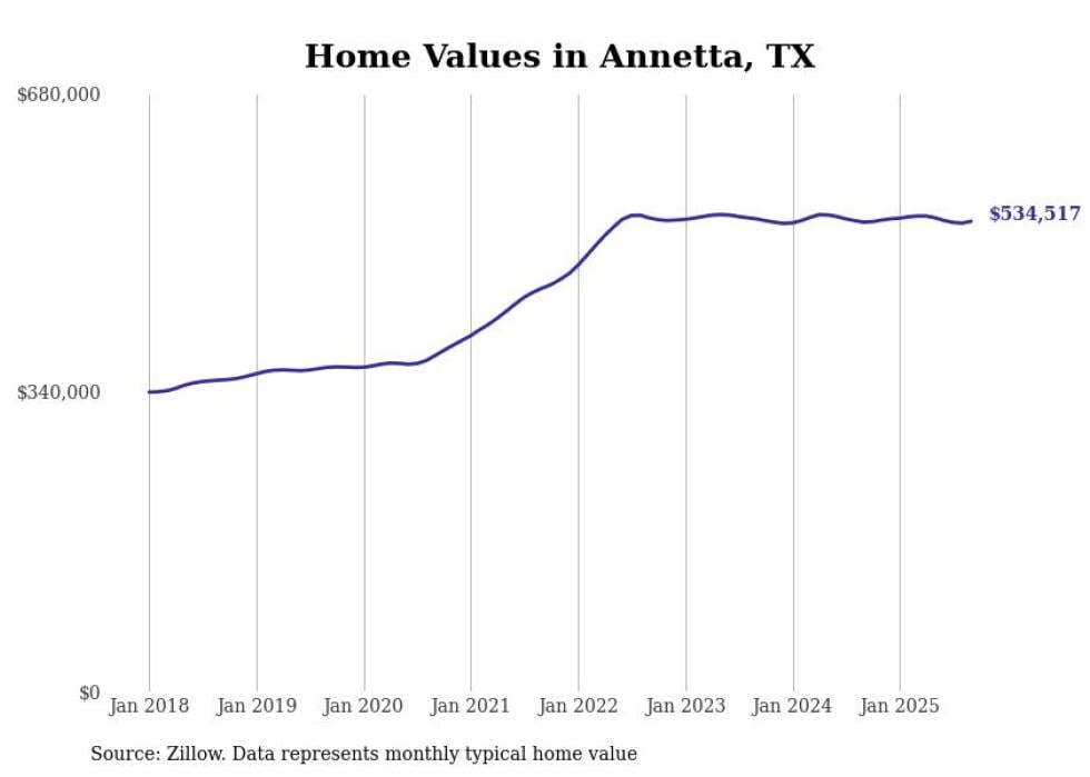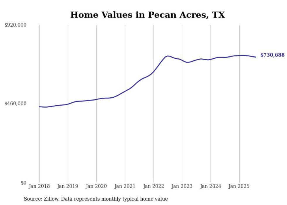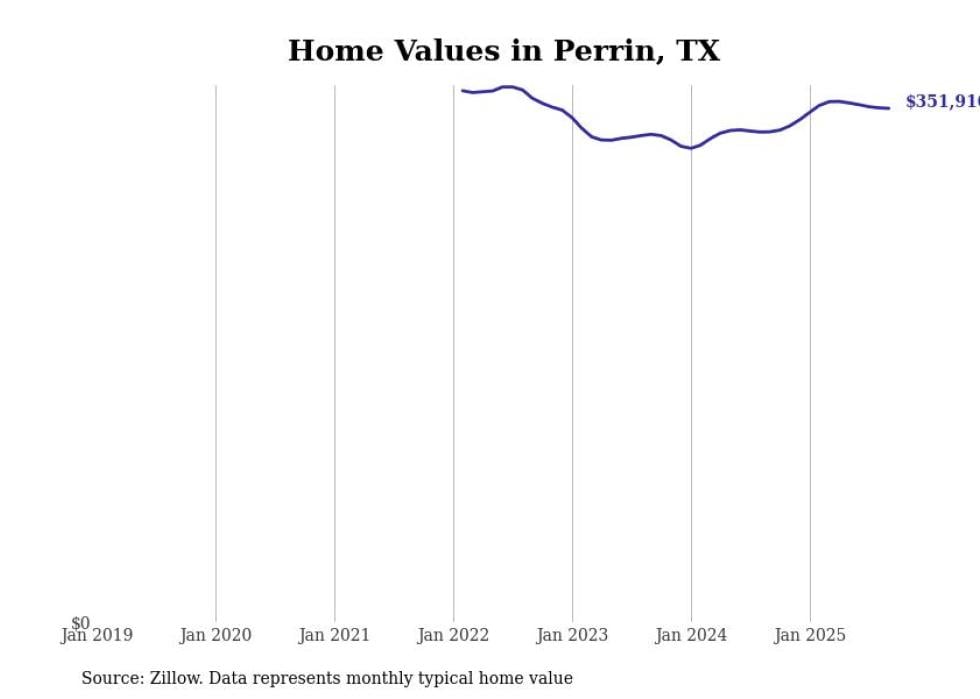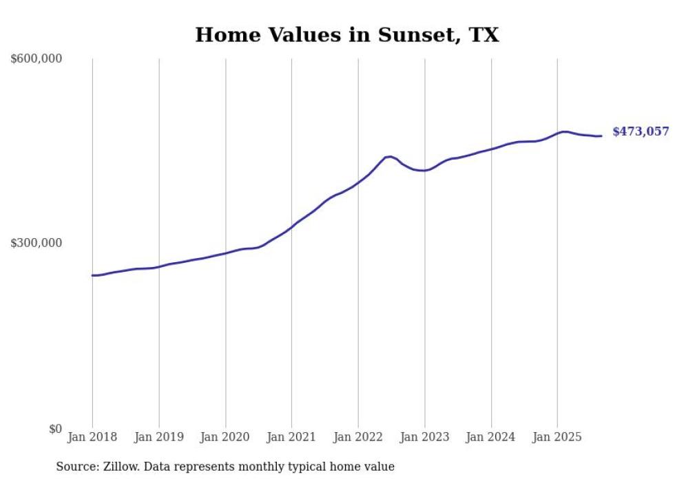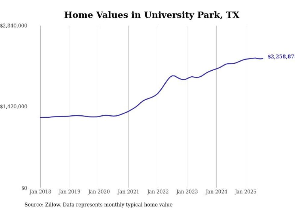 Stacker compiled a list of cities with the most expensive homes in the Dallas-Fort Worth-Arlington, TX metro area using data from Zillow. Charts show the monthly typical home value since January 2018.