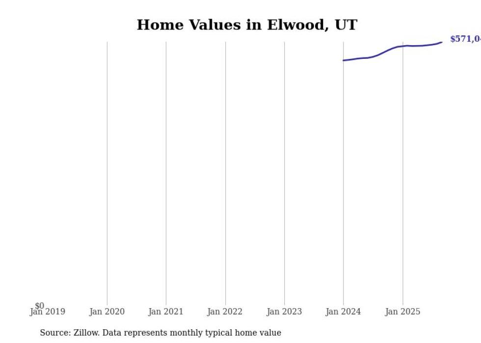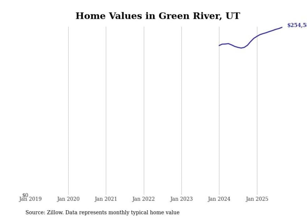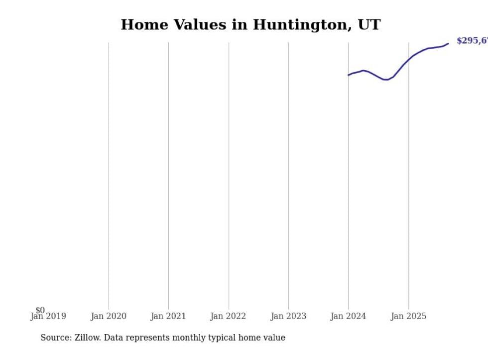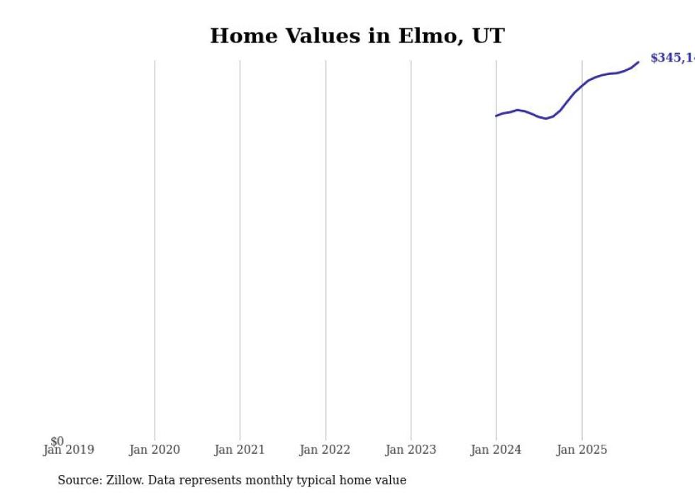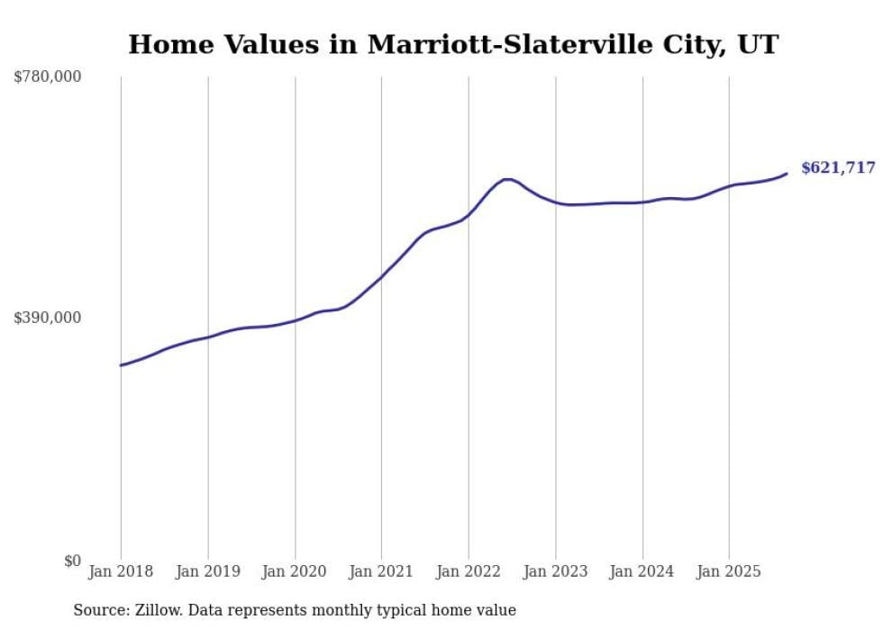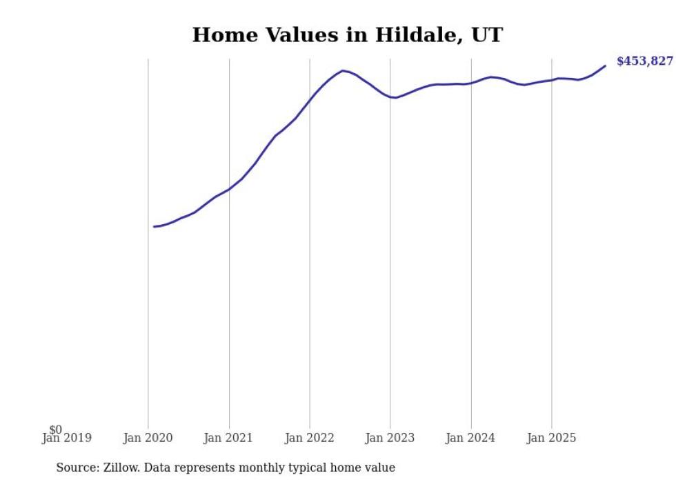 Stacker compiled a list of cities with the fastest-growing home prices in Utah using data from Zillow. Cities are ranked by the dollar change in the Zillow Home Values Index for all homes from the 12 months ending September 2025. The charts in this story were created automatically using Matplotlib. Data was available for 50 cities and towns in Utah.