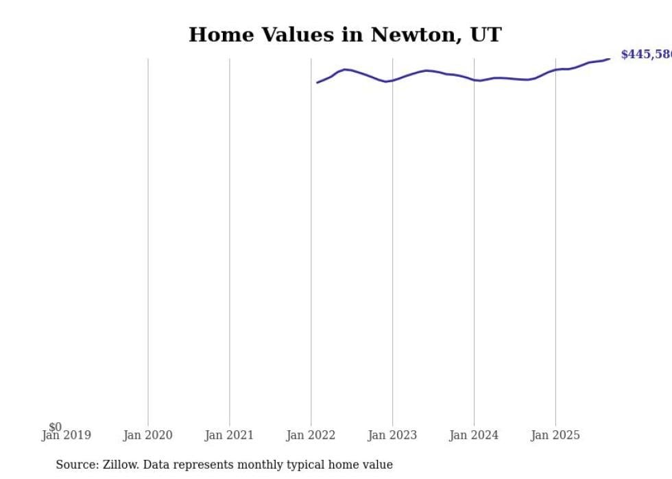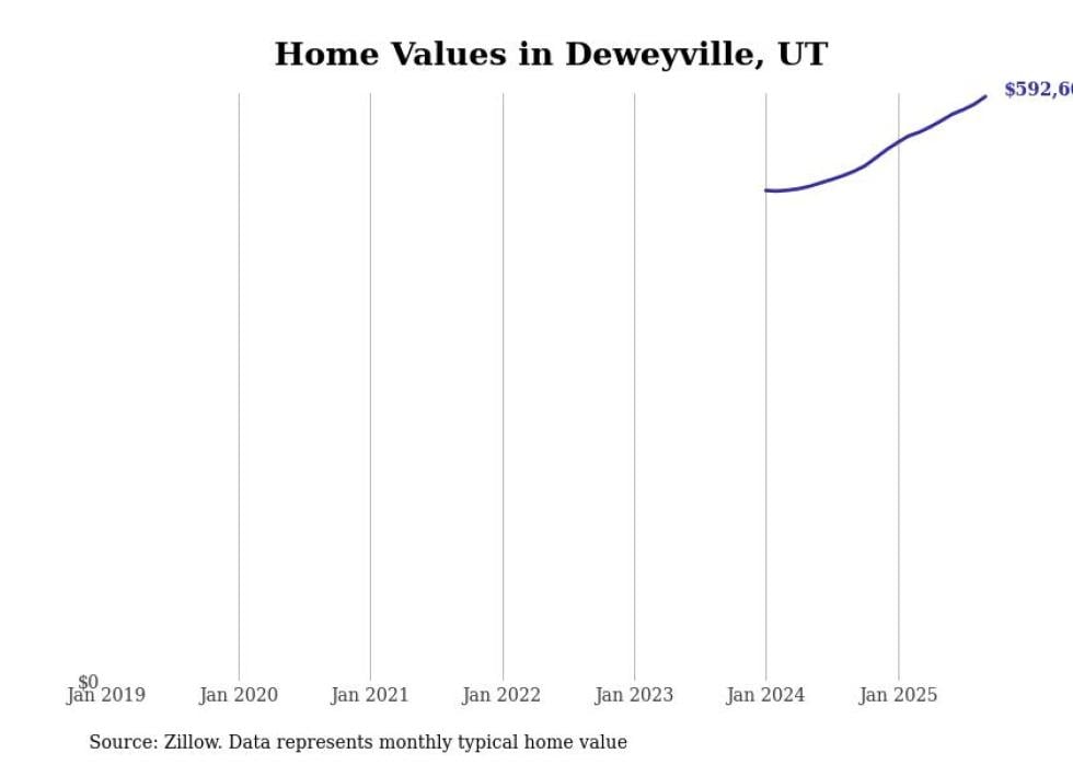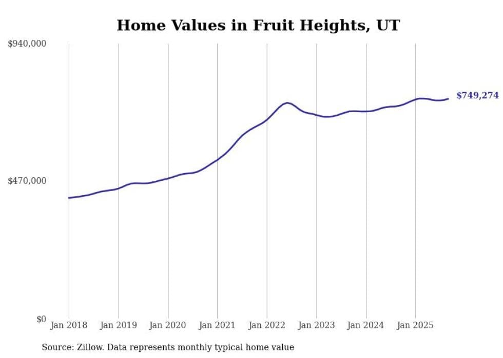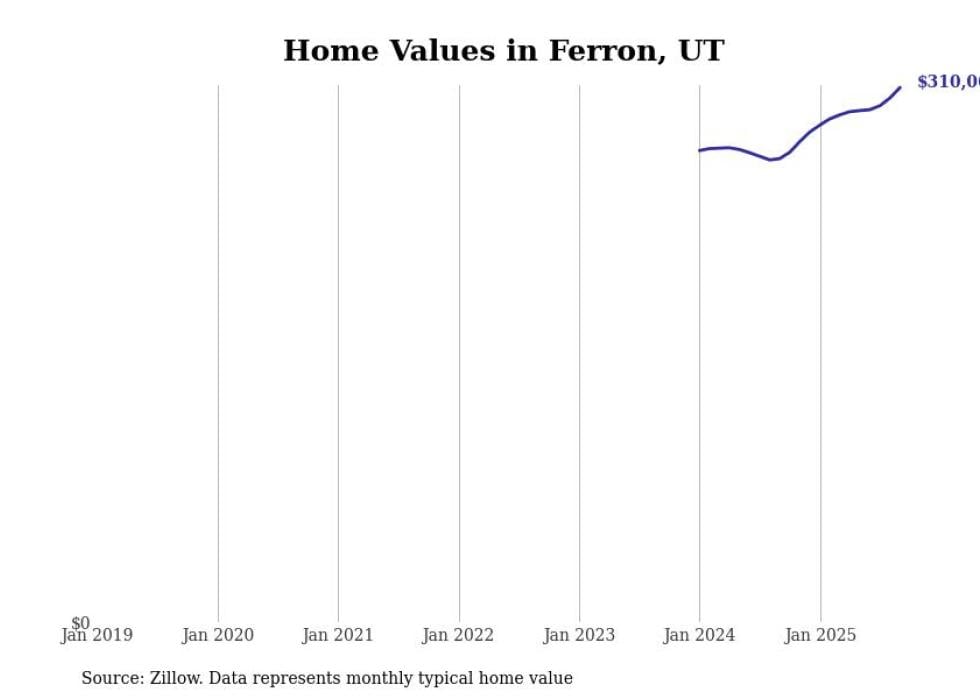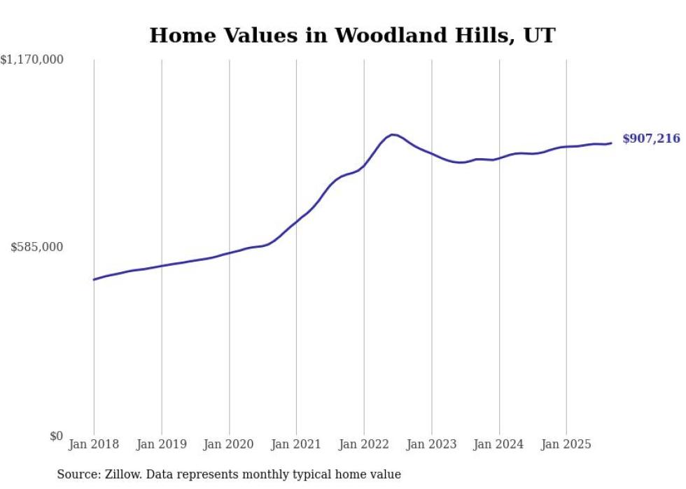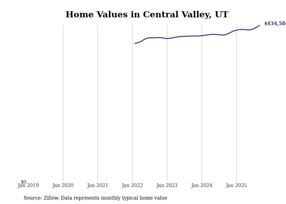 Stacker compiled a list of cities with the fastest-growing home prices in Utah using data from Zillow. Cities are ranked by the dollar change in the Zillow Home Values Index for all homes from the 12 months ending September 2025. The charts in this story were created automatically using Matplotlib. Data was available for 50 cities and towns in Utah.