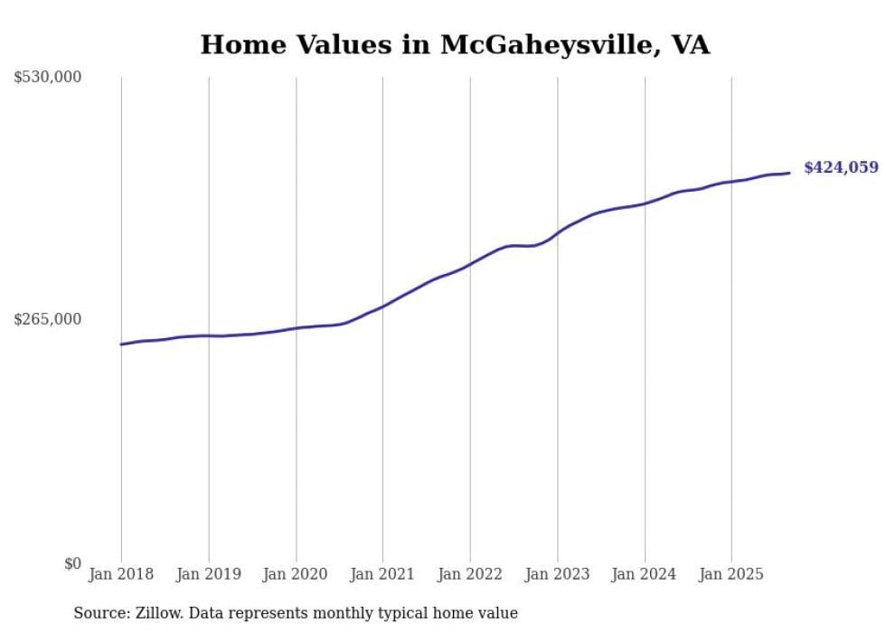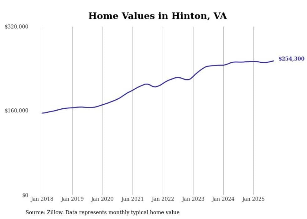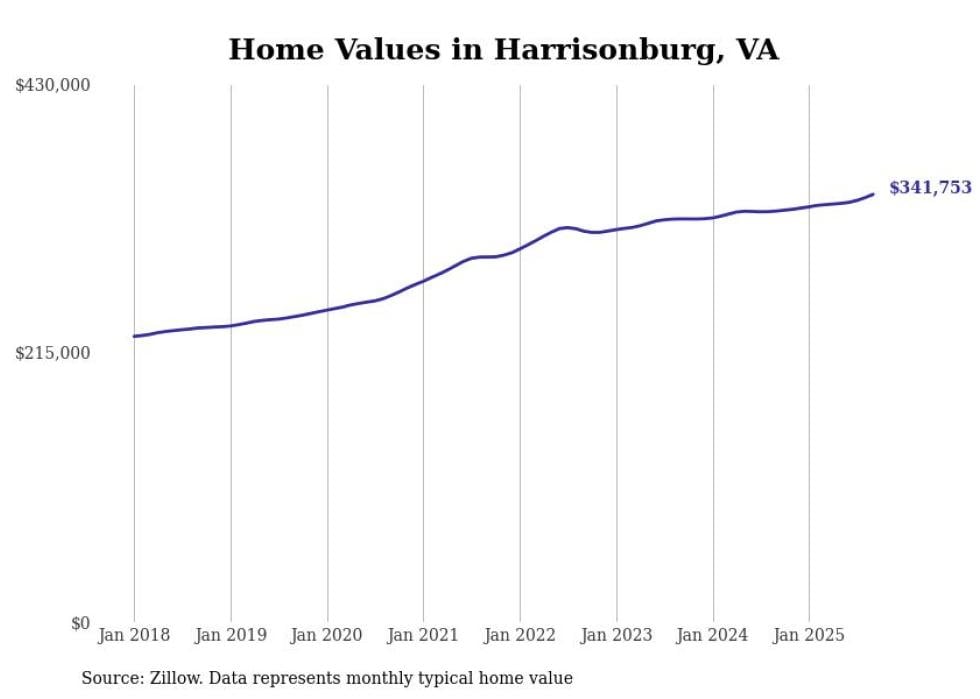 Stacker compiled a list of cities with the most expensive homes in the Harrisonburg metro area using data from Zillow. Charts show the monthly typical home value since January 2018. All 13 cities and towns with data available were included in the list.