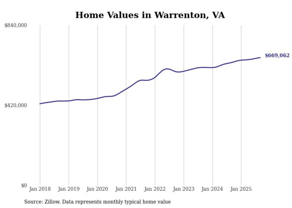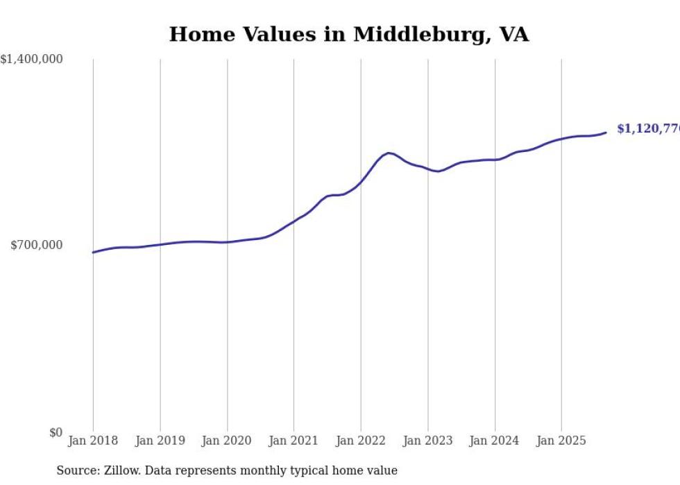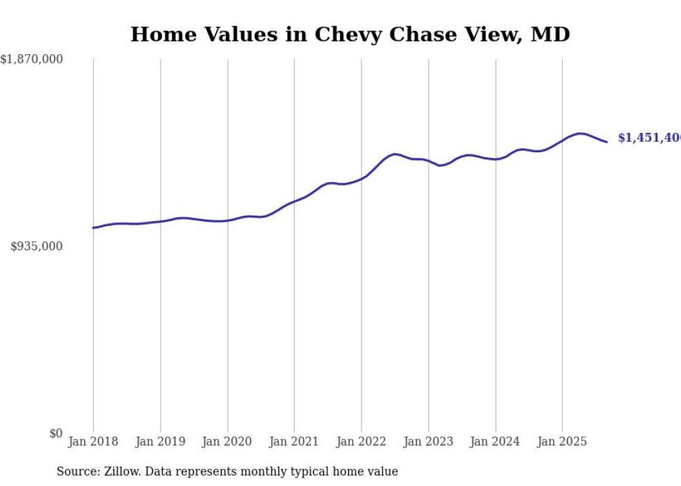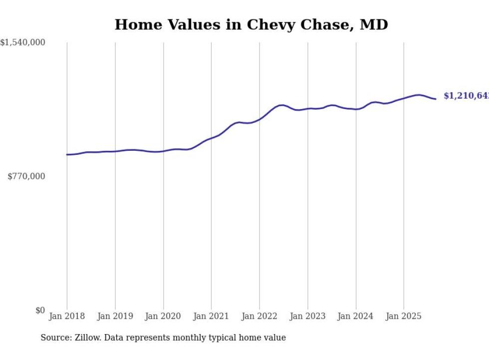 Stacker compiled a list of cities with the most expensive homes in the Washington-Arlington-Alexandria, DC-VA-MD-WV metro area using data from Zillow. Charts show the monthly typical home value since January 2018.