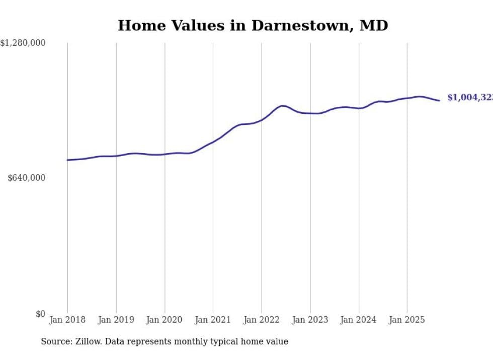 Stacker compiled a list of cities with the most expensive homes in the Washington, D.C. metro area using data from Zillow. Charts show the monthly typical home value since January 2018. Data was available for 233 cities and towns.