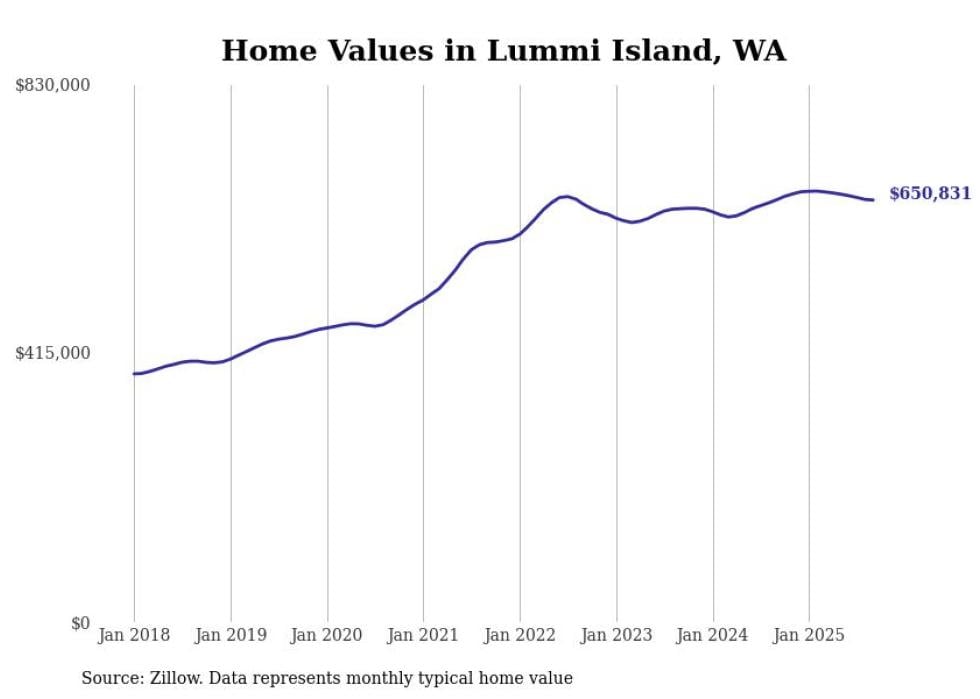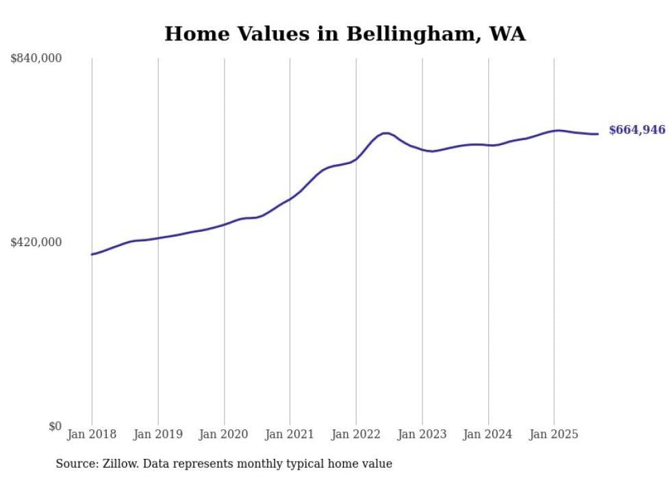 Stacker compiled a list of cities with the most expensive homes in the Bellingham metro area using data from Zillow. Charts show the monthly typical home value since January 2018. All 14 cities and towns with data available were included in the list.