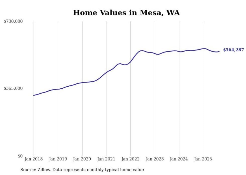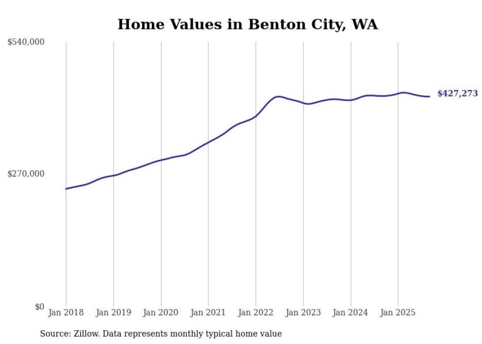 Stacker compiled a list of cities with the most expensive homes in the Kennewick-Richland, WA metro area using data from Zillow. Charts show the monthly typical home value since January 2018.