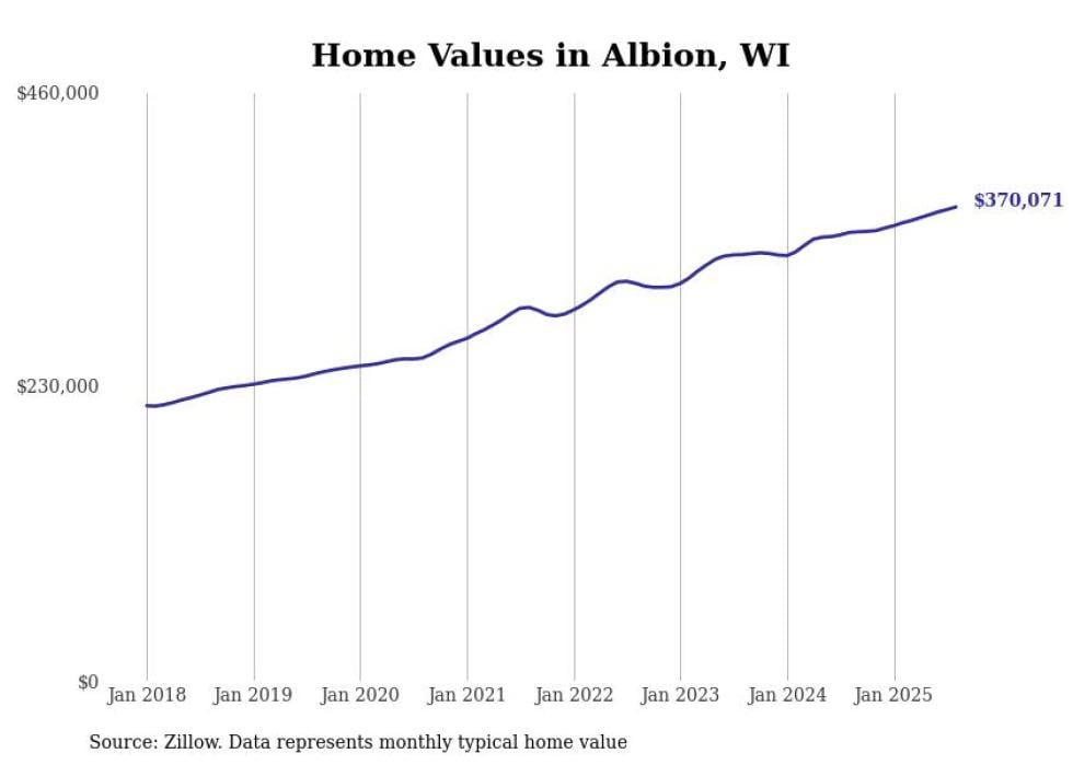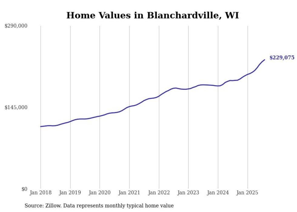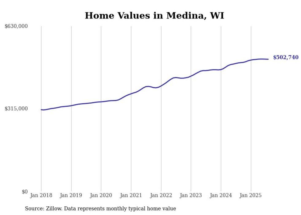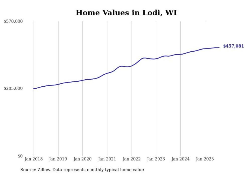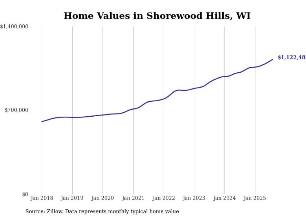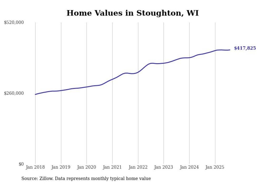 Stacker compiled a list of cities with the most expensive homes in the Madison, WI metro area using data from Zillow. Charts show the monthly typical home value since January 2018.