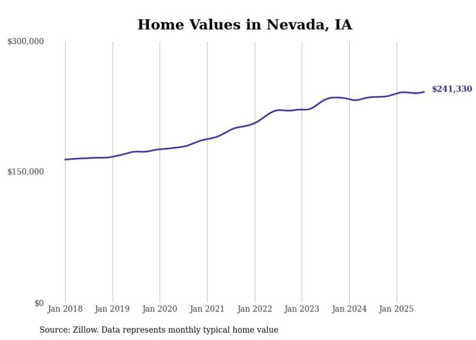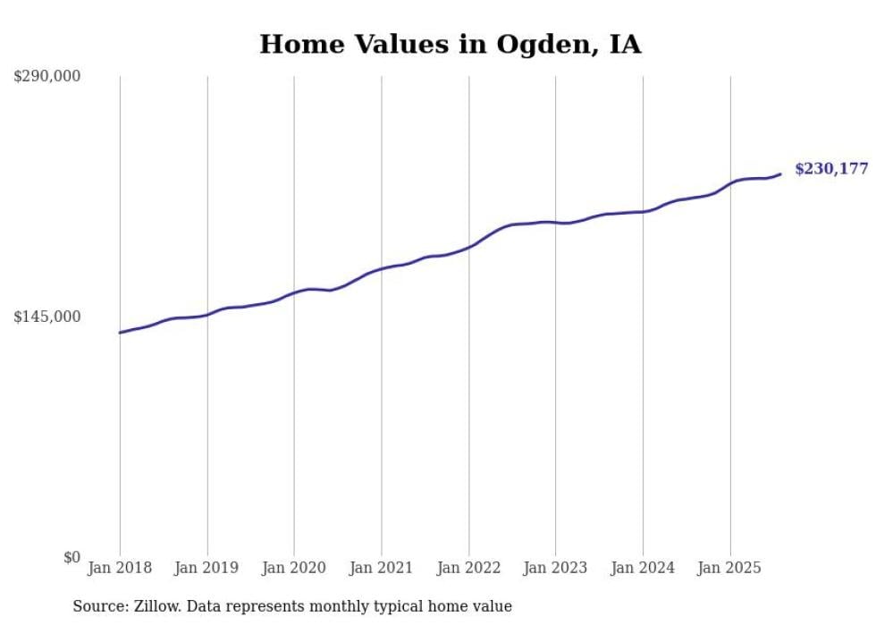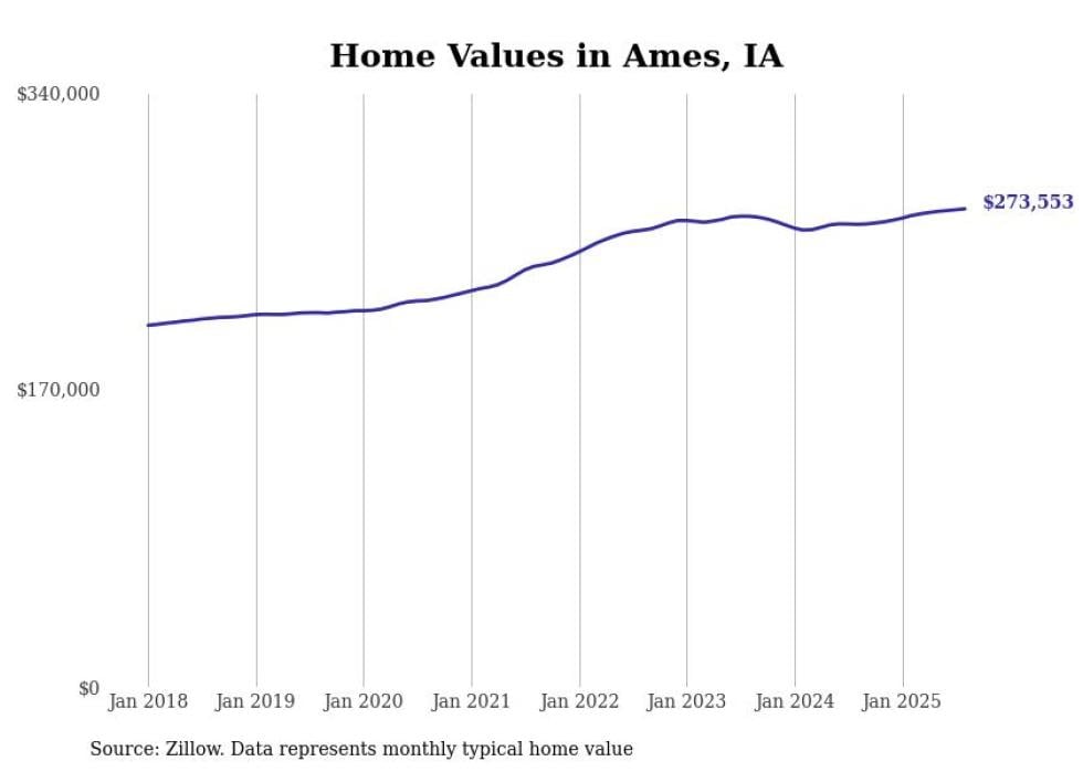 Stacker compiled a list of cities with the most expensive homes in the Ames metro area using data from Zillow. Charts show the monthly typical home value since January 2018. All 17 cities and towns with data available were included in the list.